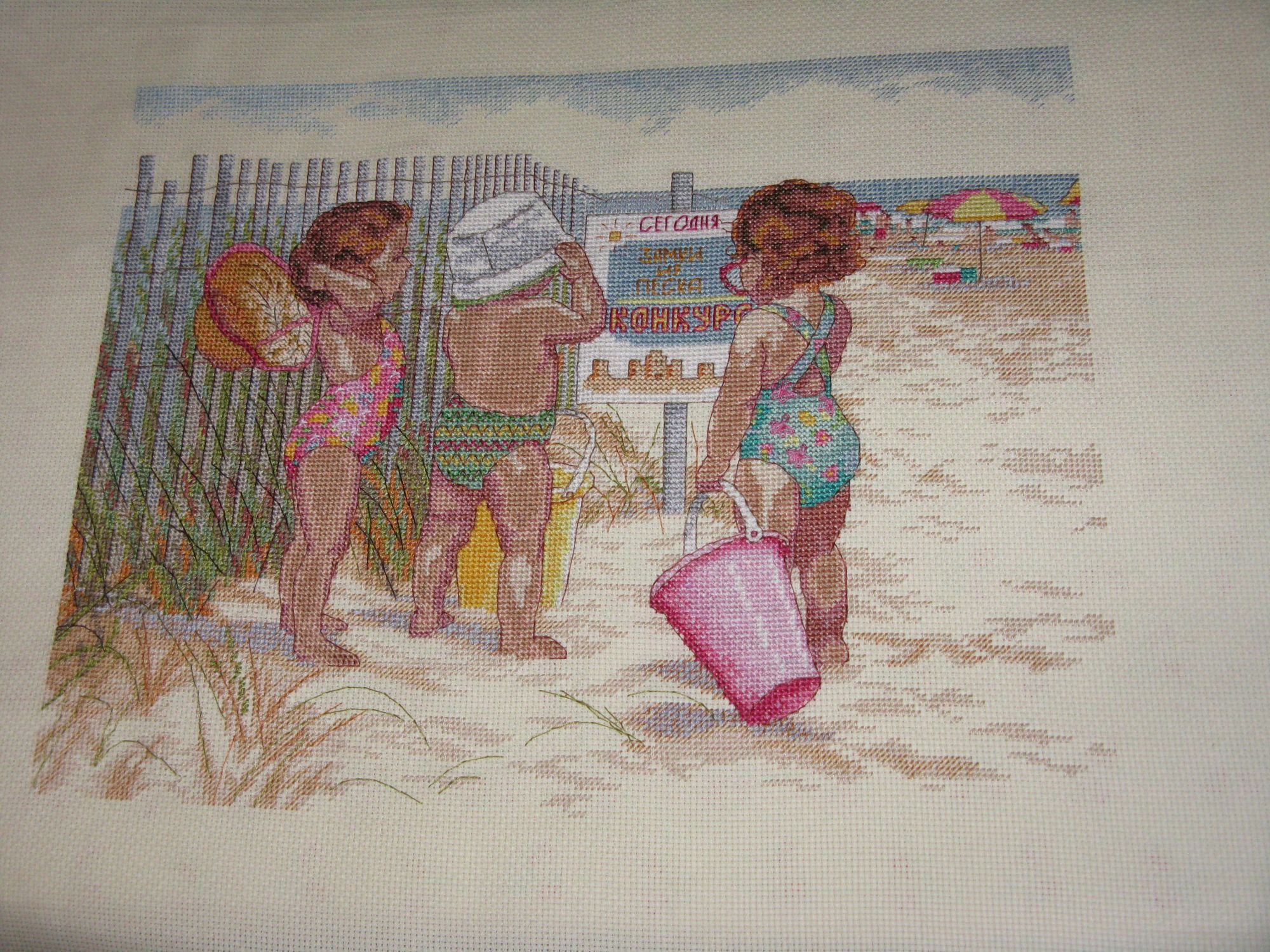 27 сентября 2017 Итак, очередной отчет... Начну, пожалуй, с готового. Дети на пляже закончены! Ура-ура!!! Оставшийся полукрест вышился очень быстро , с бэком было чуть хлопотнее . Но результатом я очень довольна. Теперь буду с нетерпением ждать финиширования феечки и скрытых духов))) Кстати, о феечке... Продвинулась она прилично, уже имеется контур баночки с медом, но пока без меда . Теперь продолжу шить привычно снизу. И, конечно, сапог... В выходные шила металлик - это просто ужасный ужас , но получается красивенько , в следующий раз рассчитываю сделать немного бэка. В авантюрке готова еще одна грань - экватор пересечен ! Правда, вчера обнаружилось, что пропущено четыре бисерины, но их пришью, когда буду пришивать бисер к 4-й части, она как раз сейчас в процессе. За подушку тоже взялась, но поняла, что от этой каймы у меня аж зубы сводит, поэтому решила распороть вышитое и сделать другой вариант, надеюсь, смотреться будет хорошо . Из радостного: Катена полностью поправилась! Не знаю, что они все умудрились съесть, но Аллегро с Ноэль отделались только поносом (пардон-те ), а Катену рвало сразу после еды, она взялась прятаться в диван. Честно, я жутко испугалась. С четверга давала ей энтеросгель и перевела на детское питание, но уже в субботу она затребовала себе обычной еды... в отличие, кстати, от своего семейства: те упорно требовали вкусняшку. В общем, Катена снова бодра и весела, приходит будить меня по утрам, пообещала больше меня так не пугать. Скрытый текст А еще можно я немного пожалуюсь... Есть у нас один товарищ в институте - редкостный хам, постоянно даже не орет - визжит. Как когда-то заметила мне моя начальница, это единственный человек, о котором никто никогда не сказал нм единого хорошего слова. В прошлом году я делала его монографию. Я оказалась плохим редактором))), поэтому на новую книгу он затребовал другого редактора. Но это лирика... Это человек, которому все впускали с рук по принципу: не тронь г***на - не завоняет. А уж вонять он умеет... Говорят, что даже до министра доходил, чтобы ему делали не по правилам и ГОСТам, а так, как он хочет. Был период, когда его слегка приструнили. Но потом все вернулось к началу. Немного предыстории. Сдавал он работу по частям. Вообще так не делается, но начальство сказало "да ладно, возьмите". Рисунки в огромном количестве и совершенно помойного качества: знаете, такие взятые из древних работ и раскрашенные вручную цветными карандашами. Конечно, они отсканированы, но помойкой от этого быть не перестали, надписи многие просто не читаются. Эпопея тянется с апреля, последнюю главу он сдал в июле, редактор ее вычитала, отдала автору и ушла в отпуск. После отпуска она едва не с боем вытребовала у него ответы на вопросы. Вчера отдала верстку. Сегодня он прибежал с воплями, ибо обнаружил несколько слетевших индексов. И вдруг выясняется, что за полгода мы не смогли сделать его нетленный шедевр, что мы бездельники и бездари. Когда я услышала обращение на ты к нашей начальнице (заметьте, она почти на 20 лет старше меня), я решила, что ослышалась: "кто ты такая, да что ты вообще знаешь". Такого базарного хамства я не видела... да, кажется, никогда. Я с уважением отношусь к старости, но впервые мне остро захотелось послать человека по известному адресу. Я просто поражаюсь такому отношению к чужому труду. Он всерьез считает, что ради него долж