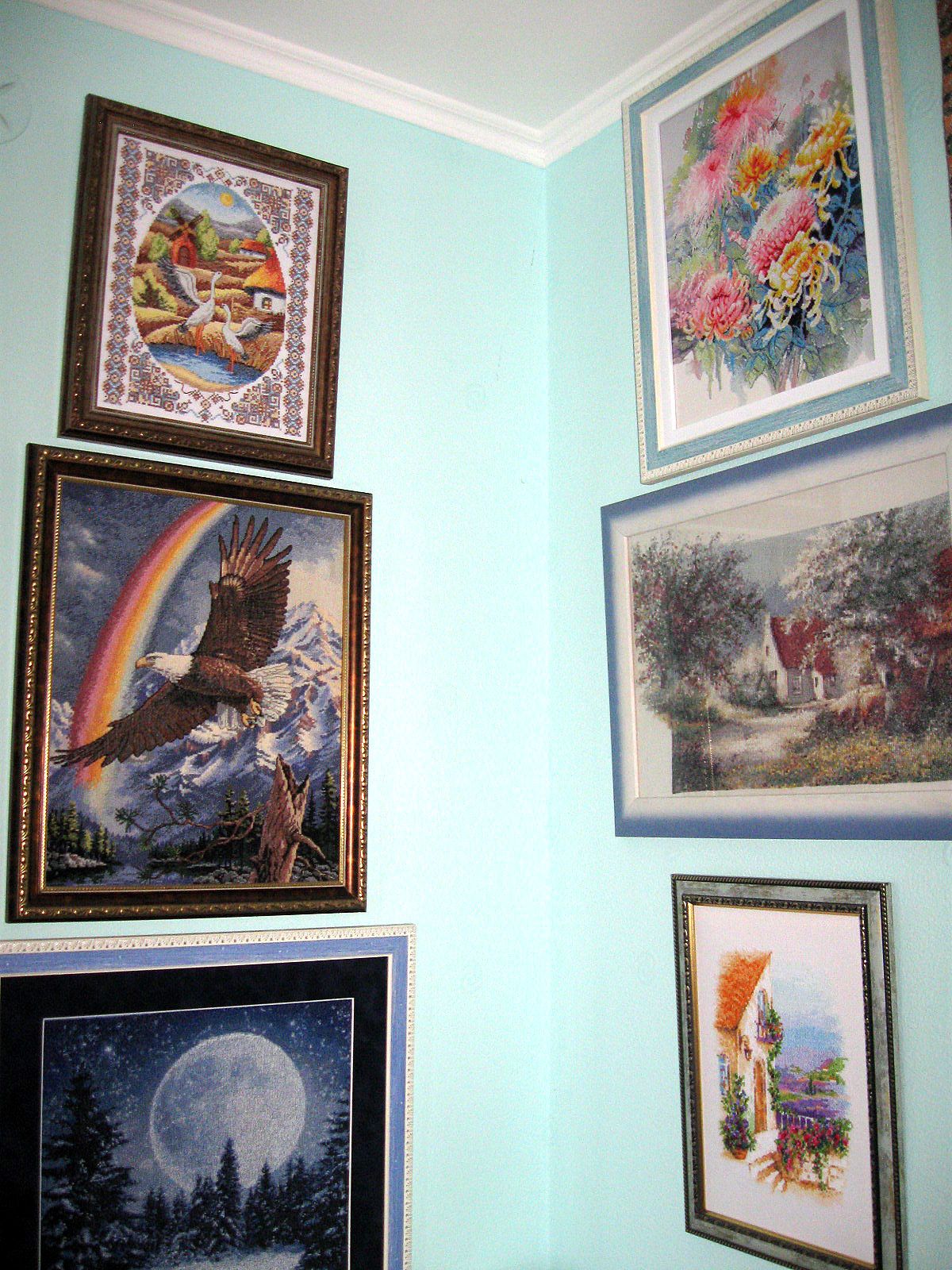 26 августа 2019 "На заливных лугах" уже оформлены. Багет выбрала специально не броский,чтобы не перетягивал на себя внимание, но на фото он не такой, как в реале. Это без вспышки - , а это со вспышкой - , вот здесь он поближе - . На фоне других работ эта теряется - , но другого места в квартире уже нет...))) Naduh, Чивава, nata-g и 7 других сказали спасибо Поделиться сообщением Ссылка на сообщение