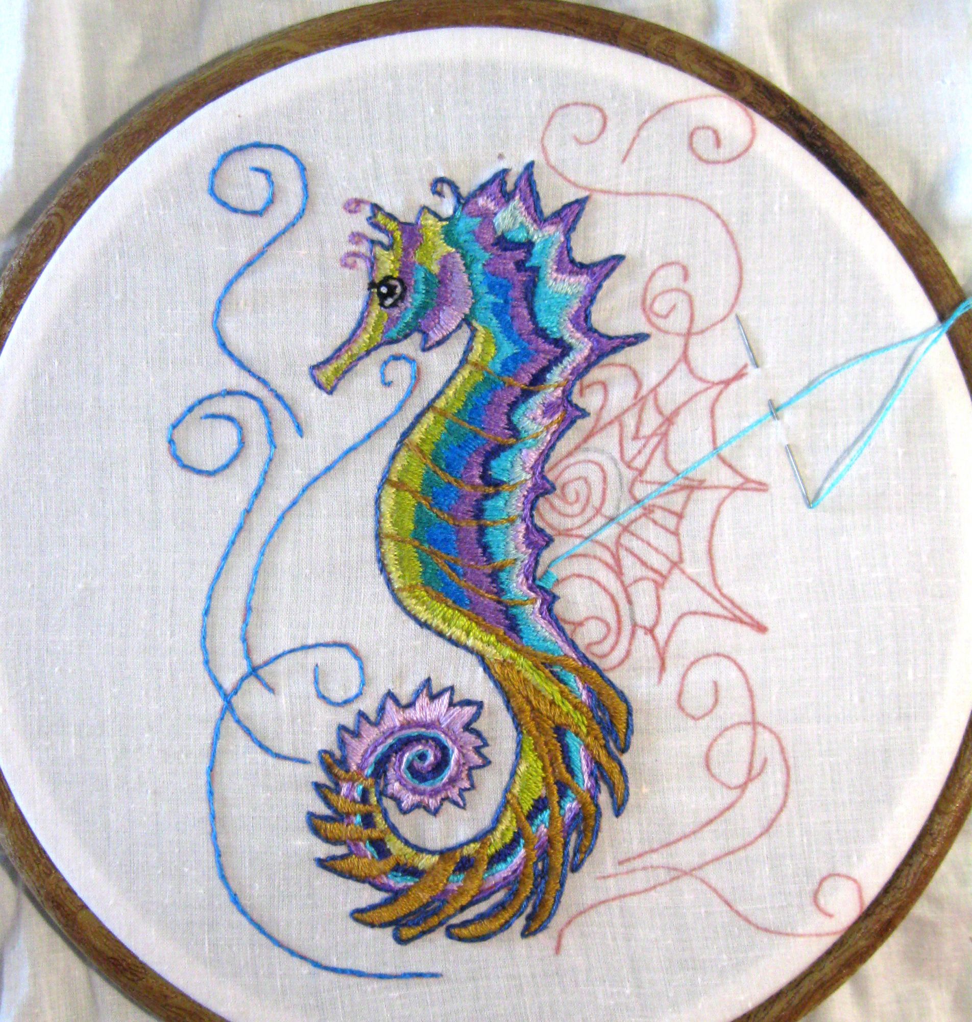 29 октября 2019 Вот и оформился мой морской конек , рамочка его дождалась. Рыбок натыкала по двум причинам: создать эффект подводного мира и перекрыть огрехи изнанки (батист очень прозрачный и даже самые малюсенькие хвостики ниток при оформлении (пришлось три раза отдирать ткань от клеевой основы, пока добилась желаемого результата) очень сильно портили внешний вид вышивки. В работе использовано мулине 19 цветов, вышито 6242 стежка глади, в пересчете получается 3121 крестик. Размер вышивки 15х20 см, в оформлении 18,5х23,5 см. ОльгаВл, maui, ОльгаТольна и 11 других сказали спасибо Поделиться сообщением Ссылка на сообщение