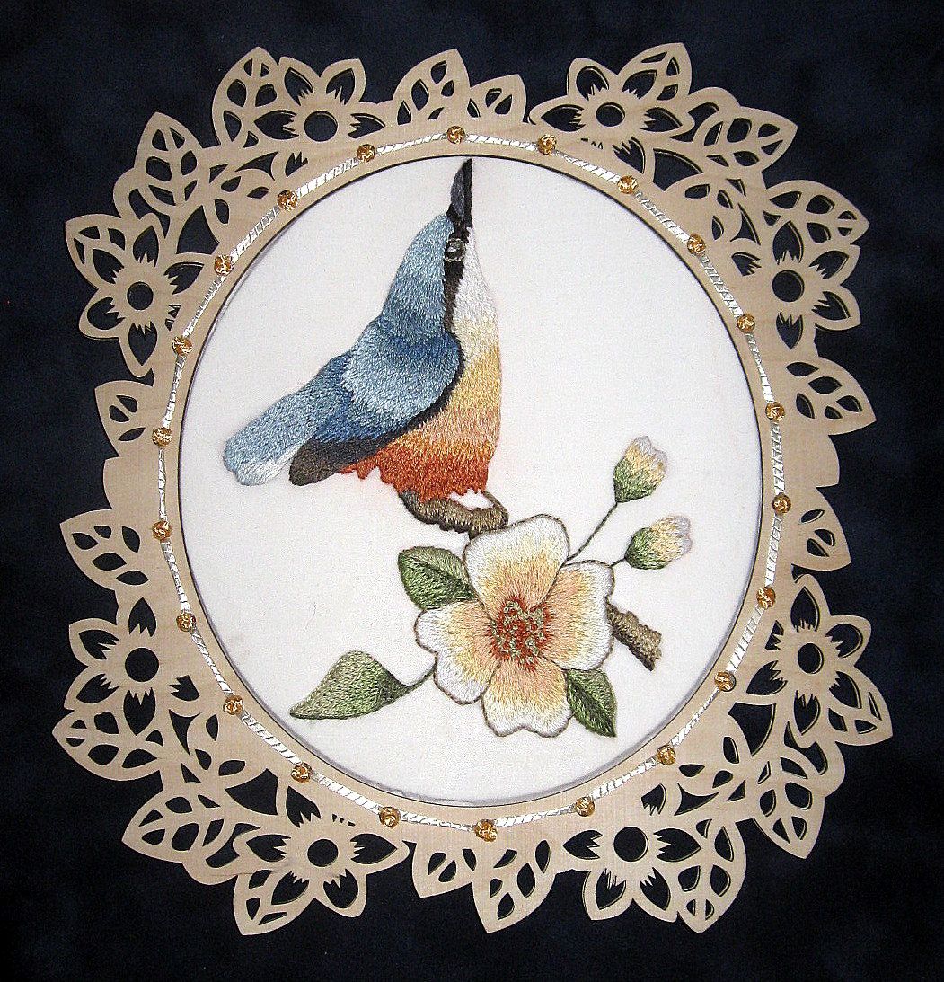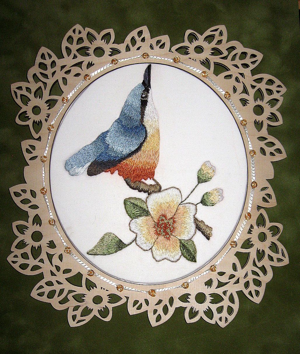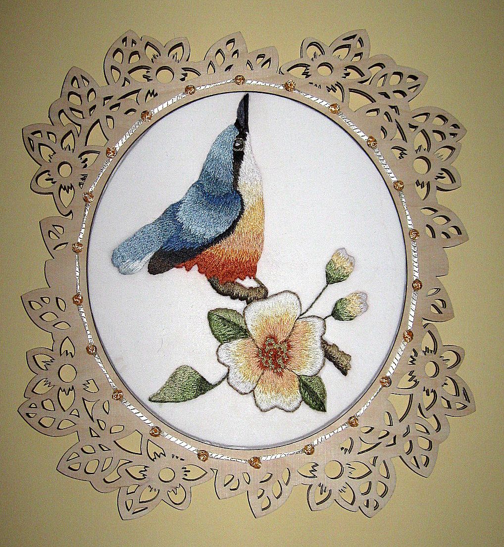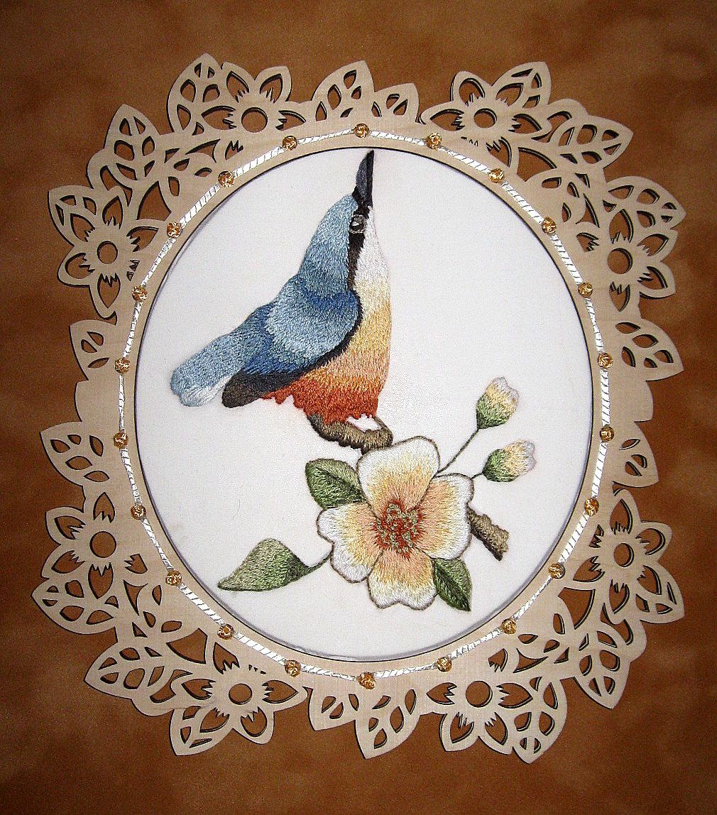 23 ноября 2019 Девочки, мне удалось оформить свою птичку без видимых огрехов (о нервах, времени и многом другом негативном не буду)))... Не могу передать, как она мне сейчас нравится, еще больше, чем ранее. Специально под нее заказала в интернете рамочку из фанеры от Чаривной Мыти, ее специально выпускают для оформления вышивок. Ладушки, не буду томить, сразу фотографии с подложками разного цвета: Теперь на стеночке рядом с моими птичками , так выглядит обратная сторона оформленной вышивки ,это поближе элементы рамочки . Сшивала детали рамочки нитками для вязания, а дырочки заполнила фрузелками другого цвета этих же ниток. Размер внутреннего овала 16х18 см. У меня сегодня просто самый настоящий праздник в связи с этим, ура!!! maui, nata2017, Muskat и 9 других сказали спасибо Поделиться сообщением Ссылка на сообщение