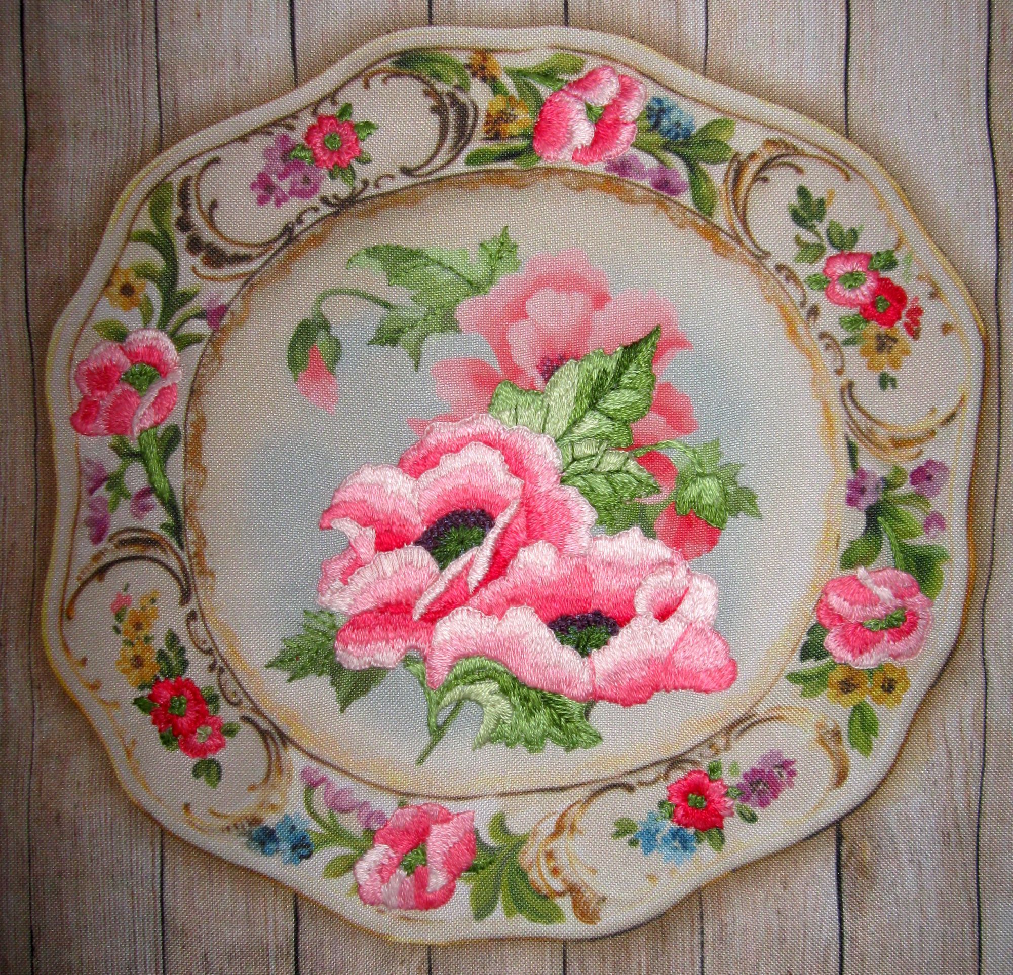 26 апреля 2020 Сегодня на меня что-то нашло, и я за пол-часа очень скромно оформила свои маки. Правда, изначально я так и планировала их оформить. Гибкие пяльца-рамка сыграли свою двойную роль: и в качестве пялец во время вышивки, и в качестве рамочки для готовой работы. Диаметр самой тарелочки 18х18 см, а вышивка в оформлении 22х22 см. Может, в паре с тарелочкой с хризантемами того же производителя, в одном стиле-технике и размере будут эти маки не так резать глаз... ОльгаВл, Egelia, TheSunniestDay и 8 других сказали спасибо Поделиться сообщением Ссылка на сообщение