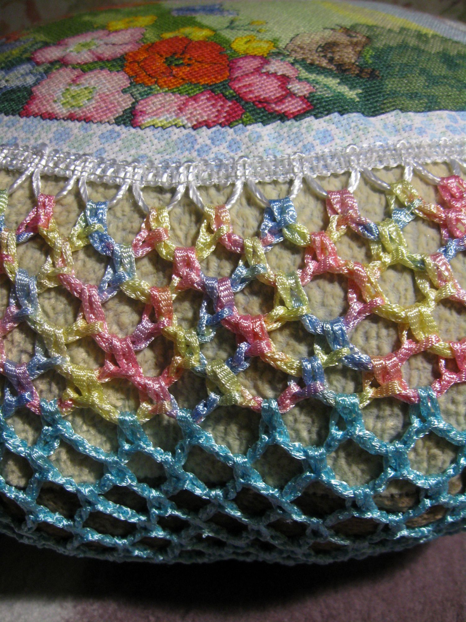 23 сентября 2020 Всем привет. Я сегодня уже и оформила свои воздушные шары, даже неожиданно быстро для самой себя. Так как в качестве картины я их не видела, сумок у меня на лето достаточно, остановилась на подушке, притом диванной. У меня их целых 6 штук и уже прилично поизношенных. Так что выбор пал на "самую-самую" (вот моя претендентка ,ну, как ее не использовать?) Пробежка в магазин принесла мне интересненькую тесемочку, которая не только очень удобно пришилась по кругу, но и, благодаря наличным у нее петелькам, была стартовой площадкой для обвязки вышивки крючком. Ниточки как раз в нужной цветовой, а вернее меланжевой гамме уж очень давно пылились на полочке. И дождались... Все, опус свой приостанавливаю для показа готовой подушки: P.S. Теперь еще пять работ смогу в подушки оформить. Кра-со-та! Ксен40, Lenyska153521, titania и 13 других сказали спасибо Поделиться сообщением Ссылка на сообщение
