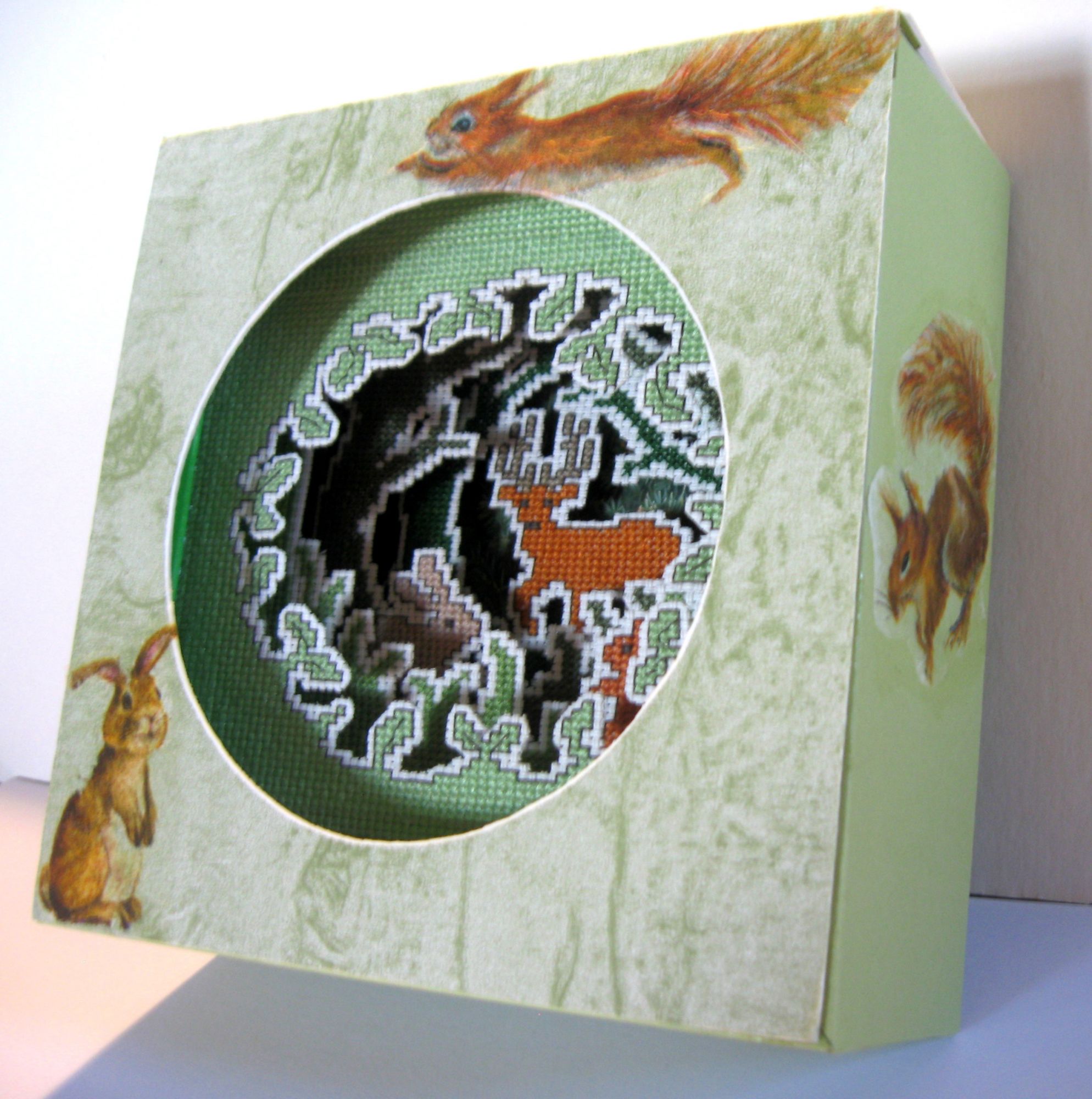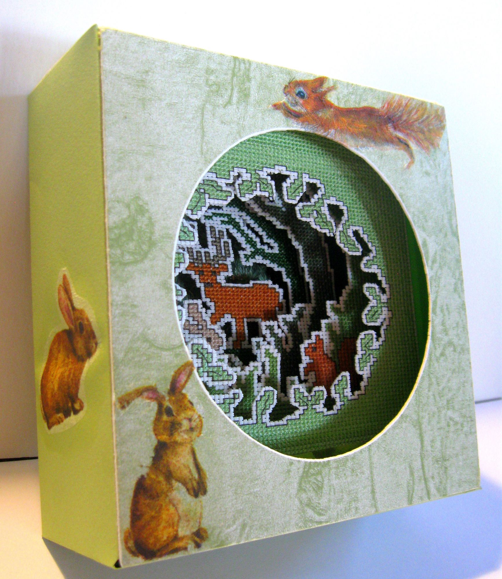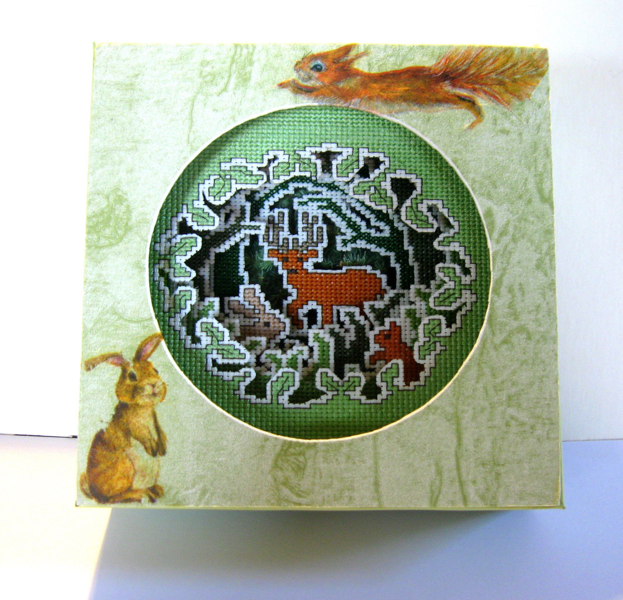 15 октября 2020 А вот и я со своим "Таинственным лесом" - дошила и дооформила его, теперь показ готовчика. Сразу немножко о сборке: В ход пошло все из "хомячьих запасов" - гофрированный картон двух цветов, лист двухстороннего картона 30х40 см, остатки паспорту, салфетки для декупажа. 4 слоя вышивки, задник и лицевую часть крепила между собой с помощью гофрированного картона , затем весь этот сэндвич поместила в конструкцию из двухстороннего картона, лицевая и верхняя части - из остатков паспорту (круг на лицевой стороне вырезала маникюрными ножницами). Все соединялось между собой клеем. Ну, и сама коробочка с вышивкой: , вид с боков , и масса детальных фото для ощущения объема .Снимала и видео, но оно почему-то не воспроизводится здесь, загружу его на ю-туб, потом размещу ссылку.Да, размер коробочки 15,8х15,8х6см, диаметр окошка под вышивку 11 см, размер каждой вышивки 72х72 крестика, использовано 9 цветом мулине, виниловая канва 14, техника вышивки крест и бэк-стич, всего вышито 12786 крестиков. titania, ОльгаТольна, TheSunniestDay и 6 других сказали спасибо Поделиться сообщением Ссылка на сообщение