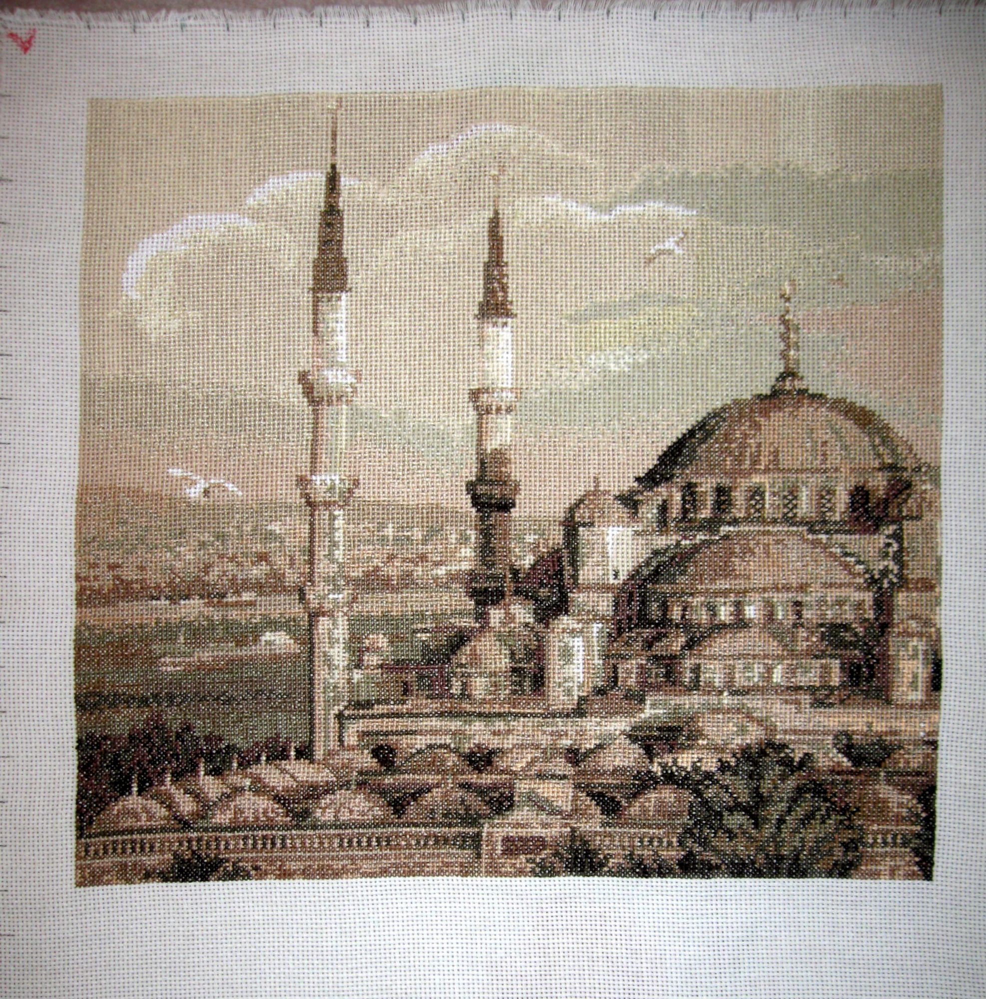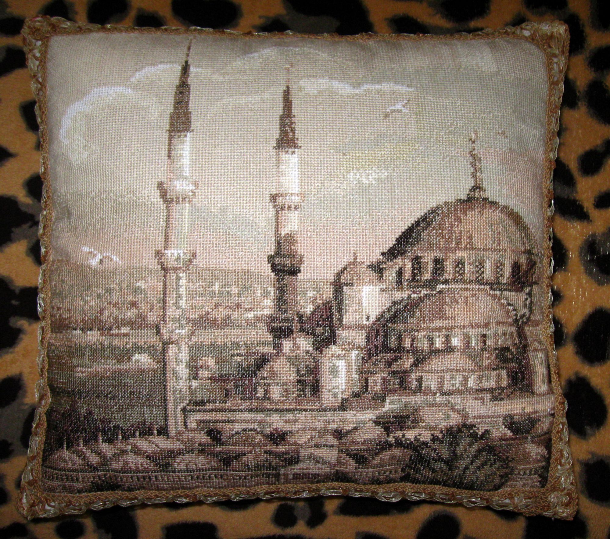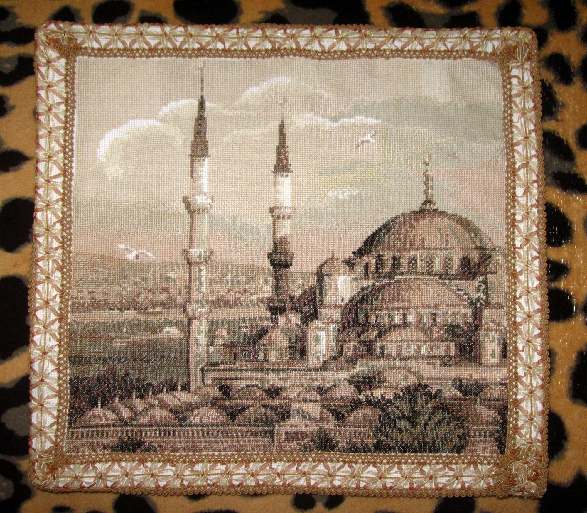 23 июня 2021 Оформились мы в подушечку - "Стамбул. Голубая мечеть". Сама вышивка в оформленном виде и в качестве подушки . Для тыльной стороны прикупила подкладочную ткань с турецкими огурцами , нашлось и кружево подходящее в хомячьих запасах , сшилась подушечка на удивление быстро и легко . Информация по схеме фирмы Панна: - мулине 15 цветов подбор; - канва Аида 14 белая; - размер вышивки 180х180 крестиков; - полная зашивка; - в оформленном виде размер 40х40 см. - всего вышито 32400 крестиков. Отдельная и огромнейшая благодарность Олечке Iharu. Без тебя у меня не было бы этой красоты. Цем-цем тебя крепко. TheSunniestDay, nata2017, maui и 2 других сказали спасибо Поделиться сообщением Ссылка на сообщение