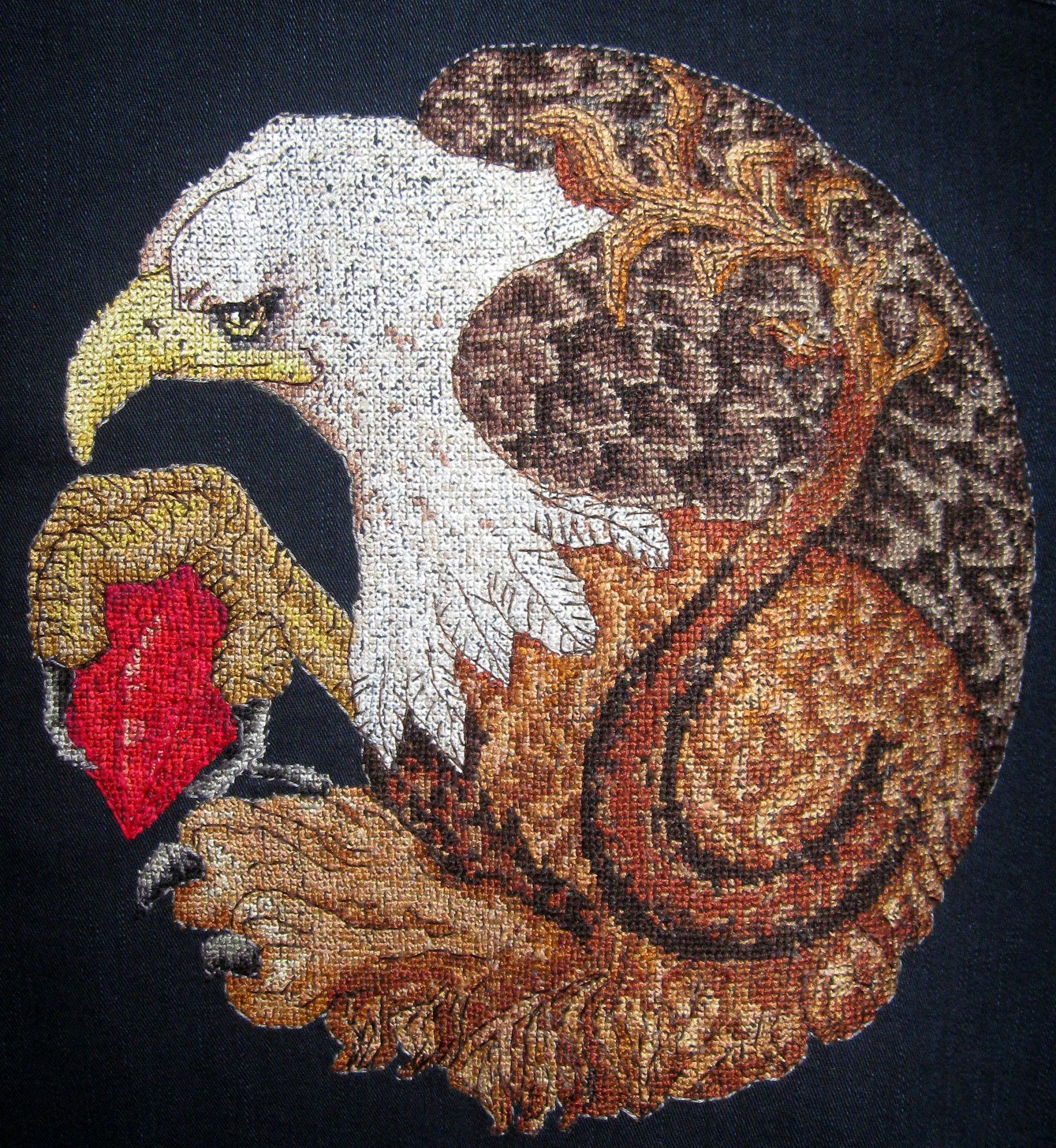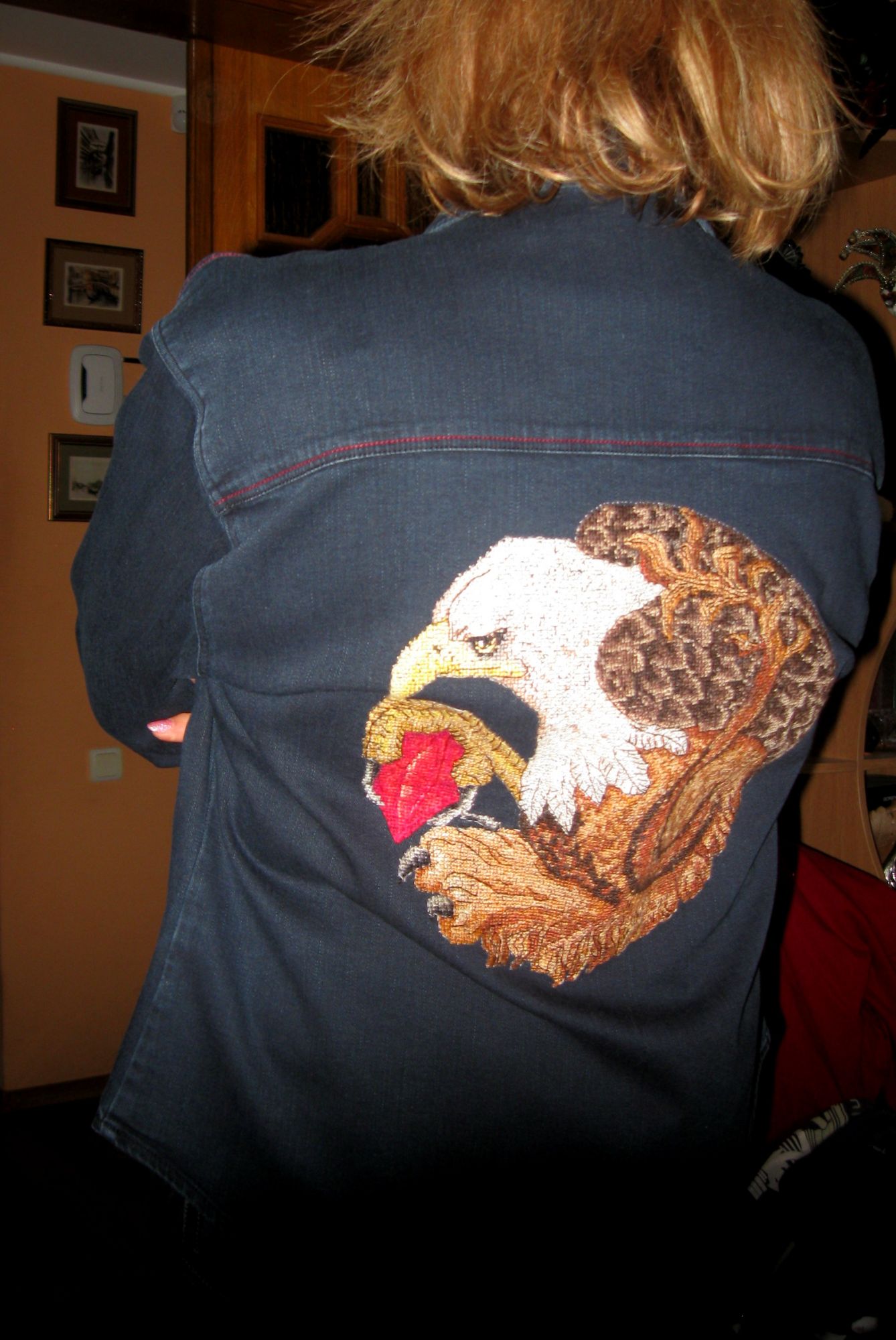 5 сентября 2021 Грифон завершен и победоносно водрузился на свое место ))) (зеленим гаечку) Все мучения и треволнения остались в прошлом. "Поспел" он у меня как раз к осени. Немножко информации по самой работе (вдруг кто-то не знает): вышивка на джинсовой курточке по схеме из интернета (с использованием обычной канвы Аида 14 с последующим выдергиванием нитей из-под вышивки). Размер схемы 145х146 крестиков, в работе использовано 44 цвета мулине. Полная зашивка, техника вышивки крест в 2 нити и бэк-стич. В готовом виде работа имеет размеры 27х28 см. Всего в пересчете вышито 10807 крестиков. maui, nata2017, TheSunniestDay и 6 других сказали спасибо Поделиться сообщением Ссылка на сообщение