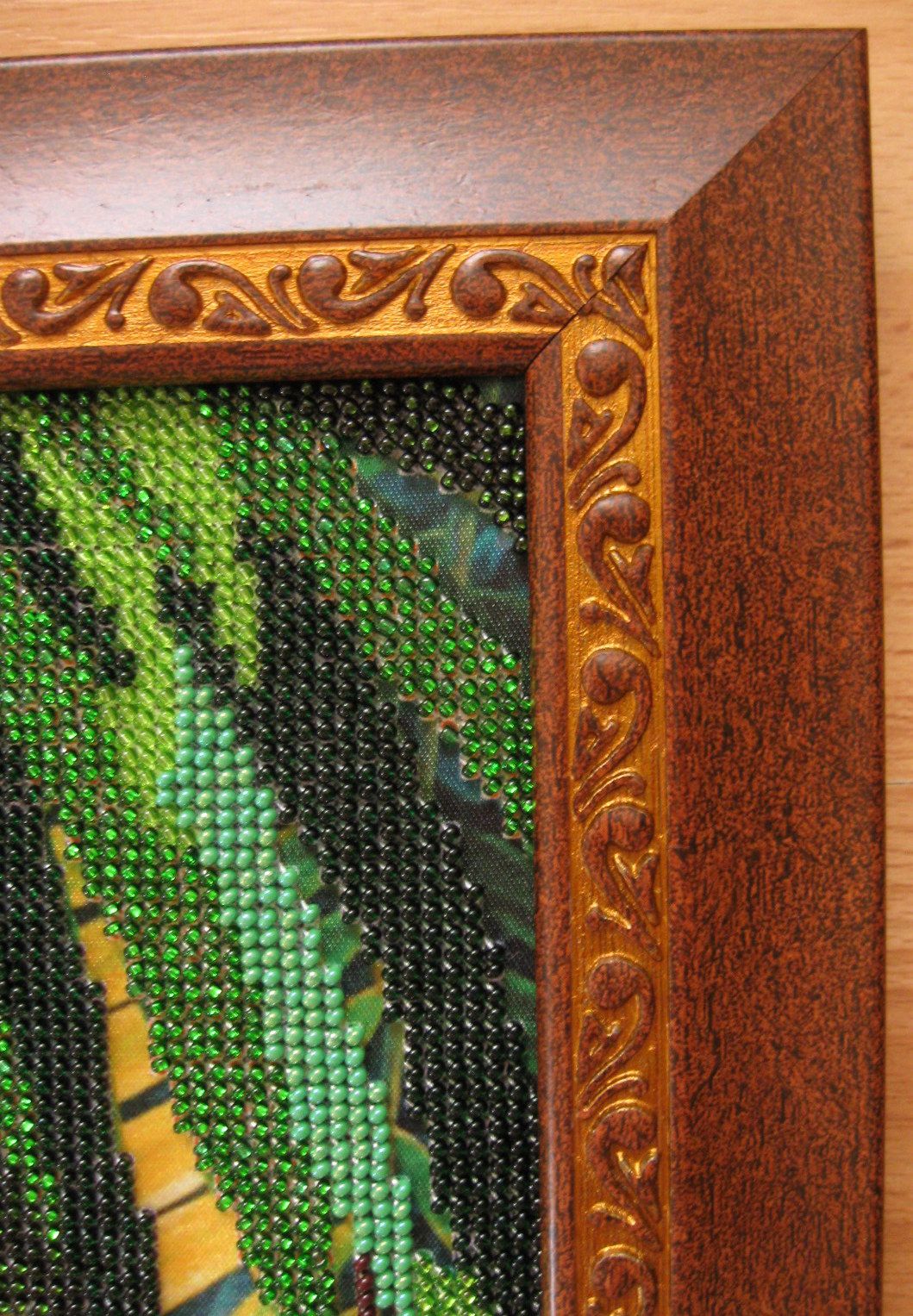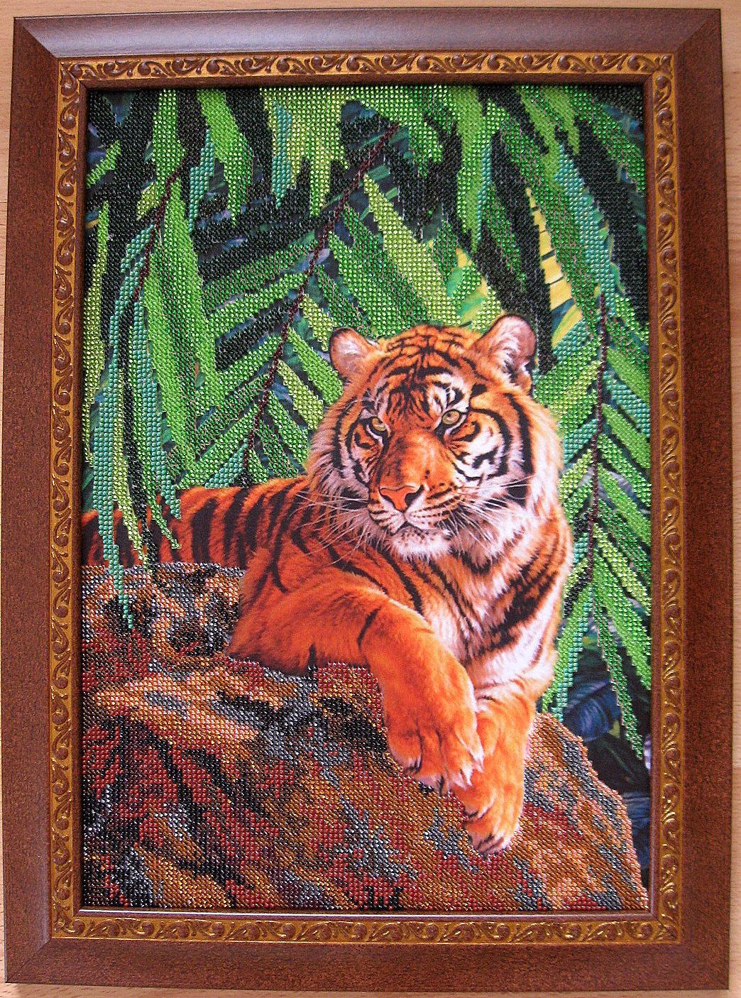 14 июня 2018 "Хозяин джунглей". Вышивка бисером по канве с рисунком от ТМ Маричка. В работе использовано 17 424 штук бисера 15 цветов. Размер самой вышивки 25х37 см, в оформлении - 32х44 см. Фотографировать пришлось в тени, т.к. на свету и со вспышкой бисер засвечивает кадр. В реальности выглядит сочнее, насыщеннее и намного красивее. ОльгаВл, Ivi, Aleksacha и 7 других сказали спасибо Поделиться сообщением Ссылка на сообщение