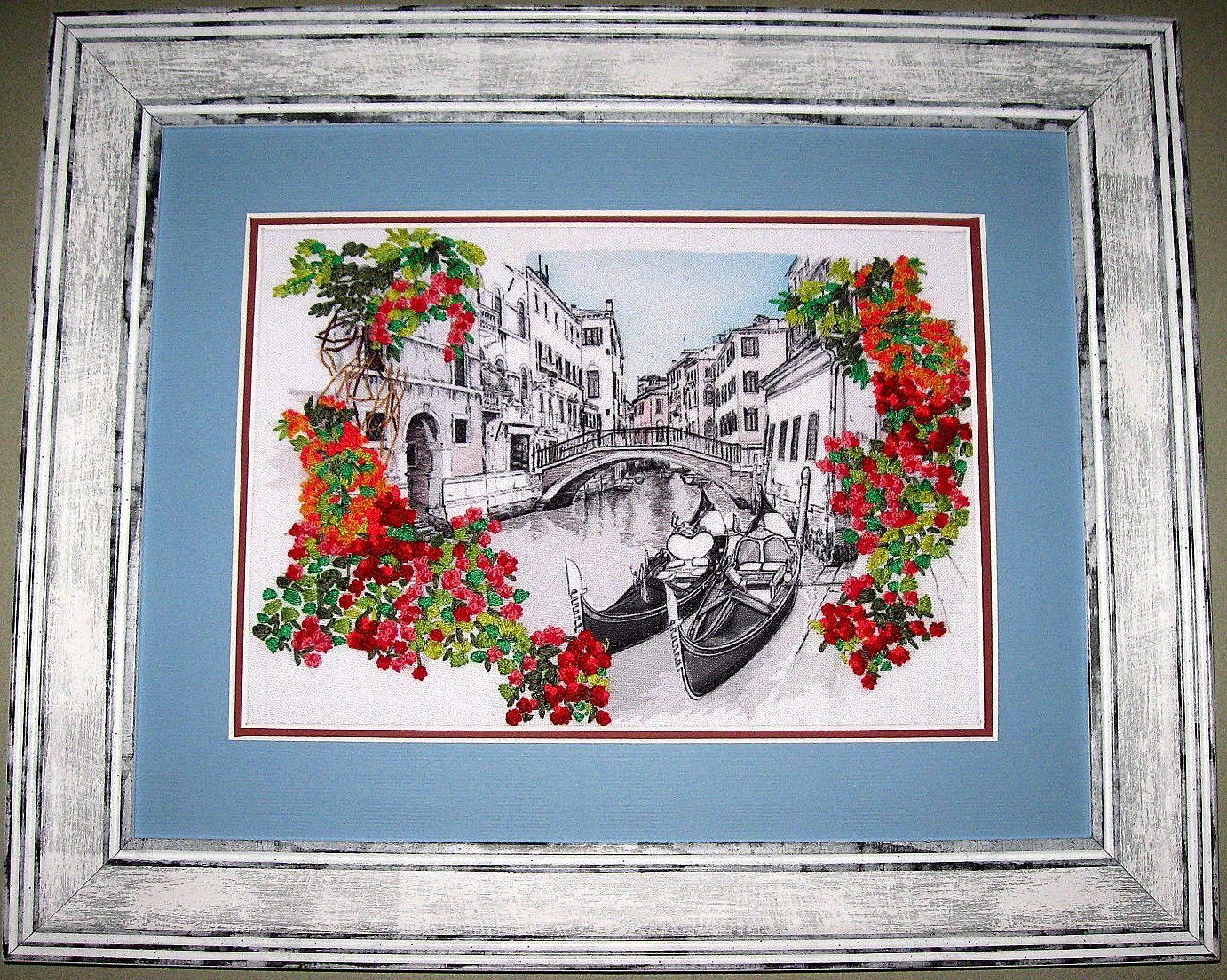 24 декабря 2018 А мы уже приоделись! "Венеция" (по набору фирмы "Оланта"). Техника вышивки - шовчики по канве с нанесенным рисунком: прямой стежок, петельчатый стежок, гладь, французский узелок . Двойное паспорту и состаренный багет ,как по мне, очень удачно дополнили этот незамысловатый сюжет. Размер самой вышивки 23х16 см , в оформлении - 37х30 см. В работе было 13 цветов мулине и акрила. Благодаря этому процессу наконец-то научилась правильно "создавать" фрузелки. Ivi, Чивава, Naduh и 9 других сказали спасибо Поделиться сообщением Ссылка на сообщение