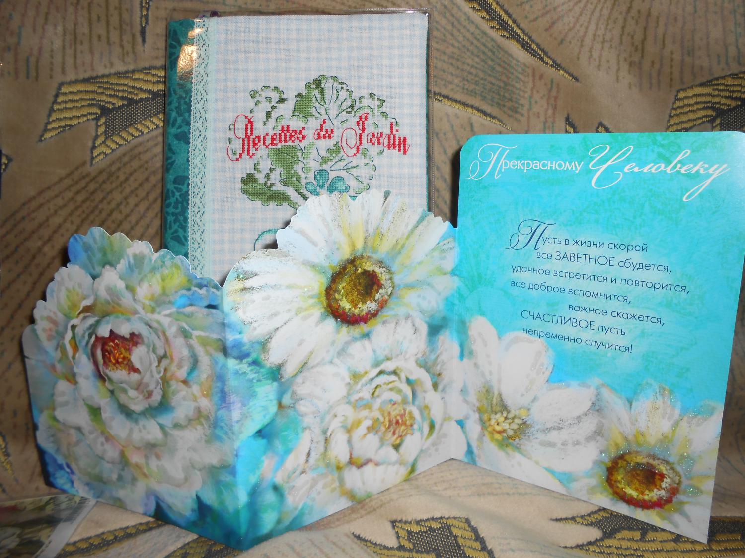 17 сентября 2014 От всей душии поздравляю с получением наипрекраснейшего сюрприза! Но я тоже не без новостей! ДЕВОЧКИ! Я только что с почты забрала посылочку от Татьяночки Treisi, сижу и плачу от восторга, неописуемого словами!!! Это мой первый в жизни сюрприз, который я лично получила, и ТАКОЙ ОБАЛДЕЕЕЕНННЫЫЫЫЫЙ!!! Каждый подарочек, который я доставала из коробки, вызывал МОРЕ-МОРЕ-МОРЕ эмоций (всё заснято на фото)))! Татьяна! Мои слова не выразят того, что я сейчас чувствую, потому что всё, что ты для меня сделала - это ПРЕКРАСНО и НЕВЕРОЯТНО ПОТРЯСАЮЩЕ! СПАСИБО ОГРОМНОЕ!!! ОГРОООМНОЕ СПАСИБО!Девочки ! Таня так прониклась тем, что я люблю, что выслала ровно всё, что я люблю!!!!!!! Какие у меня теперь Редииисочкиии на личной (и надо сказать прямо) Первой в жизни собственной кулинарной книге!!! Невероятный-невеееероятный собственноручно сделанный отправительницей портомонетик!!! А сколько же потрясающих!!! ПОТРЯСАЮЩИХ салфеток для так любимого мной декупажа (и с пионами- пиончиками, которые я очень люблю, а еще кофе и белочками-вааай)!!! А вкусняшек сколько - мммм, чаёк, безумно любимый, лак для ногтей и мыло (очень вкусное), Мисочка с изображением весёлых овощей, и...трам-паараам, моя дааавняя хочушка, которая, любящей не взаимно девушке, как бальзам на душу...: "Конечно любит" от фирмы "ПАННА" (дизайн Молодецкой, который буду вышивать впервые, аах, как это прекрасно), что ещё забыла: книга рецептов, как раз для осенних даров - будем пробовать мариновать, и открыточка, открыточка такая душевная и ... с любимым пиончиком, да еще и раскладывается как потрясающе.. НЕТ СЛОВ, ОДНИ ЭМОЦИИ, которые, как вы видите, просто зашкаливают. Танечка! Я счастлива, очень, очень, приочень! Спасибо тебе, что так прониклась, что так душевно подошла к подбору подарочка... Как же это приятно! Очень приятно! Спасибо!!! Извините, что такой сумбур в моей длинной речи и без смайлов... Я не могу отойти до сих пор) ДО связи... treisi, Lady_flame_))), Elvica и 37 других сказали спасибо Поделиться сообщением Ссылка на сообщение