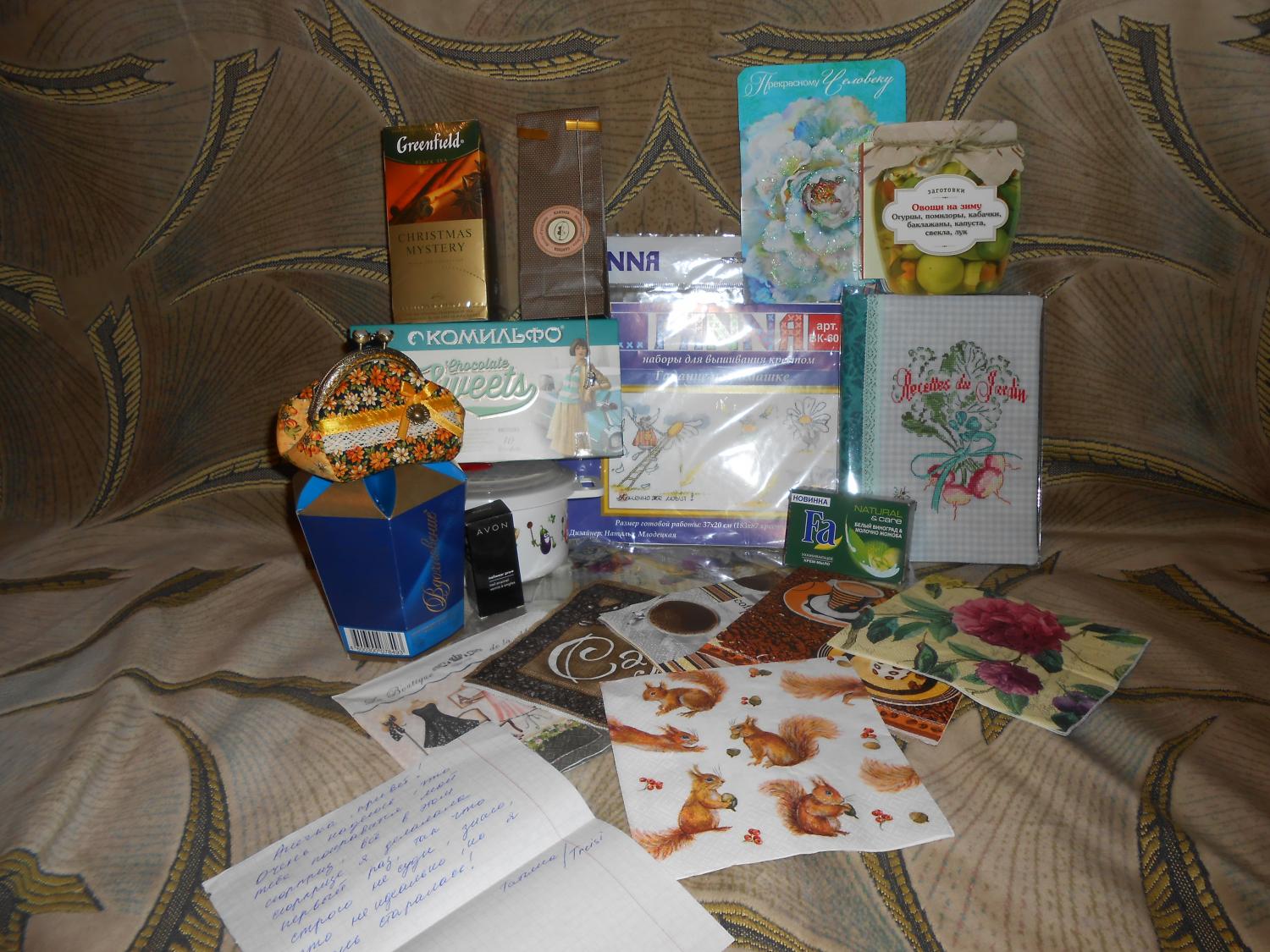 18 сентября 2014 Сколько новостей тут))) Прям сюрпризопад!) FEDOR63, поздравляю с получением заветной посылочки!)) Какой обалденный крыжовник (мечта многих), вот у тебя она сбылась!))) А наполненость сюрприза поразила, все очень душевно. Каори умничка!)) Annyschka89, первая посылочка наипрекраснейшая!) какое все великолепное!) Поздравляю с получением!) Treisi, книга рецептов просто волшебная, тоже хотела этот мотивчик вышить, но как-то все удачно передумала в пользу вишенок!))) Надо будет повторить твой подвиг по такой расчудесной книге рецептов!) Голова идет кругом от каких необыкновенных сюрпризов Поистине душевно-прикладной вышел у нас "Осенний сюрприз!" и когда же наконец дойдет до меня мое извещение Каори, treisi, FEDORMaзиус и 1 другой сказали спасибо Поделиться сообщением Ссылка на сообщение