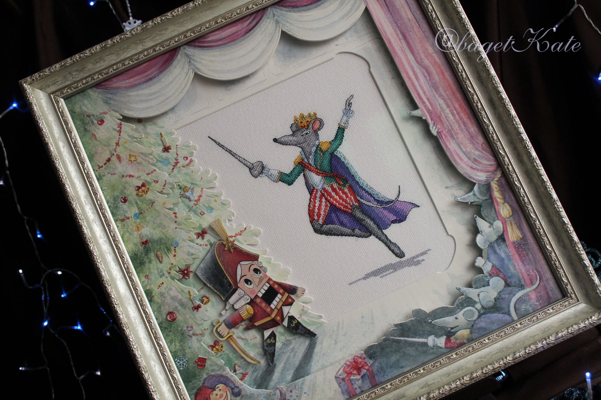 1 января 2020 Добрый вечер! Поздравляю всех с наступившим Новым годом! Хочу пожелать здоровья и благополучия! В продолжение новогодней темы хочу показать оформленного «Мышиного короля» от BIBIArt. Когда вышила этот сказочный персонаж, то возник вопрос с оформлением. С одной стороны хотела, чтобы работа в законченном виде напоминала книжку-раскладушку из моего детства, с другой - декорацию к балету «Щелкунчик» П.И.Чайковского. Мои пожелания воплотила в жизнь художник-оформитель Е.Алексадрова: В оформлении работы использованы: кулисное паспарту с дорисовкой, ручным фигурным резом, 3D-эффект, музейное стекло, деревянная рама. Натяжка выглядит таким образом: Картину вышивала в подарок папе, который родился в год Крысы. ms_flora, tavenir, Гало4ка и 6 других сказали спасибо Поделиться сообщением Ссылка на сообщение