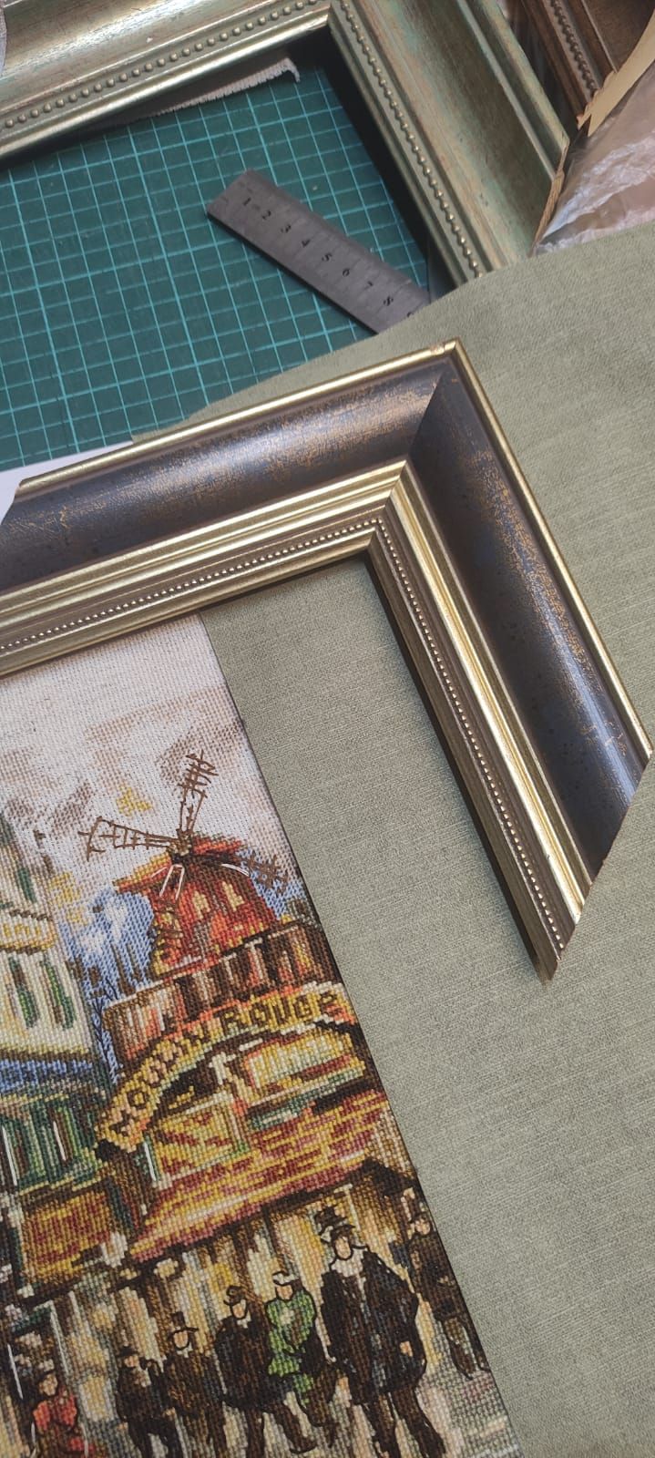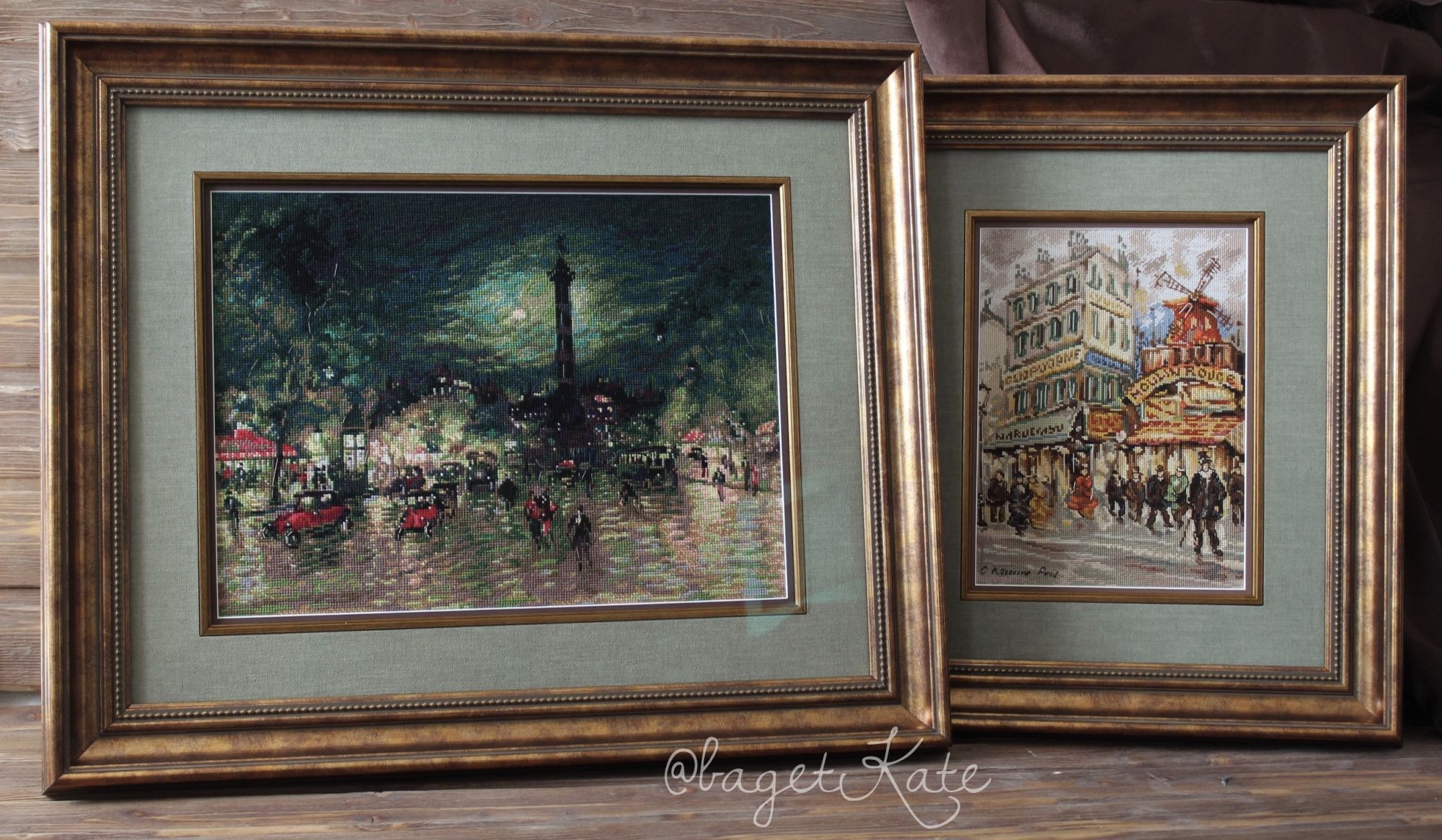 25 мая 2023 Добрый вечер! Оформились мои работы: Риолис «Бастилия» и RTO «Мулен Руж». Подбор оформления занял довольно много времени, думала над различными вариантами багета и паспарту: В итоге остановила выбор на золотистом багете, паспарту с эффектом льняной ткани: За выходные сделаю фото текущего вышивального процесса. Продвижения есть, но маленькие… Поделиться сообщением Ссылка на сообщение
