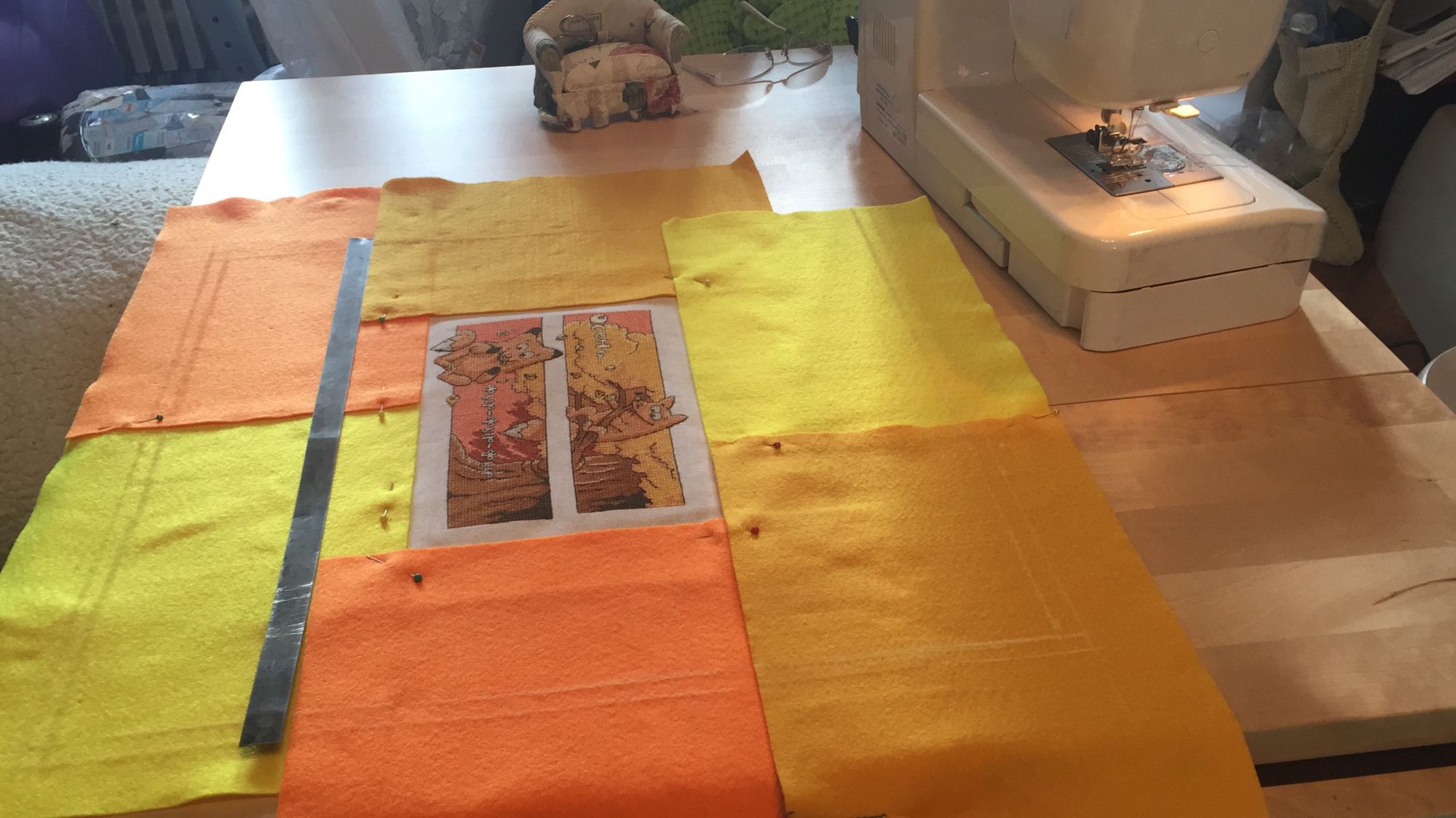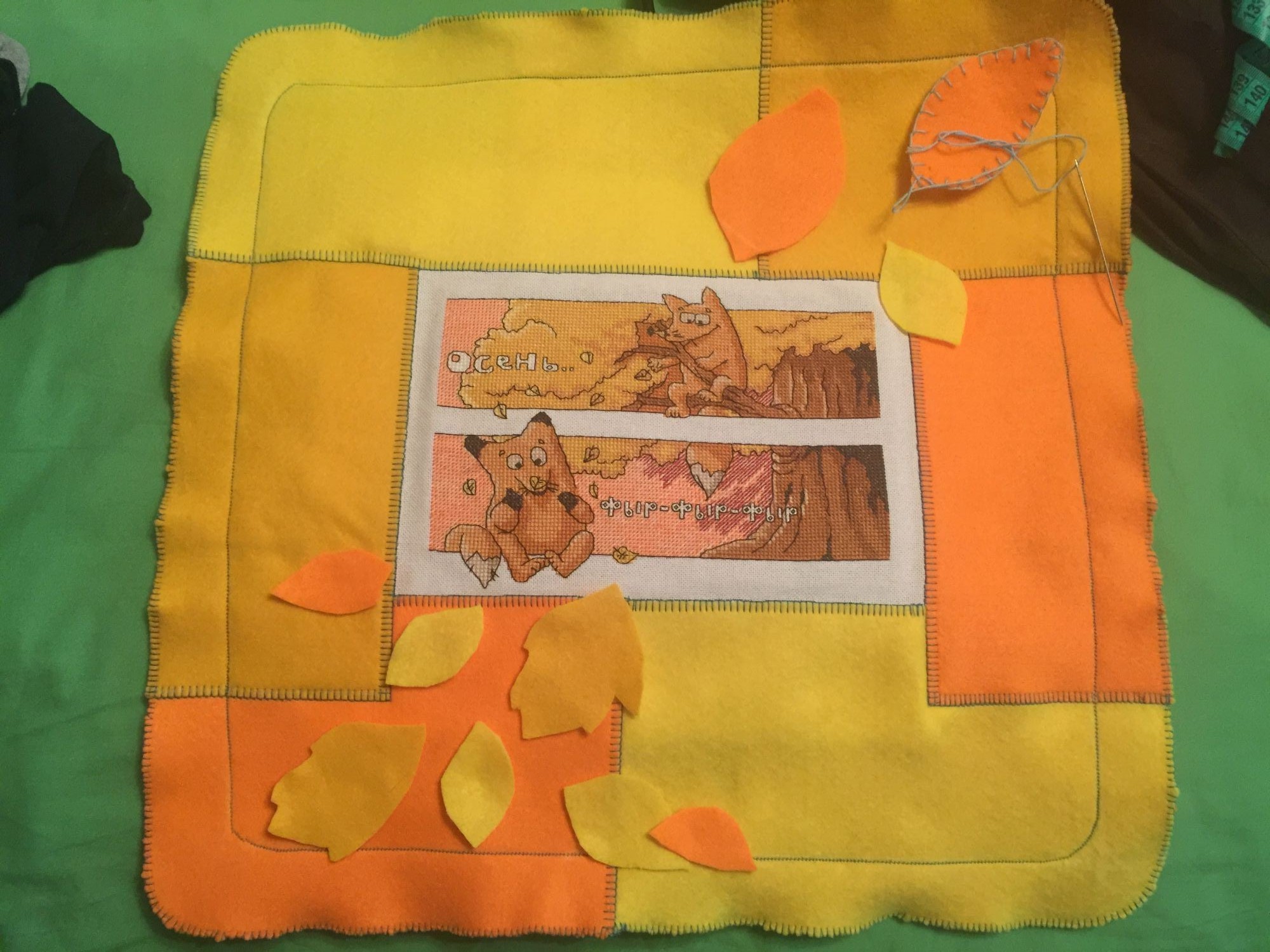 30 июня 2017 13 минуты назад, svetles сказал: начни с сюрприза что ли а остальное подтянется Та не вопрос!)) Действительно, сейчас в активной стадии находится наша любимая игра "СЮРПРИЗ", которая в этом году набрала просто космическое количество участников! Для меня это второе участие в игре, поэтому особого мандража уже не было. Ну только в середине немного, когда были сомнения, что успею ли закончить все в срок) Благо, был ряд событий, о которых я расскажу в следующих постах, которые дали мне неделю на завершение и отправку сюра! Собственно, когда я получила 3 варианта темы на выбор от Татуси, я как то сразу выбрала ее - одну) Я даже не помню уже, какие еще 2 варианта было...) Для меня Любимое время года - это Осень) Люблю ее, засранку) со всеми сменами ее настроения..) Что делать - пришло в голову моментально! Картинка, до мелочей, уже была сложена изначально! Основной сюжет у меня "вылеживался" в закромах дааавно) года 2-3, наверное...как только увидела эту бесплатную схему от Воденикова (Степанова) Любовь - сохранила и иногда возвращалась к ней с мыслями: "Когда же я доберусь до нее?". Очень уж мне понравились эти лисы, эти цвета!! А эта фраза: "Осень - фыр-фыр-фыр.." - ну прелесть же!!! Шить изначально решила на равномерке. Под рукой подходящей оказался кусочек Линды: Шила я в совершенно разных местах: и дома, и в самолете, и в электричках...так что, лисята путешественники вышли) Сам процесс создания: При отшиве также поставила эксперимент. Испытывала в работе двусторонние иглы от двух производителей: . Внешне и опционально вроде одинаковые. Только один китайский и дешевый, а другой английский и сами догадываетесь, какой по цене)) Записала даже небольшое видео, как я ими вышиваю: IMG_8244.MOV Идея интересная, конечно, но жаль, что до ума не доведенная. Я бы внесла пару изменений в модель и размеры. А так - для небольшого круга работ и условиях можно их использовать. Поэтому, почти не пользуюсь ( Далее самое интересное - а как оформить то? целую неделю Маса ходила-бродила по магазинам, в поисках ткани и музы на оформление...но все было глухо....а потом, глаза упали на яркий фетр и ...не зная еще, что я с ним буду делать, набрала его побольше)) Ну а теперь процесс прикидки и примерки: Последний вариант мне показался интересным и я решила его применить и развить) Плед к комплекту у меня уже был и я решила подушку шить похожим на него) Схожесть достигалась за счет цветового сочетания и обметки по краям. Признаюсь, ручную обметку делала только на листиках декоративных, а пошивочную делала с помощью машинной строчки) Создание подухи проходило в солнечный, позитивный день! Поэтому она пропитана просто теплом и солнцем) Пуговички сделала из полимерной глины, чтобы были похожими на листики: Дальнейшее декорирование и наполнение: Вот такой итог (подуха + плед): В дополнение еще был браслет и кружка, процесс по которым не зафиксировала чего то Перед отправкой надо ж было сфотографировать все, а как на зло, за горизонтом шли тяжелые тучи. Поэтому, мухой помчалась на ближайшую опушку, чтобы успеть до смены погоды все запечатлеть: Процесс мне очень понравился! Как обычно, муж скулил и спрашивал: "Опять не нам?"))) Самое главное, что Яне все понравилось)) Lenara, Galagenka, ОльгаВл и 47 других сказали спасибо Поделиться сообщением Ссылка на сообщение