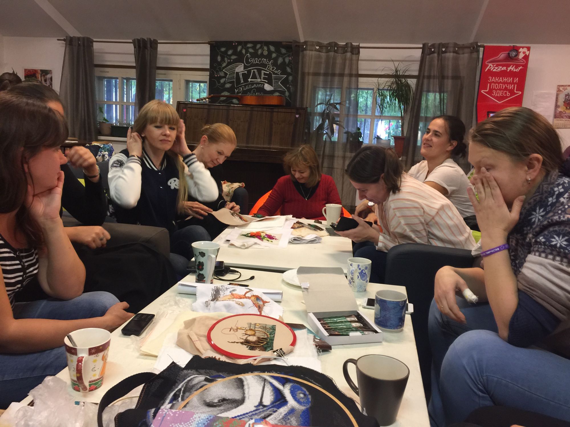 22 октября 2017 Приветствую вас, Земляне!! Да-да)) это вас приветствует законченный Юрик! С пылу с жару: Шила я его под пристальным контролем ... поэтому, наверное и шился он....скрипя зубами орудовала металликом, но эффект просто космос! Вот она земля-матушка Немного для гайки, показать путь: Несколько слов о минувшем уже событии Формула рукоделия, где мне довелось снова быть)) Путешествие одного дня было как в сказке (в хорошем смысле этого слова). Любимая авиакомпания также в этом поспособствовала, любезно пересадив меня с эконома в бизнес)) и в итоге, утром мы летели в комфорте со старым тогда процессом Юрик - , а вечером уже с новым процессом, подлив немного вина в бокалы)) Впечатлений от выставки много и все хорошие) на удивление, была скромна в своих покупках.. и все вылилось только в пару основ для скатерти и несколько наборов-новинок: ежик от МИ и серия собачек в рамках от РТО. Немного меня "в цветах МИ": Погуляв до обеда по выставке, встретив много знакомых лиц, отправились на обед) это уже традиция какая то)) оч приятно далее была встреча! Шабаш!!)) Украдкой успела сделать несколько фоток (спецом, никаких маскировок не делала ): Спасибо всем тем, кто пришел! Спасибо за чудесное общение)) Очень рада новым знакомствам!! Отдельно хочется сказать: Маняшик - !! "Ты Одессит-Мишка, а это значит Что не страшны тебе: ни горе ни беда Ведь ты моряк Мишка, моряк не плачет И не теряет бодрость духа никогда...")) В обратную дорогу, руки чесались-чесались...чесались-чесались и начесали...открыла новый наборчик, что в скорости и вышила) прелесть! Новинка от РТО Собак "Философ": Цып, !! Как то на работе было...грустно...и все раздражало....что я откровенно "забила болт на нее" и под столом вышила смородинку из бесплатно раздаваемого набора от МИ: В целом, у меня все!) До встречи в новом сеансе)) А я лечу дальше по орбите Ponochka, mamatata, S4astlivaja и 46 других сказали спасибо Поделиться сообщением Ссылка на сообщение