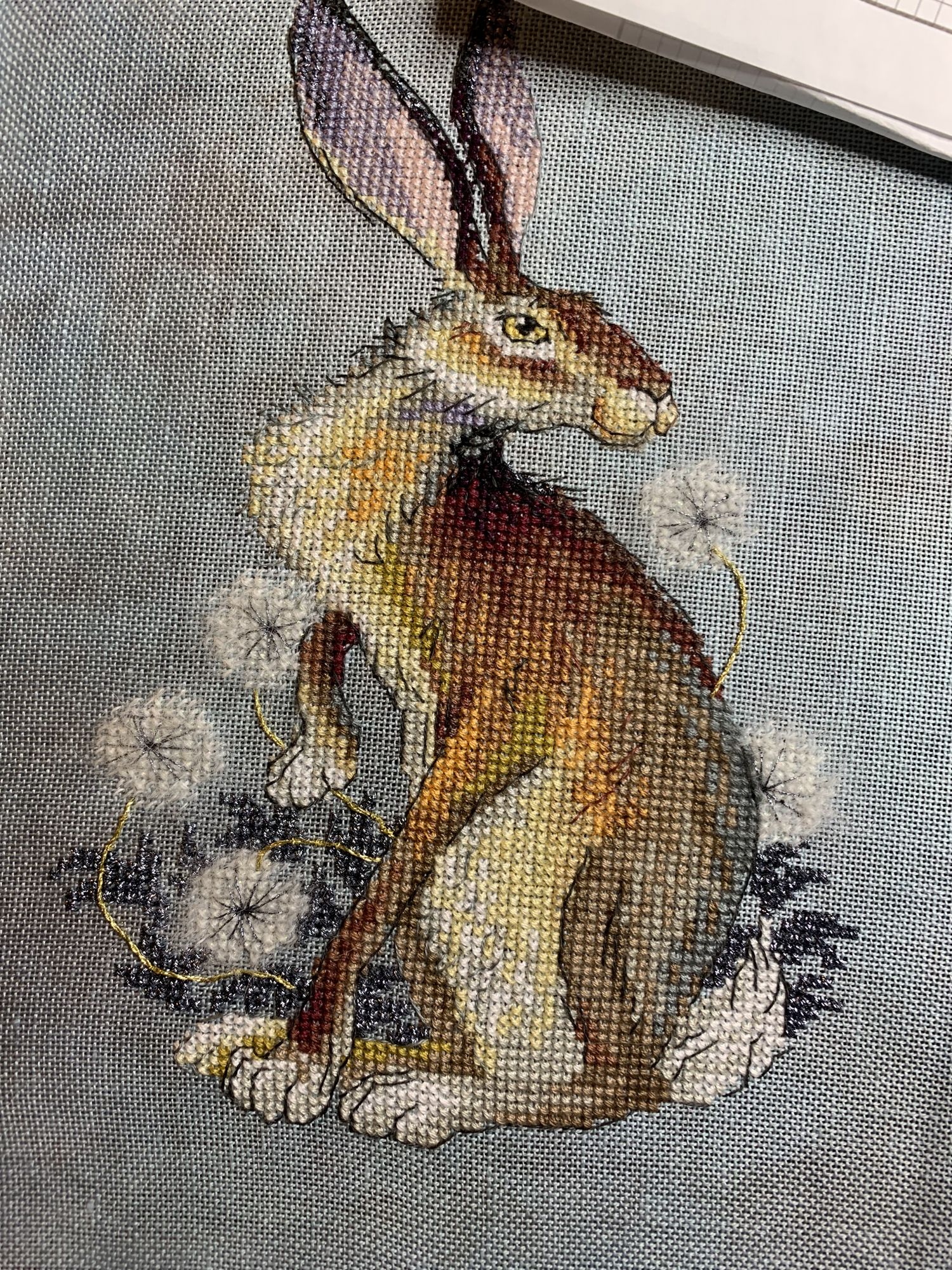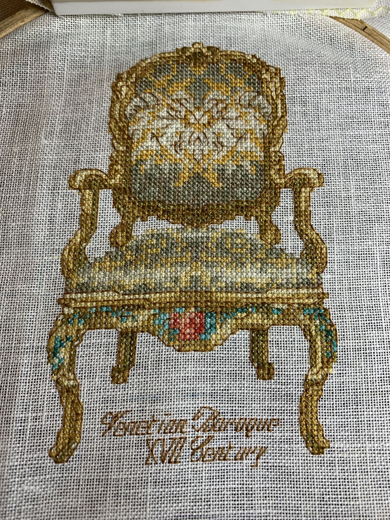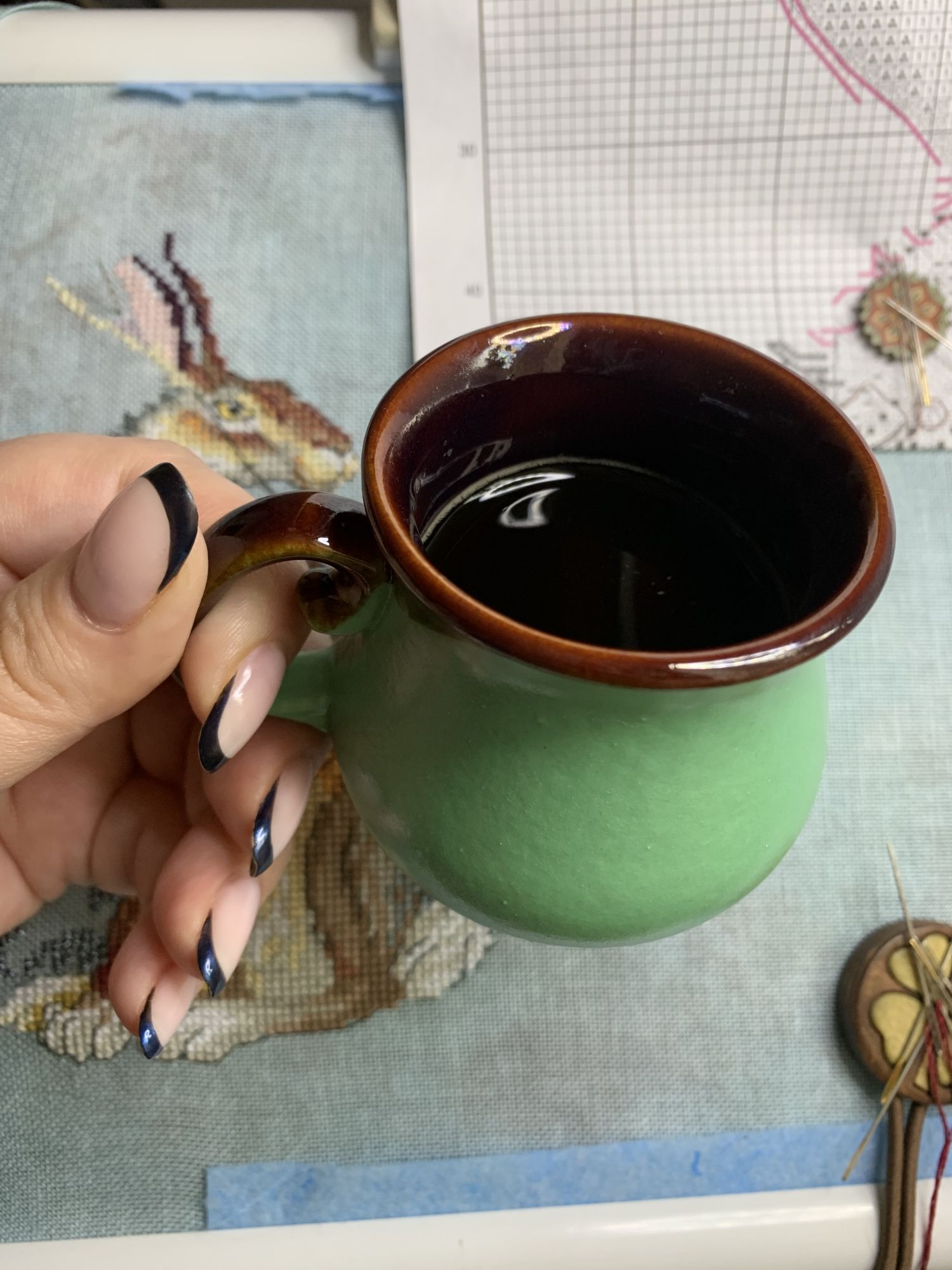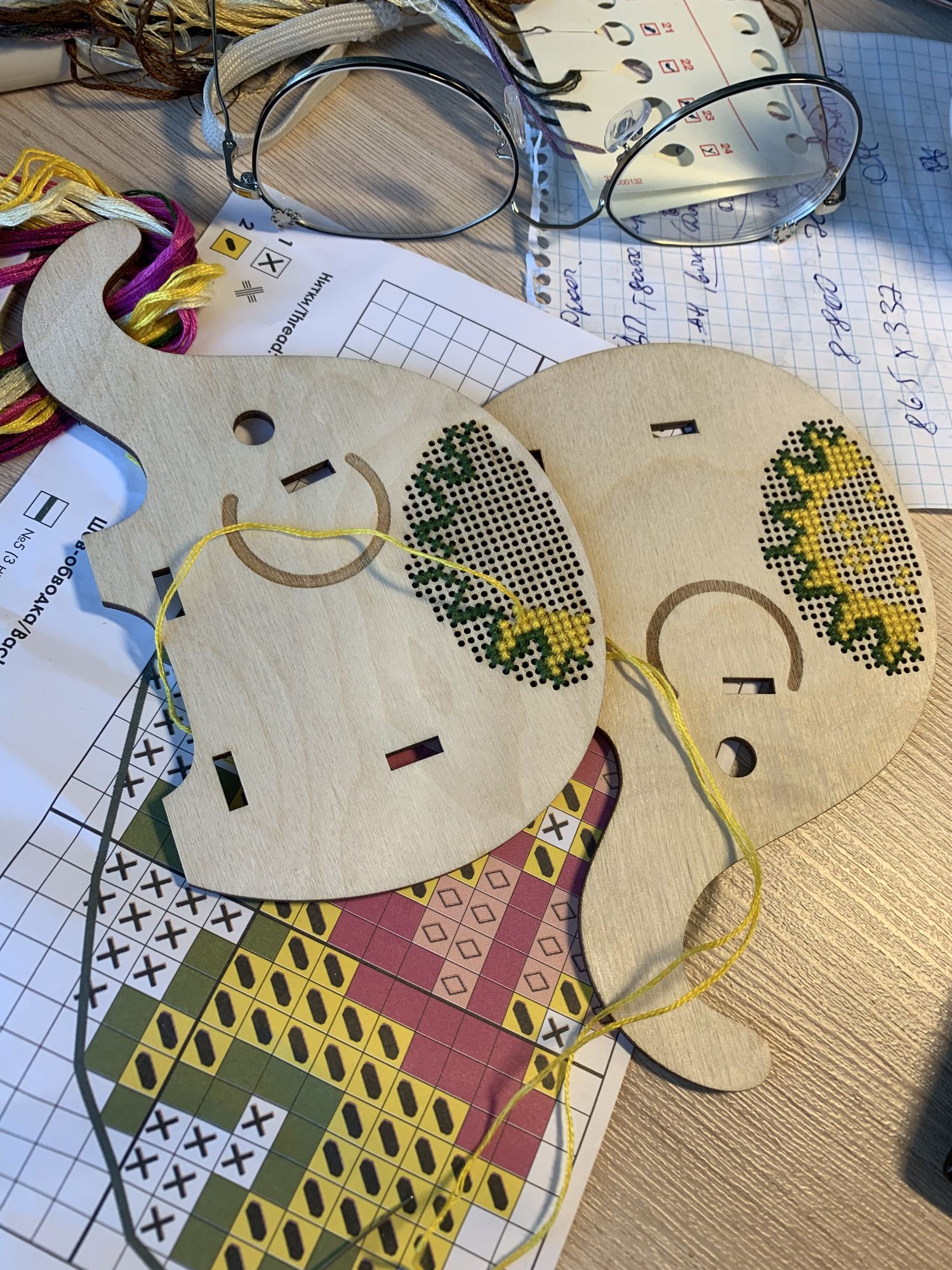18 июня 2020 Продолжим тогда) 1. Закончилась моя столярная эпопея в Робине. Ох, даже номер уже не помню, но помню, что мне оставалось вышить 1,5 стула. Золотой стул полностью: а вот у этого половина нижняя: Тяжело шьются и схема неудобная немного - глаза в кучу всегда. Так "наигралась" с ними, что отложила в сторону, даже не постирав. Возможно, этому поспособствовало еще то, что пробные 3 рамки, что покупались под них (не знаю, как я так мерила все) - оказались малы....и с этим теперь надо что то делать) 2. На одном дыхании отшилась косметичка, что мне когда то давным-давно дарила наша Цыпуля) 3. "Дело было в январе" закончилось гораздо раньше, даже января не ждали)) забавный зритель, что мешался периодически и лез под руку. Морда недовольная, т.к. я ее настоятельно прошу покинуть мое поле зрение и дать маленько повышивать: Ну и финальная часть: 4. Этот набор от RTO купила на ФР осенней, как и отрез ткани, на которой решила его вышить. Процесс начала снизу: Почему то не нравился такой контрастный черный бэк, что решила его заменить на угольный черный и взяла для этих целей нить DMC 3799. На фото можно разницу посмотреть (если увидите))): сверху - черный, снизу - 3799. Мой внутренний перфекционист остался довольным и продолжил шить дальше: кофе-брейк из чашечки, что также на ФР осенней приобрела. Продолжаем: категорически не понравились те одуванчики, что были предложены, поэтому исправляла, как мне казалось органично что ль: а так предлагалось в дизайне: Использовала Whisper для основы одуванчика, немного крейника 32 и золотая нить от DMC. Правый верхний одуван не стала делать, как и зонтики от одуванчика. Итогом довольна. Мне кажется так как то гармоничней что ли. На основе осталось еще место, под которое я планировала вышить еще стрекозу - ту же новинку от РТО. irisheckin, ture, Кисуля и 23 других сказали спасибо Поделиться сообщением Ссылка на сообщение
