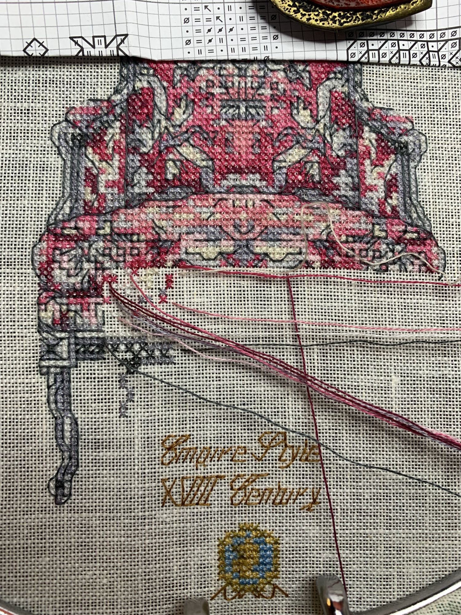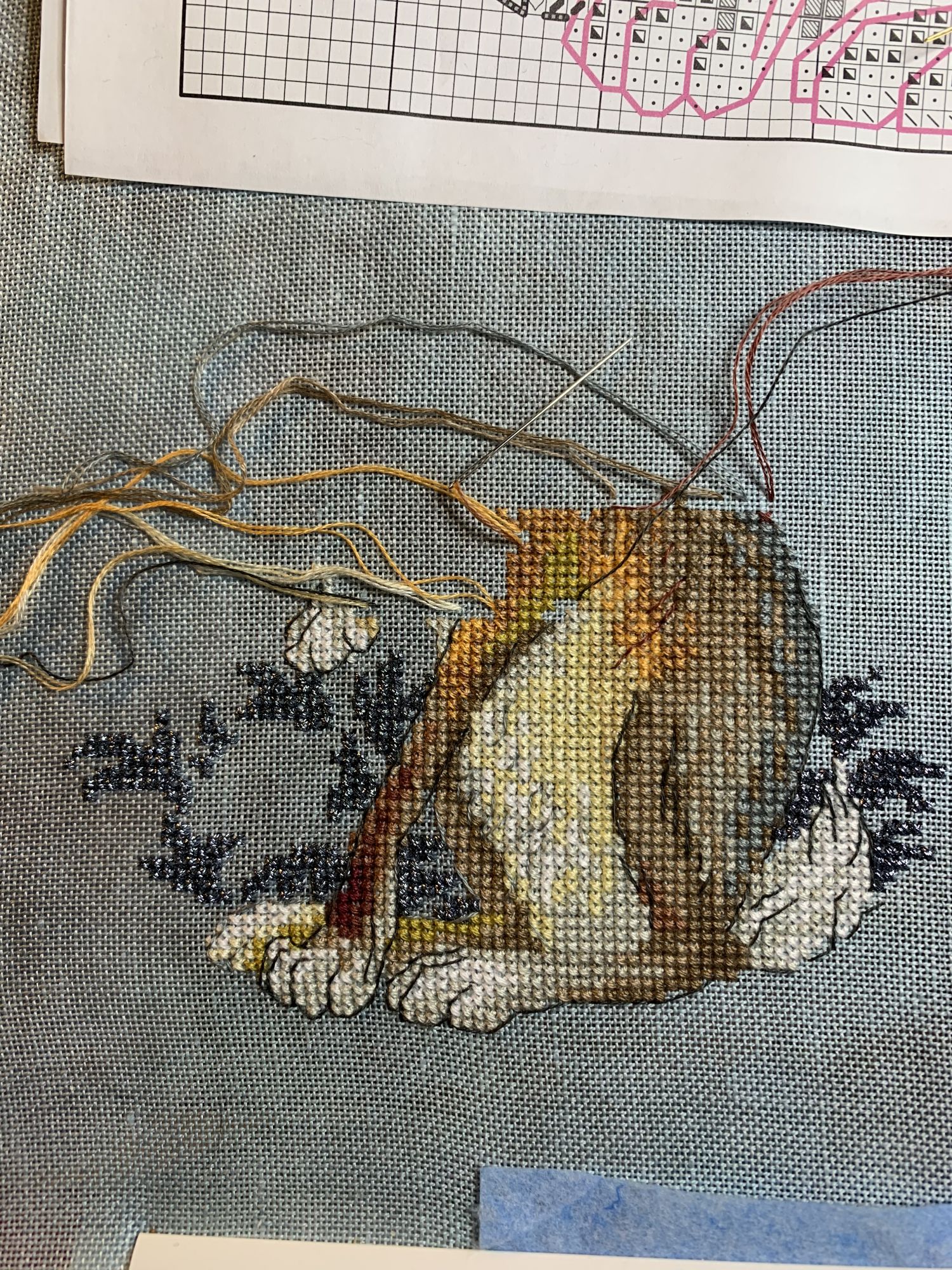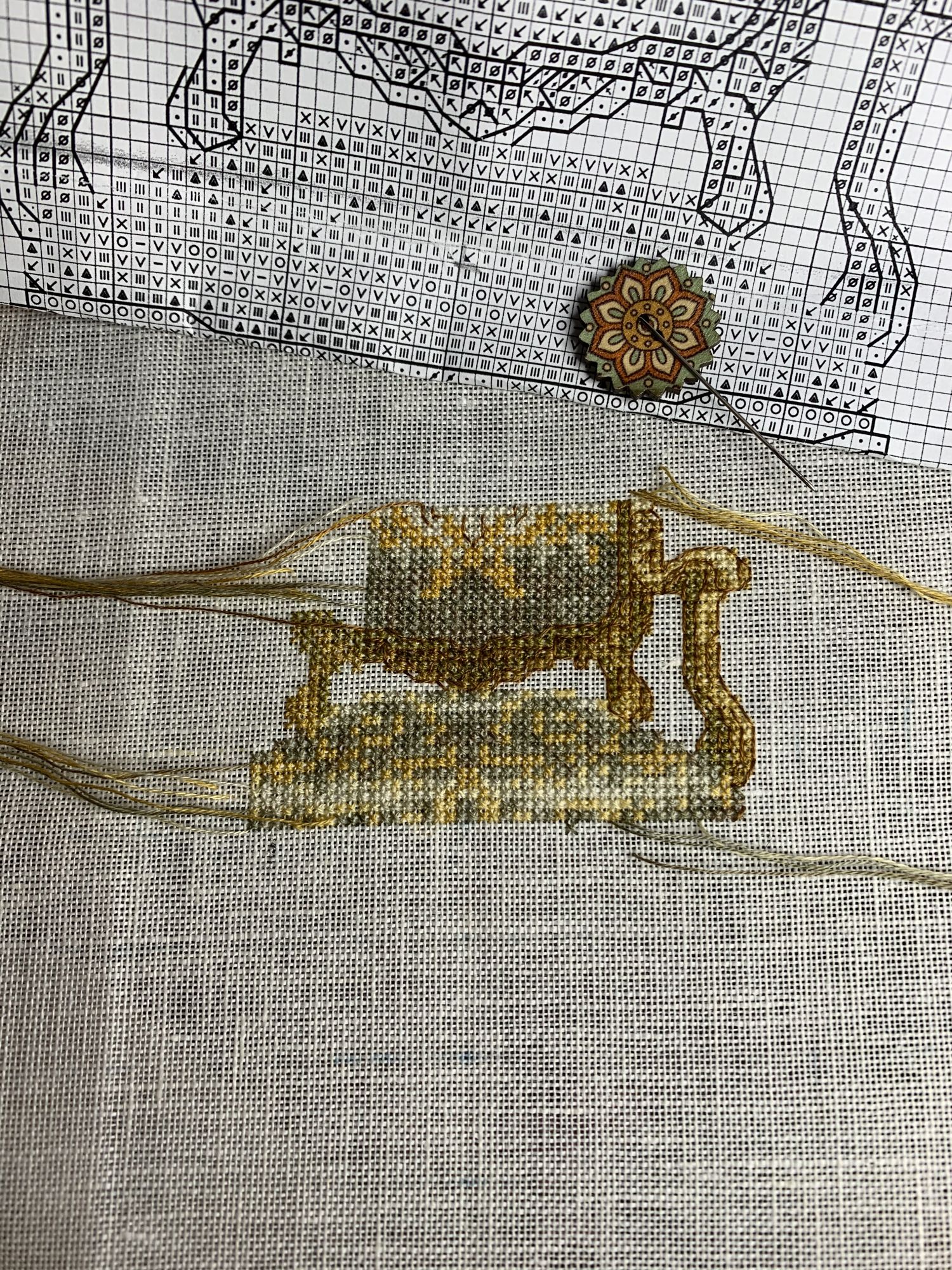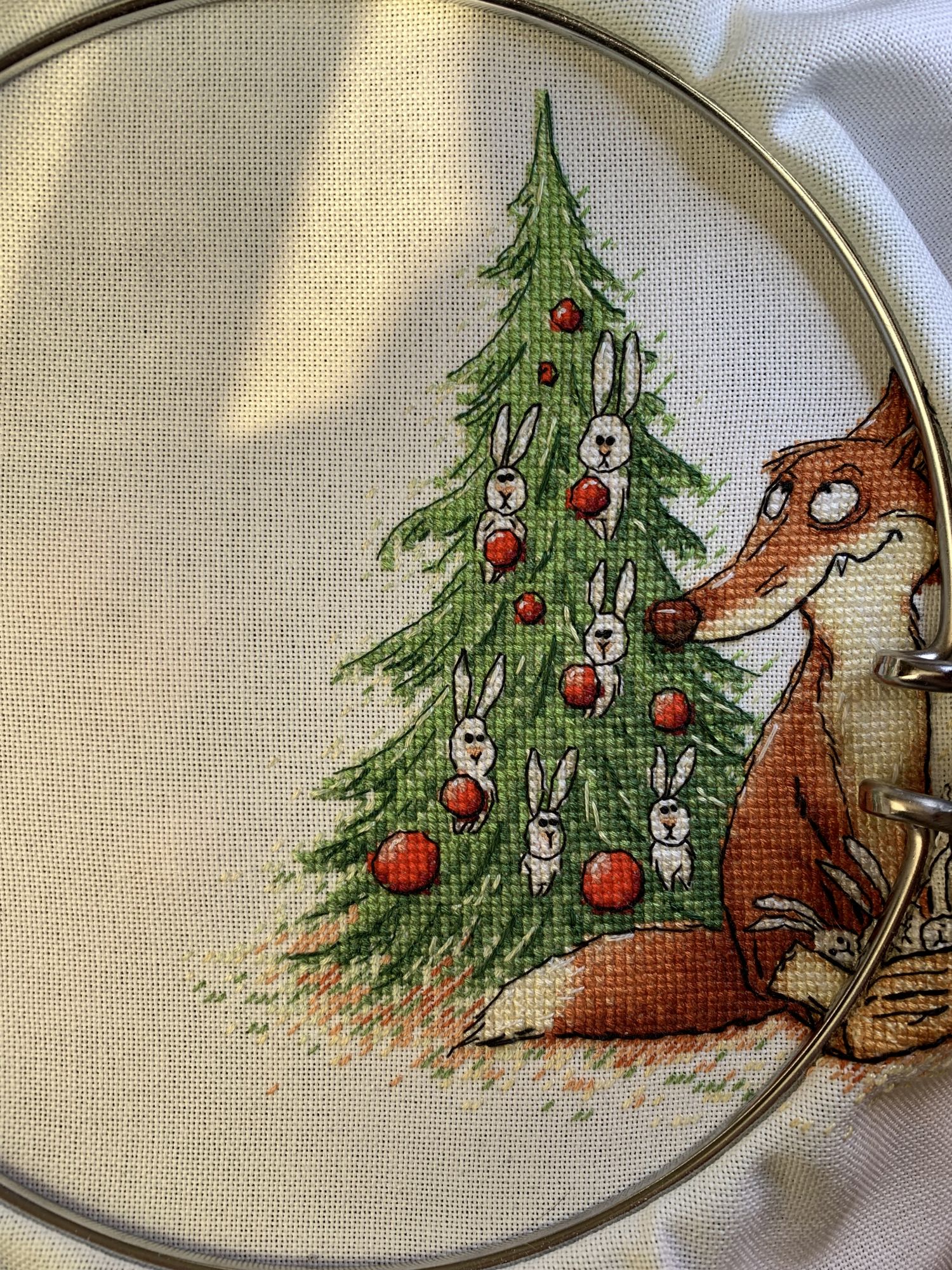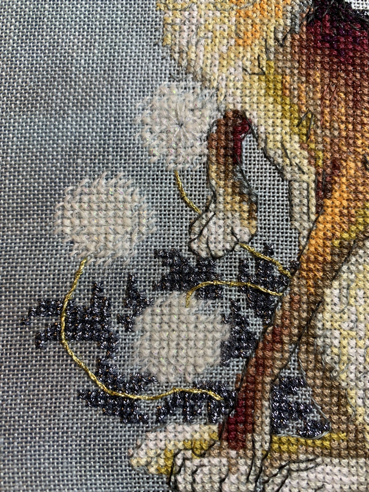 18 июня 2020 Продолжим тогда) 1. Закончилась моя столярная эпопея в Робине. Ох, даже номер уже не помню, но помню, что мне оставалось вышить 1,5 стула. Золотой стул полностью: а вот у этого половина нижняя: Тяжело шьются и схема неудобная немного - глаза в кучу всегда. Так "наигралась" с ними, что отложила в сторону, даже не постирав. Возможно, этому поспособствовало еще то, что пробные 3 рамки, что покупались под них (не знаю, как я так мерила все) - оказались малы....и с этим теперь надо что то делать) 2. На одном дыхании отшилась косметичка, что мне когда то давным-давно дарила наша Цыпуля) 3. "Дело было в январе" закончилось гораздо раньше, даже января не ждали)) забавный зритель, что мешался периодически и лез под руку. Морда недовольная, т.к. я ее настоятельно прошу покинуть мое поле зрение и дать маленько повышивать: Ну и финальная часть: 4. Этот набор от RTO купила на ФР осенней, как и отрез ткани, на которой решила его вышить. Процесс начала снизу: Почему то не нравился такой контрастный черный бэк, что решила его заменить на угольный черный и взяла для этих целей нить DMC 3799. На фото можно разницу посмотреть (если увидите))): сверху - черный, снизу - 3799. Мой внутренний перфекционист остался довольным и продолжил шить дальше: кофе-брейк из чашечки, что также на ФР осенней приобрела. Продолжаем: категорически не понравились те одуванчики, что были предложены, поэтому исправляла, как мне казалось органично что ль: а так предлагалось в дизайне: Использовала Whisper для основы одуванчика, немного крейника 32 и золотая нить от DMC. Правый верхний одуван не стала делать, как и зонтики от одуванчика. Итогом довольна. Мне кажется так как то гармоничней что ли. На основе осталось еще место, под которое я планировала вышить еще стрекозу - ту же новинку от РТО. irisheckin, ture, Кисуля и 23 других сказали спасибо Поделиться сообщением Ссылка на сообщение