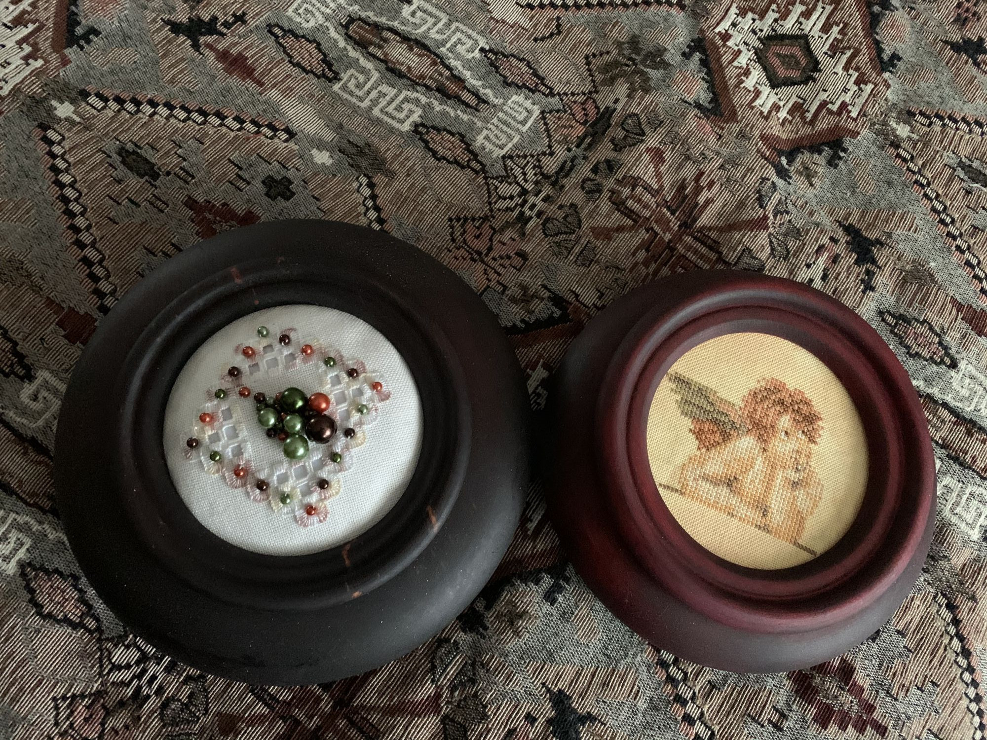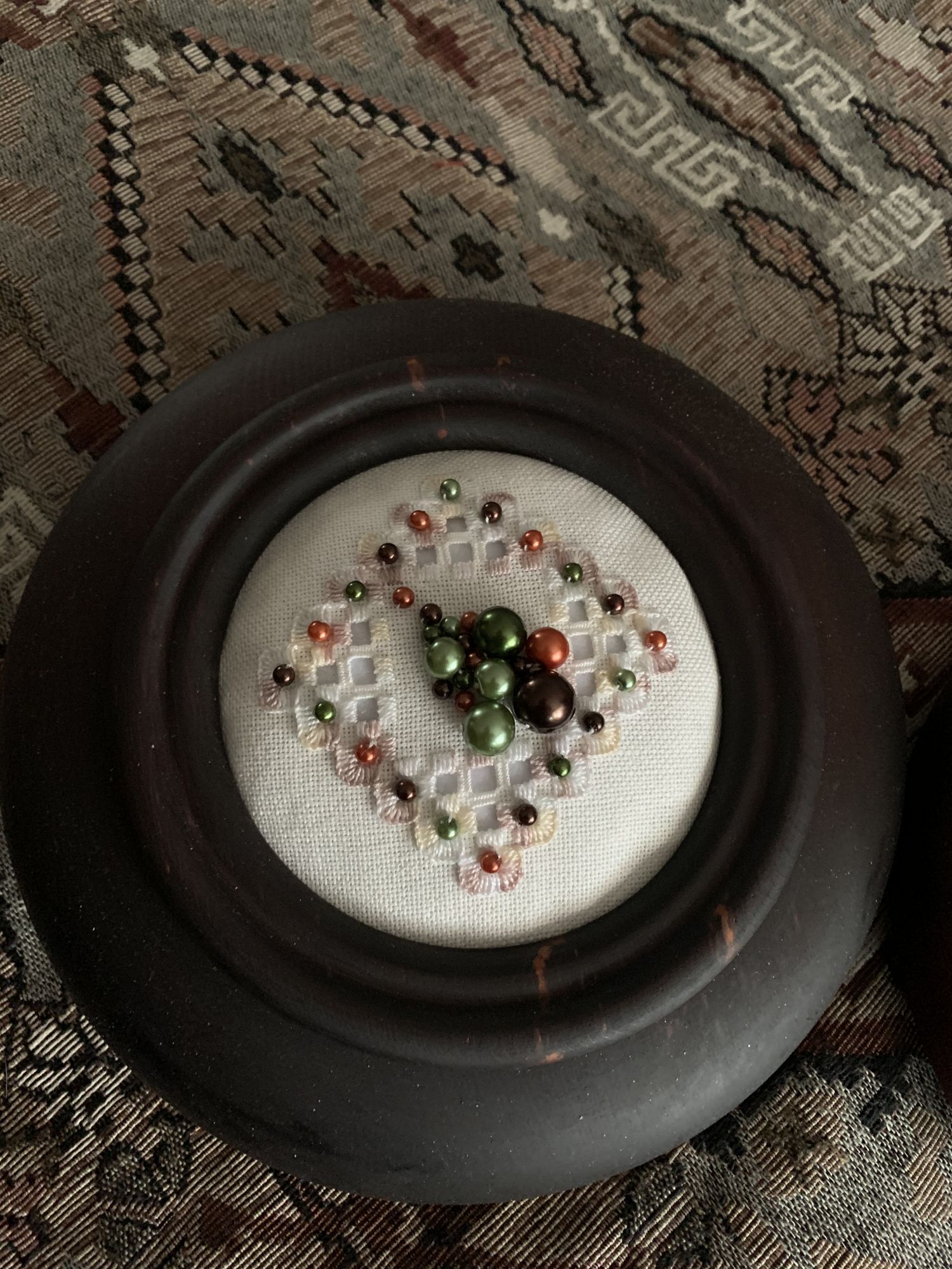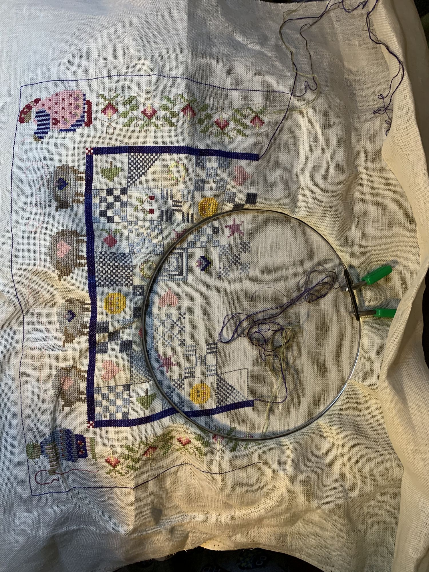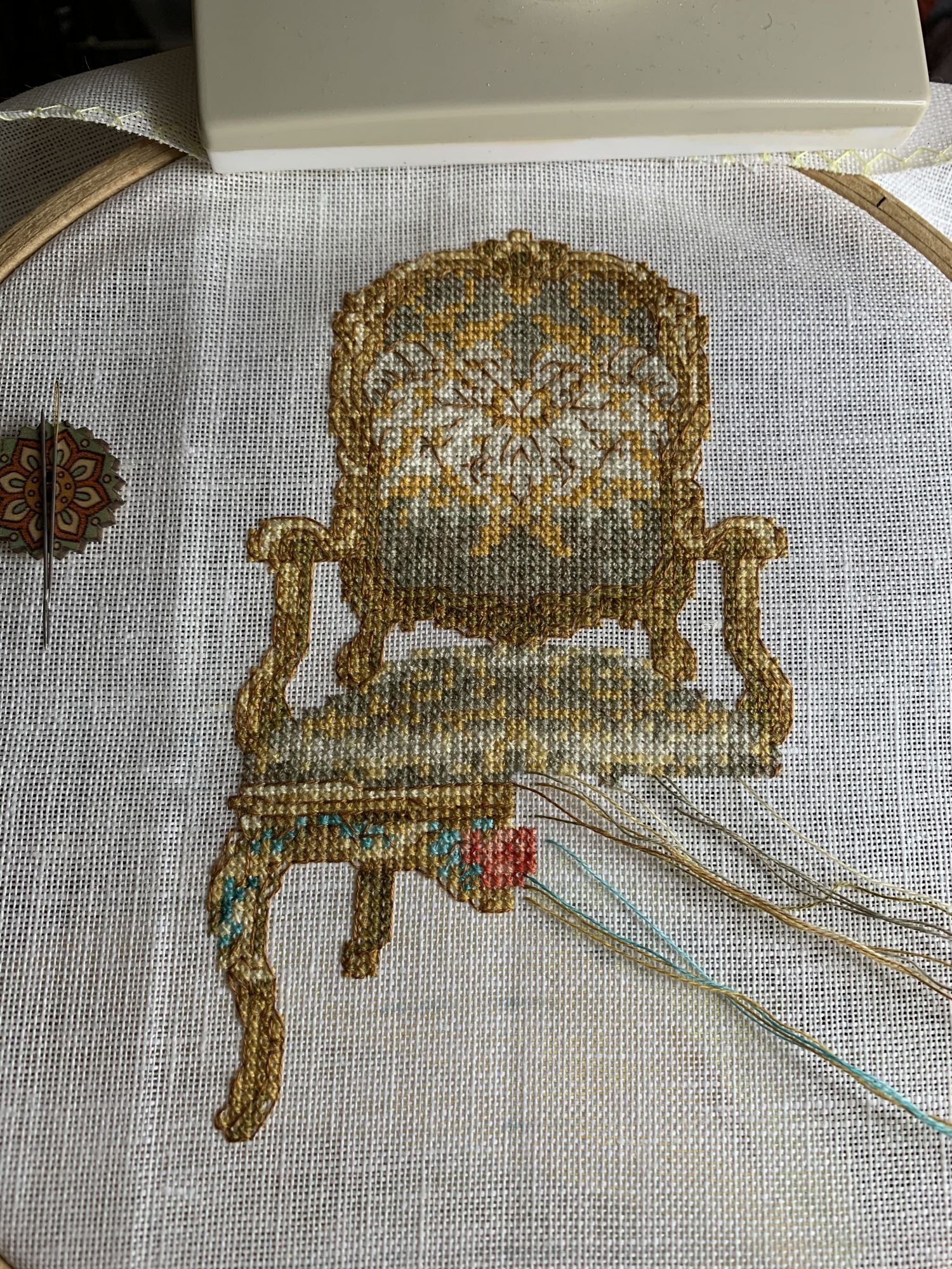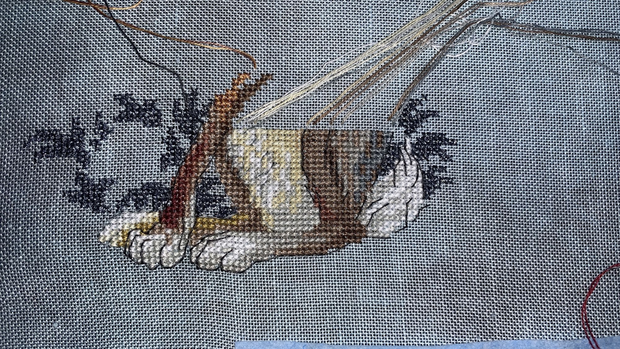 18 июня 2020 Продолжим тогда) 1. Закончилась моя столярная эпопея в Робине. Ох, даже номер уже не помню, но помню, что мне оставалось вышить 1,5 стула. Золотой стул полностью: а вот у этого половина нижняя: Тяжело шьются и схема неудобная немного - глаза в кучу всегда. Так "наигралась" с ними, что отложила в сторону, даже не постирав. Возможно, этому поспособствовало еще то, что пробные 3 рамки, что покупались под них (не знаю, как я так мерила все) - оказались малы....и с этим теперь надо что то делать) 2. На одном дыхании отшилась косметичка, что мне когда то давным-давно дарила наша Цыпуля) 3. "Дело было в январе" закончилось гораздо раньше, даже января не ждали)) забавный зритель, что мешался периодически и лез под руку. Морда недовольная, т.к. я ее настоятельно прошу покинуть мое поле зрение и дать маленько повышивать: Ну и финальная часть: 4. Этот набор от RTO купила на ФР осенней, как и отрез ткани, на которой решила его вышить. Процесс начала снизу: Почему то не нравился такой контрастный черный бэк, что решила его заменить на угольный черный и взяла для этих целей нить DMC 3799. На фото можно разницу посмотреть (если увидите))): сверху - черный, снизу - 3799. Мой внутренний перфекционист остался довольным и продолжил шить дальше: кофе-брейк из чашечки, что также на ФР осенней приобрела. Продолжаем: категорически не понравились те одуванчики, что были предложены, поэтому исправляла, как мне казалось органично что ль: а так предлагалось в дизайне: Использовала Whisper для основы одуванчика, немного крейника 32 и золотая нить от DMC. Правый верхний одуван не стала делать, как и зонтики от одуванчика. Итогом довольна. Мне кажется так как то гармоничней что ли. На основе осталось еще место, под которое я планировала вышить еще стрекозу - ту же новинку от РТО. irisheckin, ture, Кисуля и 23 других сказали спасибо Поделиться сообщением Ссылка на сообщение