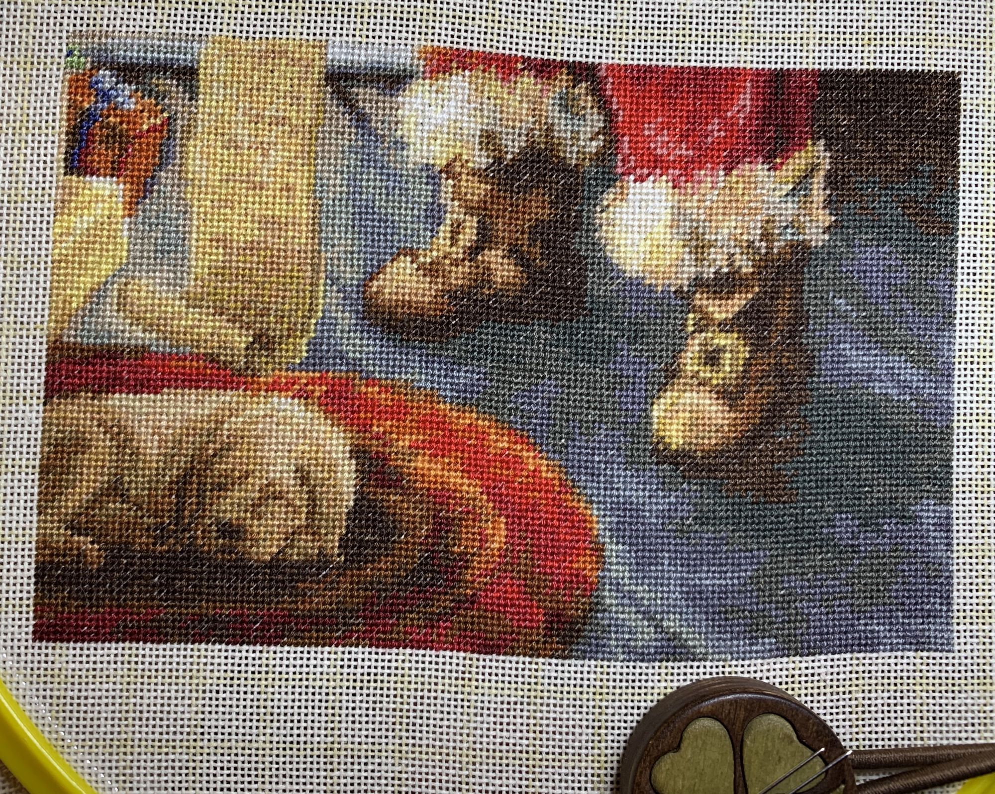 15 июня 2020 Также позеленим гайку! в этом году (весной) закончила ещё один зимний сюжет, аккурат перед деревушкой. Санта от Лука-с! Длинный отрезок в 2 года мучила низ этой работы. Пыталась гобелен шить квадратами с ленивой парковкой, т.к. цветов очень много в работе и боялась ошибиться. В итоге, тратила много времени почему то. где то с этой отметки работы полностью сменила тактику вышивки и процесс полетел! Перестала организовывать лианы свисающих игл с нитками и перешла на маркерный вандализм схемы) финальный выход пришелся на 9 мая - шила только венок и мне показалось это так символично, ведь можно представить издалека, что на венке георгиевская ленточка и меняется вся суть. Ниток осталось просто тьма! (у кого-нить есть карта анкоровских ниток? а то рука не поднимается выкинуть просто так столько цветов) IrnKA, tavenir, Lenara и 24 других сказали спасибо Поделиться сообщением Ссылка на сообщение