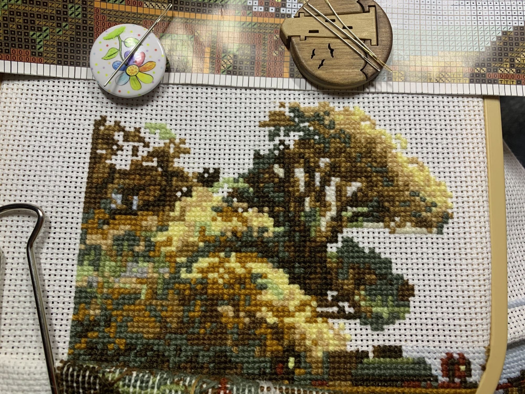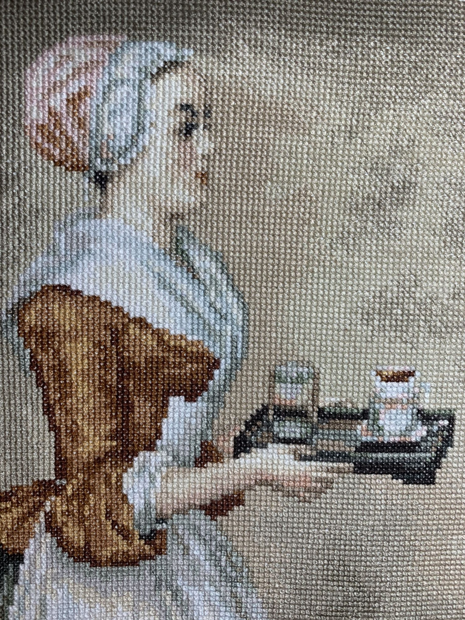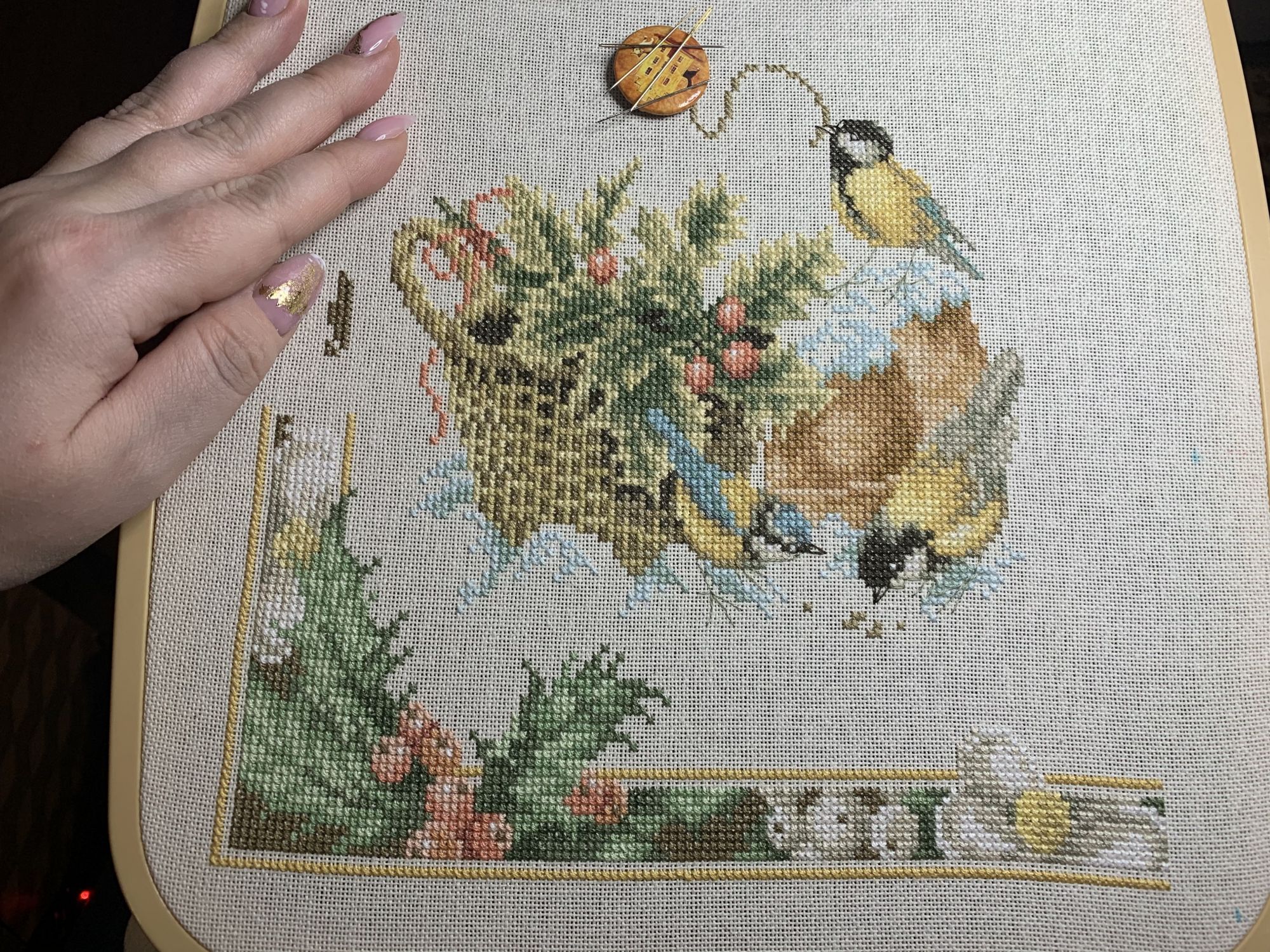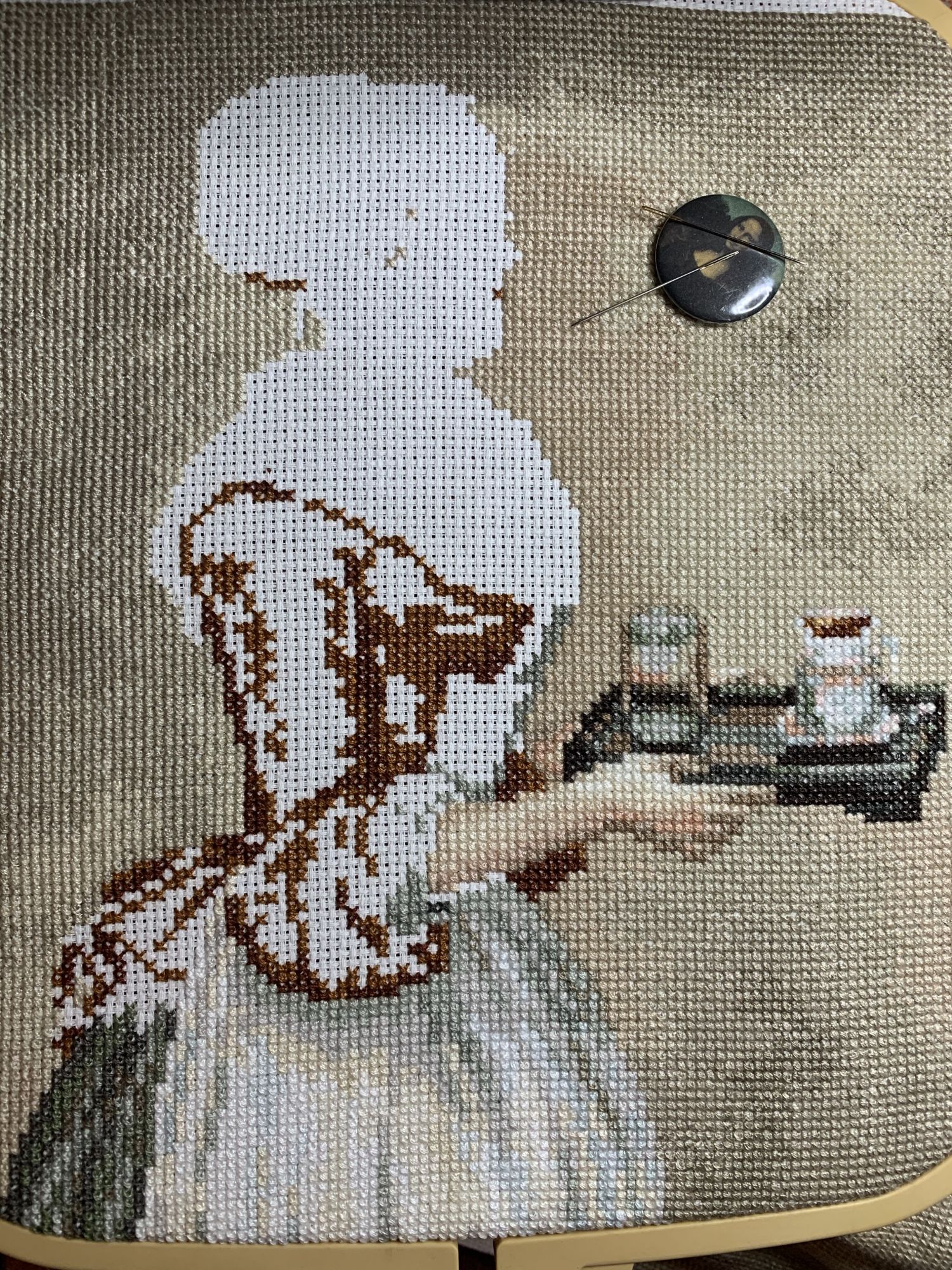 9 марта 2021 Приветствую! Часть 2. Продолжаю тащить накопившееся) 1. Давно уже хожу облизываюсь на разного рода сапоги, даже в закромах имею несколько представителей оных. Но вот начать и сделать – не доходили пока руки. Пока не столкнулась со спонтанной покупкой в виде сапога от Dimensions 8854 Enchanted Ornament Stocking. Благо шли активно новогодние праздники и было время залипнуть над вкусным димовским бэком)) Удовольствие испытываю от каждого подхода) коих за период случилось уже 2. Показываю с самого начала, т.к. нет еще гайки на него. Касательно комплектации китайской – чет возмущена я объемом канвы, что вложено было в набор. Видимо, запас минимальный и за пяльцы цепляться зубами предполагалось. 2. Ну, а этот процесс – битый и избитый, пожалуй. Кем? Да, нами с Цыпой. Помнится, купили мы с ней по этому набору в какую-то акции, на заре вышивальной жизни и так и подбивали начать его друг друга. В общем, мне в очередной раз напомнили о нем, но уже с фразой, что вряд ли мы уже начнем их вообще…и дальше сыграло «ах, таааак!» и я начала его) Набор от Dimensions 3243 Watering Cons или, как у нас его знают – «те самые лейки». Теперь понятно, чего откладывала. Да уж, случай с собакой еще не зарастил мои душевные раны от печатного креста и шилось тяжко. Но начало положено, пусть дальше теперь отлеживается, пока моя совесть не наберет очков по ней и не потянутся ручки. К красным гайкам я стала абсолютно спокойна)) 3. Спонтанный сюжет, который был таковым года 3-4 назад. Спонтанно нашелся, спонтанно купилась основа, а главное – повод нашла и одариваемого. Но все никак. А тут взяла и…очень быстро вышила этот милый сердцу сюжет в подарок мужу. Схема от Анастасии Малковой «Жил-был пес». (это не финальное оформление, а только прикидка). 4. В прошлом году было мое первое знакомство с кругами Клейтона и мне очень понравилось все, начиная от сюжета, и заканчивая разработкой от Heritage. Поэтому останавливаться не хотелось и были совсем уж косметические вопросы: какой выбрать сюжет из той вкусной массы, что есть; по схеме шить подбором или набором… в Лавке желаний приобрела тестово 2 кружка – уж больно цена аппетитна была. Ну и начала один из: Берег реки (Heritage HC310). Мое мнение: очень удобный органайзер представлен, но качество основы и некоторых нитей мне не зашли. Но дошивать буду, как и 2ой кружок. 5. Куда ж я без любимого Риолиса)) Иногда, украдкой, шью «Пейзаж с повозкой» - очень нравятся мне эти старенькие наборы у них, даже эта нарезка нитей пучками, в которой я нашла так много плюсов) 6. Ланарте Коллаж – закончила зимний сюжетик. За окном весна началась, а это значит, что пора уже и на весну переключаться. Надеюсь, скоро дойдут ручки до него. А пока немного фото процесса зимнего. 7. И снова Риолис! Но не шерсть) моя любовь-любовь в виде Шоколадницы! Многие думали, что шить я ее буду также, как и Моню или Даму с горностаем (коя также по уровень груди лежит в углу где то), но нет. Таки я ее вышила)) Когда выбирала набор, то сомнения меня гложили немного по поводу качества проработки. Казалось, что пиксельно слишком и нет той загадачной красоты в отражении чашек. Но по окончании взглянула на работу со стороны и сомнения развеялись - работа нравится во всем! А что «плохо» видно, то воображение само дорисовало)) Как и многие, добавляла ряды сверху, чтобы расширить границы. Впереди еще 1 старый процесс из прошлого года уже и новинка