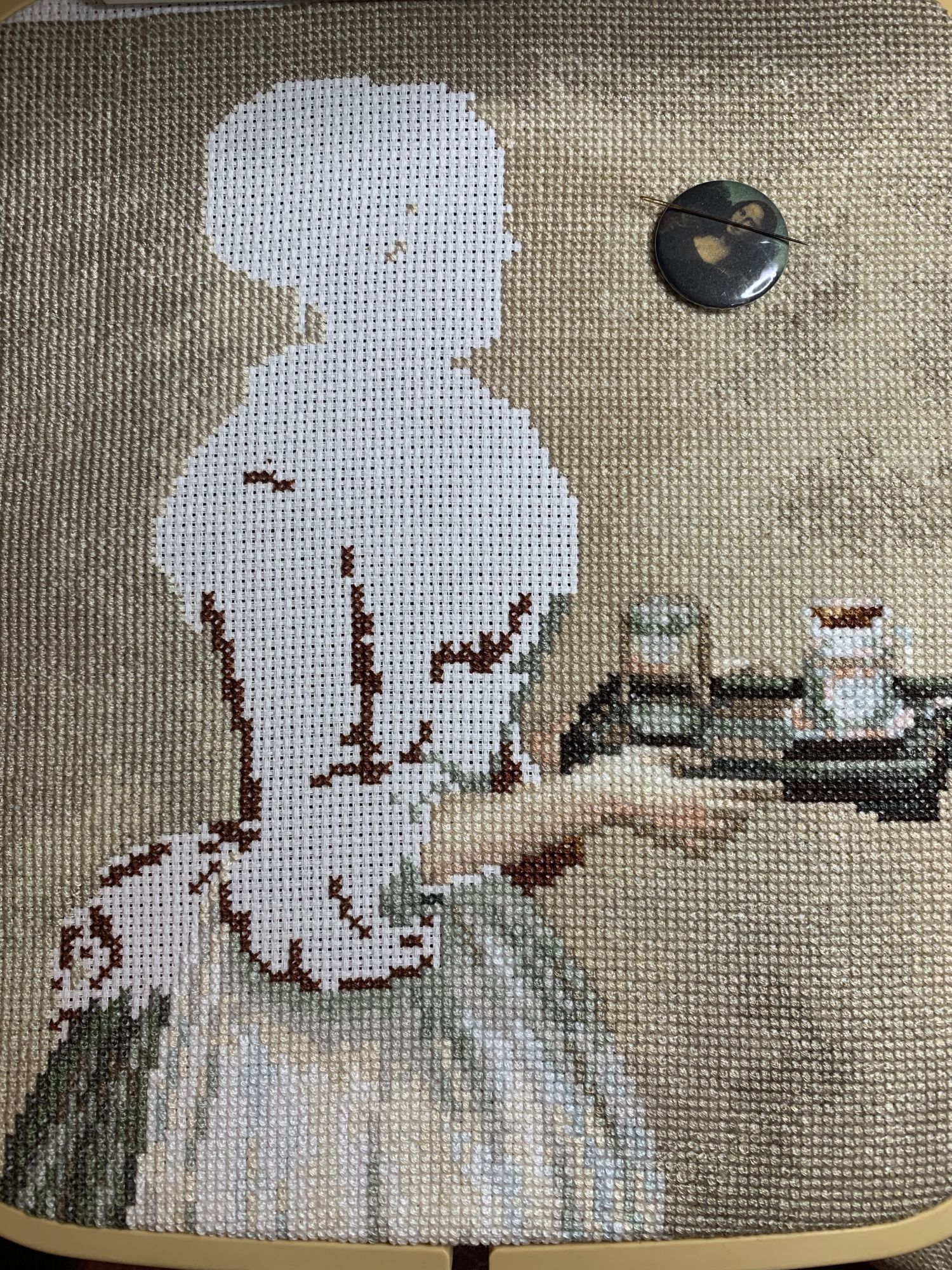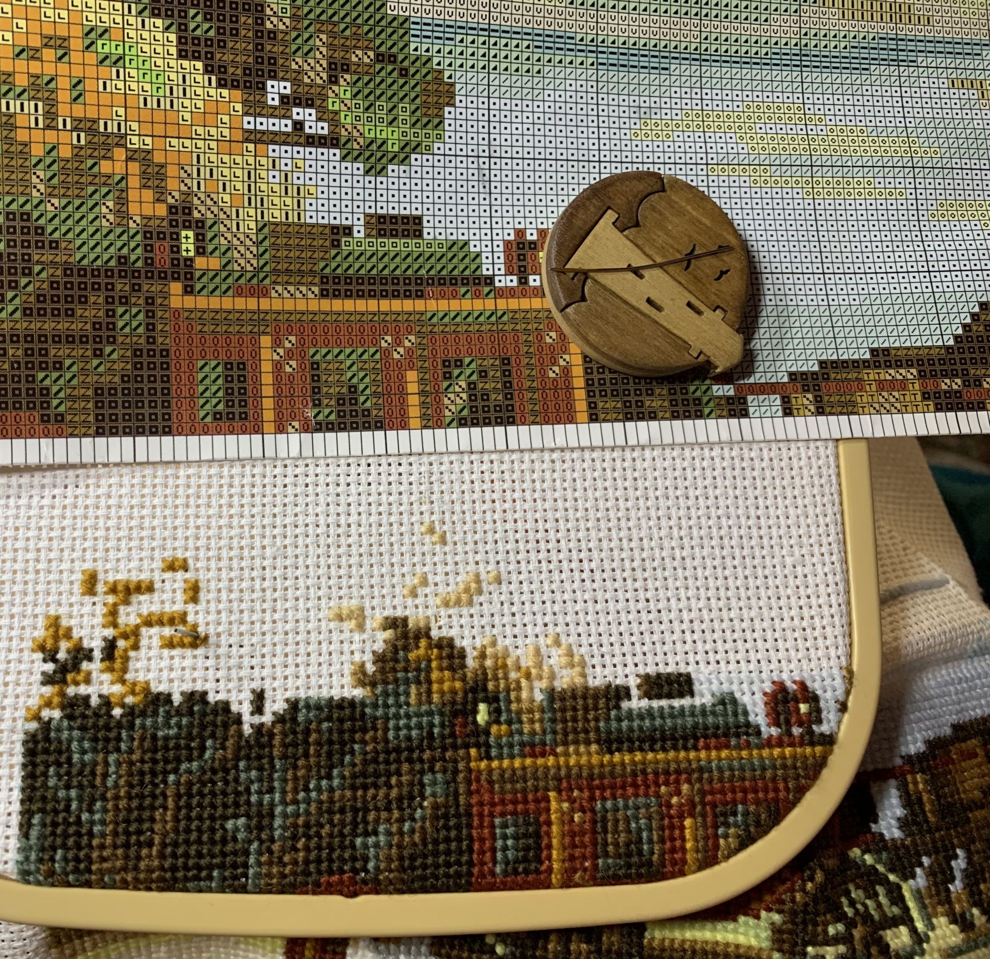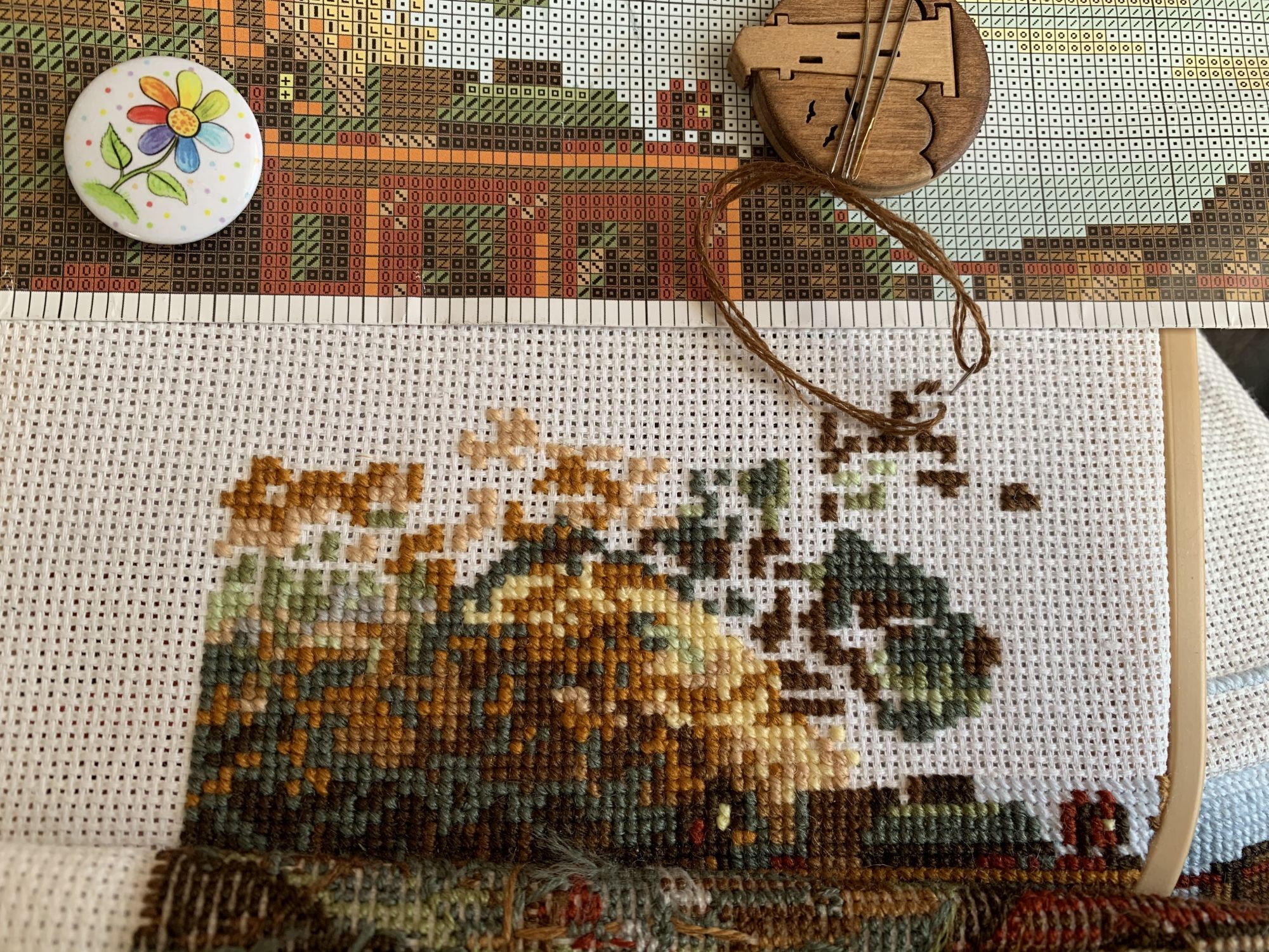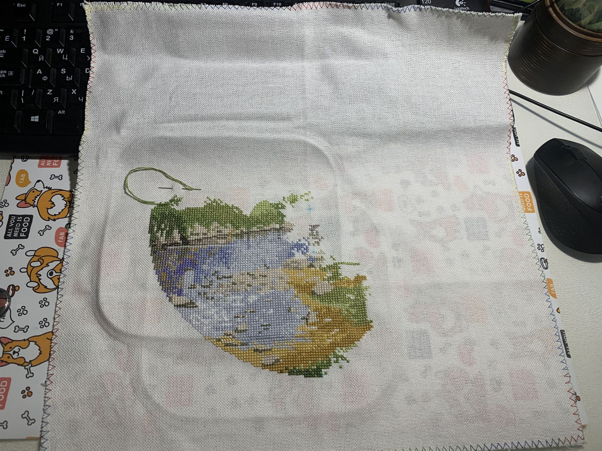 9 марта 2021 Приветствую! Часть 2. Продолжаю тащить накопившееся) 1. Давно уже хожу облизываюсь на разного рода сапоги, даже в закромах имею несколько представителей оных. Но вот начать и сделать – не доходили пока руки. Пока не столкнулась со спонтанной покупкой в виде сапога от Dimensions 8854 Enchanted Ornament Stocking. Благо шли активно новогодние праздники и было время залипнуть над вкусным димовским бэком)) Удовольствие испытываю от каждого подхода) коих за период случилось уже 2. Показываю с самого начала, т.к. нет еще гайки на него. Касательно комплектации китайской – чет возмущена я объемом канвы, что вложено было в набор. Видимо, запас минимальный и за пяльцы цепляться зубами предполагалось. 2. Ну, а этот процесс – битый и избитый, пожалуй. Кем? Да, нами с Цыпой. Помнится, купили мы с ней по этому набору в какую-то акции, на заре вышивальной жизни и так и подбивали начать его друг друга. В общем, мне в очередной раз напомнили о нем, но уже с фразой, что вряд ли мы уже начнем их вообще…и дальше сыграло «ах, таааак!» и я начала его) Набор от Dimensions 3243 Watering Cons или, как у нас его знают – «те самые лейки». Теперь понятно, чего откладывала. Да уж, случай с собакой еще не зарастил мои душевные раны от печатного креста и шилось тяжко. Но начало положено, пусть дальше теперь отлеживается, пока моя совесть не наберет очков по ней и не потянутся ручки. К красным гайкам я стала абсолютно спокойна)) 3. Спонтанный сюжет, который был таковым года 3-4 назад. Спонтанно нашелся, спонтанно купилась основа, а главное – повод нашла и одариваемого. Но все никак. А тут взяла и…очень быстро вышила этот милый сердцу сюжет в подарок мужу. Схема от Анастасии Малковой «Жил-был пес». (это не финальное оформление, а только прикидка). 4. В прошлом году было мое первое знакомство с кругами Клейтона и мне очень понравилось все, начиная от сюжета, и заканчивая разработкой от Heritage. Поэтому останавливаться не хотелось и были совсем уж косметические вопросы: какой выбрать сюжет из той вкусной массы, что есть; по схеме шить подбором или набором… в Лавке желаний приобрела тестово 2 кружка – уж больно цена аппетитна была. Ну и начала один из: Берег реки (Heritage HC310). Мое мнение: очень удобный органайзер представлен, но качество основы и некоторых нитей мне не зашли. Но дошивать буду, как и 2ой кружок. 5. Куда ж я без любимого Риолиса)) Иногда, украдкой, шью «Пейзаж с повозкой» - очень нравятся мне эти старенькие наборы у них, даже эта нарезка нитей пучками, в которой я нашла так много плюсов) 6. Ланарте Коллаж – закончила зимний сюжетик. За окном весна началась, а это значит, что пора уже и на весну переключаться. Надеюсь, скоро дойдут ручки до него. А пока немного фото процесса зимнего. 7. И снова Риолис! Но не шерсть) моя любовь-любовь в виде Шоколадницы! Многие думали, что шить я ее буду также, как и Моню или Даму с горностаем (коя также по уровень груди лежит в углу где то), но нет. Таки я ее вышила)) Когда выбирала набор, то сомнения меня гложили немного по поводу качества проработки. Казалось, что пиксельно слишком и нет той загадачной красоты в отражении чашек. Но по окончании взглянула на работу со стороны и сомнения развеялись - работа нравится во всем! А что «плохо» видно, то воображение само дорисовало)) Как и многие, добавляла ряды сверху, чтобы расширить границы. Впереди еще 1 старый процесс из прошлого года уже и новинка