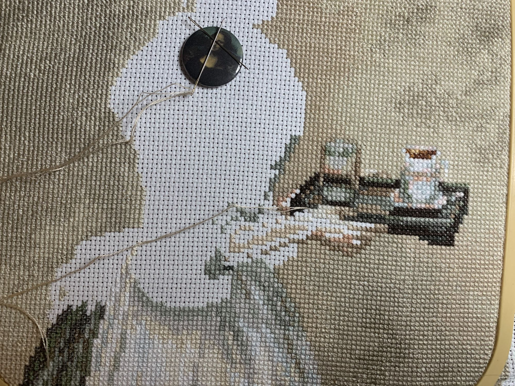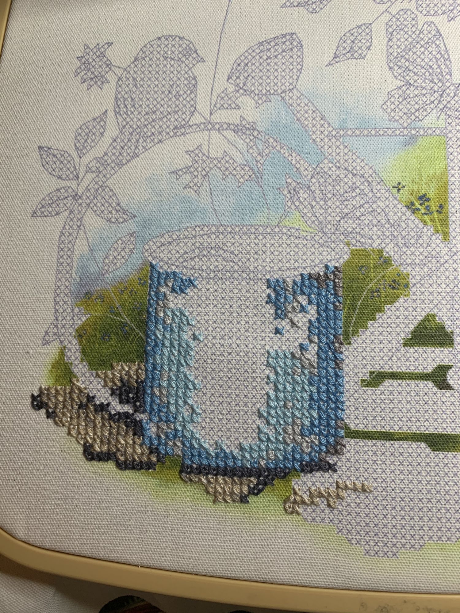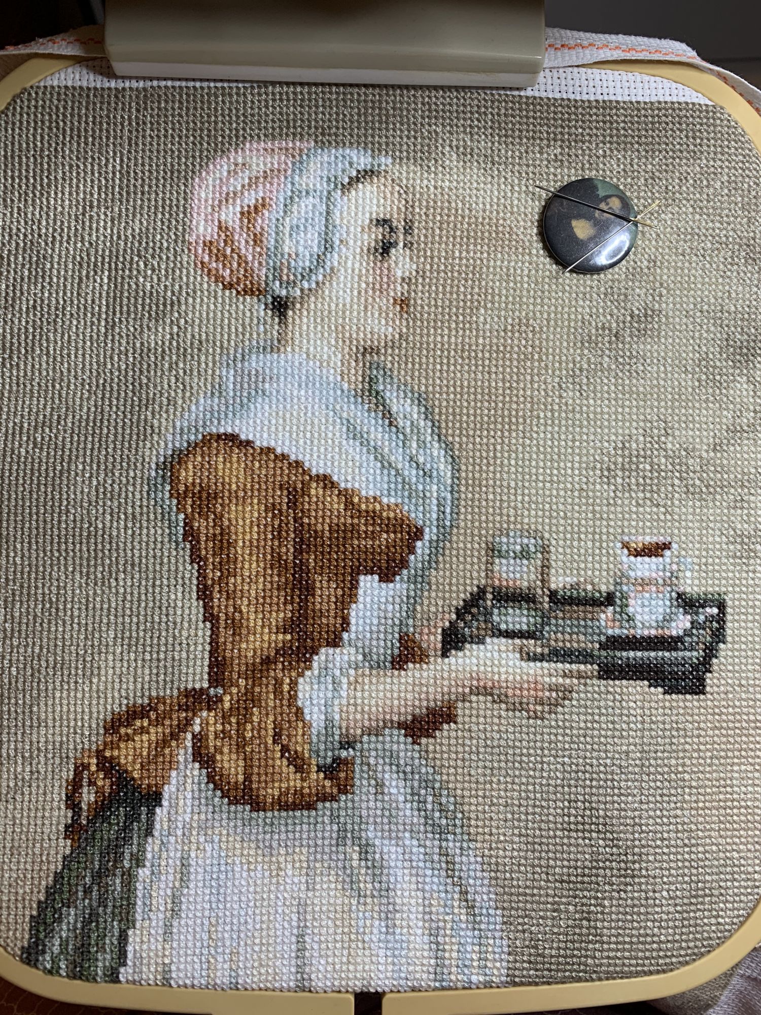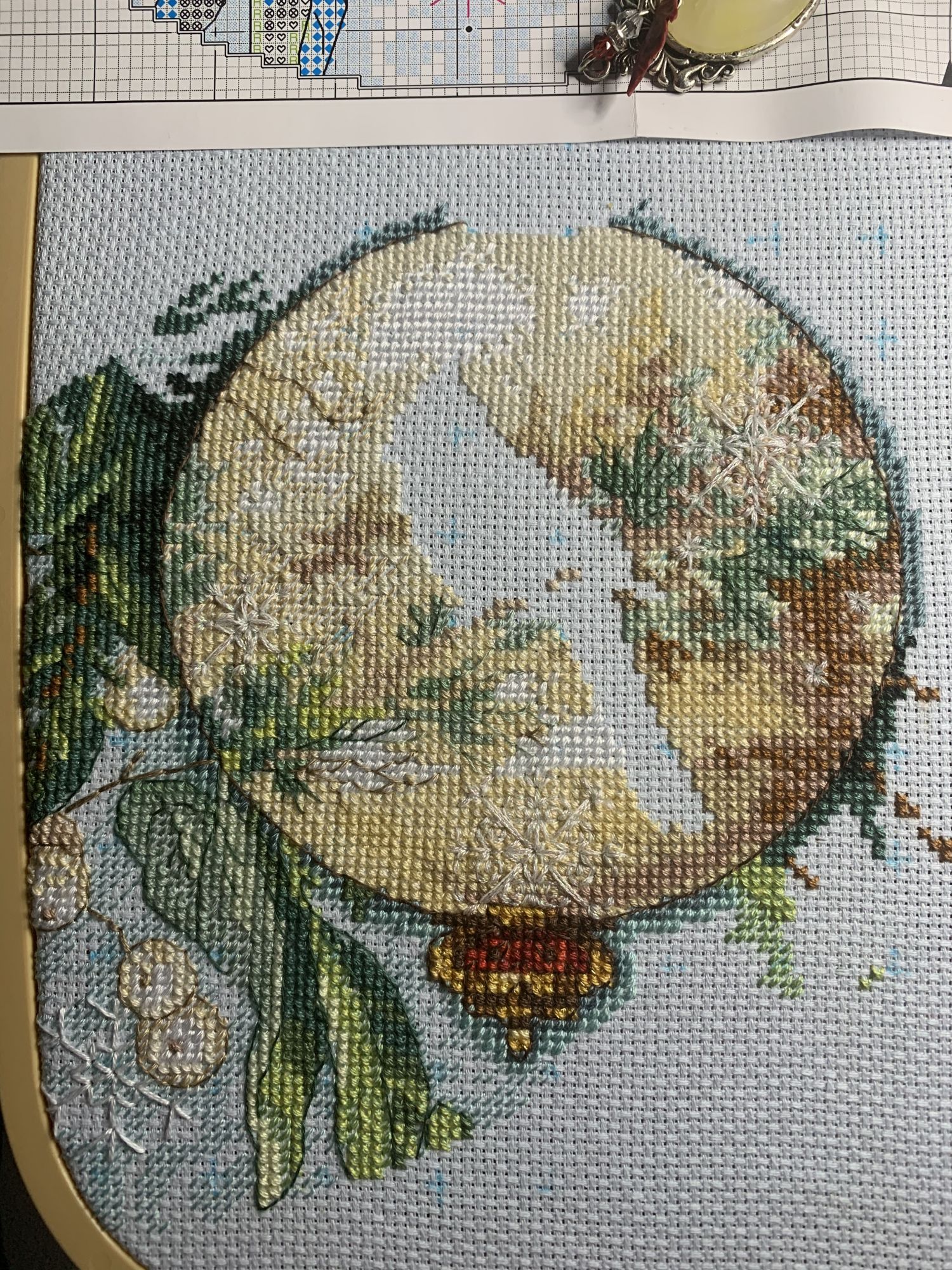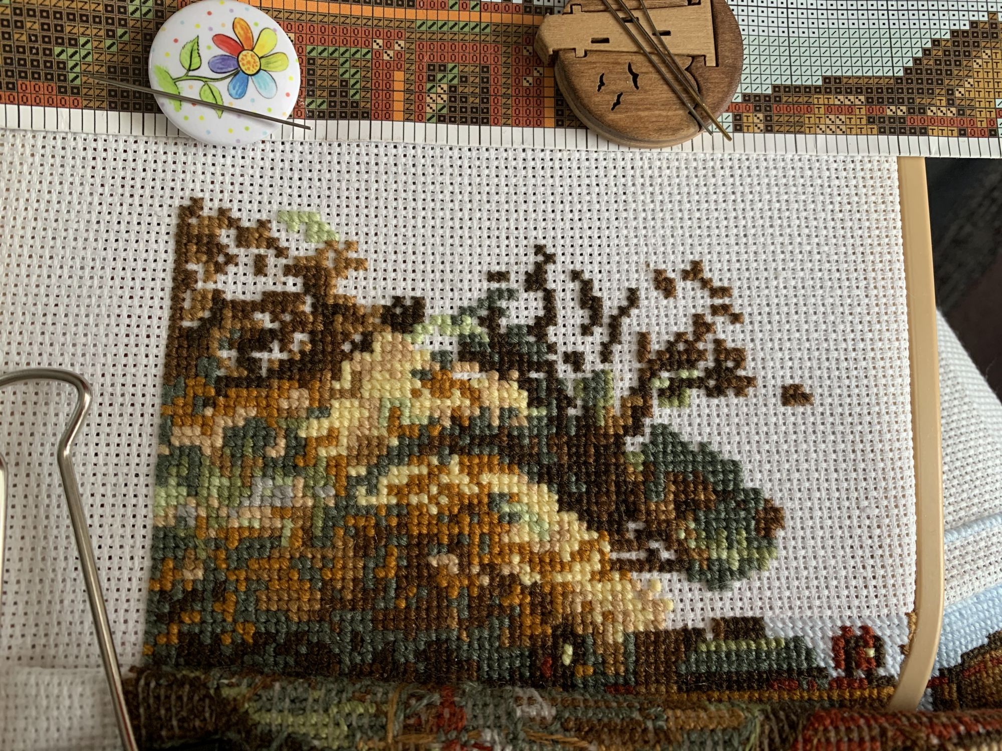9 марта 2021 Приветствую! Часть 2. Продолжаю тащить накопившееся) 1. Давно уже хожу облизываюсь на разного рода сапоги, даже в закромах имею несколько представителей оных. Но вот начать и сделать – не доходили пока руки. Пока не столкнулась со спонтанной покупкой в виде сапога от Dimensions 8854 Enchanted Ornament Stocking. Благо шли активно новогодние праздники и было время залипнуть над вкусным димовским бэком)) Удовольствие испытываю от каждого подхода) коих за период случилось уже 2. Показываю с самого начала, т.к. нет еще гайки на него. Касательно комплектации китайской – чет возмущена я объемом канвы, что вложено было в набор. Видимо, запас минимальный и за пяльцы цепляться зубами предполагалось. 2. Ну, а этот процесс – битый и избитый, пожалуй. Кем? Да, нами с Цыпой. Помнится, купили мы с ней по этому набору в какую-то акции, на заре вышивальной жизни и так и подбивали начать его друг друга. В общем, мне в очередной раз напомнили о нем, но уже с фразой, что вряд ли мы уже начнем их вообще…и дальше сыграло «ах, таааак!» и я начала его) Набор от Dimensions 3243 Watering Cons или, как у нас его знают – «те самые лейки». Теперь понятно, чего откладывала. Да уж, случай с собакой еще не зарастил мои душевные раны от печатного креста и шилось тяжко. Но начало положено, пусть дальше теперь отлеживается, пока моя совесть не наберет очков по ней и не потянутся ручки. К красным гайкам я стала абсолютно спокойна)) 3. Спонтанный сюжет, который был таковым года 3-4 назад. Спонтанно нашелся, спонтанно купилась основа, а главное – повод нашла и одариваемого. Но все никак. А тут взяла и…очень быстро вышила этот милый сердцу сюжет в подарок мужу. Схема от Анастасии Малковой «Жил-был пес». (это не финальное оформление, а только прикидка). 4. В прошлом году было мое первое знакомство с кругами Клейтона и мне очень понравилось все, начиная от сюжета, и заканчивая разработкой от Heritage. Поэтому останавливаться не хотелось и были совсем уж косметические вопросы: какой выбрать сюжет из той вкусной массы, что есть; по схеме шить подбором или набором… в Лавке желаний приобрела тестово 2 кружка – уж больно цена аппетитна была. Ну и начала один из: Берег реки (Heritage HC310). Мое мнение: очень удобный органайзер представлен, но качество основы и некоторых нитей мне не зашли. Но дошивать буду, как и 2ой кружок. 5. Куда ж я без любимого Риолиса)) Иногда, украдкой, шью «Пейзаж с повозкой» - очень нравятся мне эти старенькие наборы у них, даже эта нарезка нитей пучками, в которой я нашла так много плюсов) 6. Ланарте Коллаж – закончила зимний сюжетик. За окном весна началась, а это значит, что пора уже и на весну переключаться. Надеюсь, скоро дойдут ручки до него. А пока немного фото процесса зимнего. 7. И снова Риолис! Но не шерсть) моя любовь-любовь в виде Шоколадницы! Многие думали, что шить я ее буду также, как и Моню или Даму с горностаем (коя также по уровень груди лежит в углу где то), но нет. Таки я ее вышила)) Когда выбирала набор, то сомнения меня гложили немного по поводу качества проработки. Казалось, что пиксельно слишком и нет той загадачной красоты в отражении чашек. Но по окончании взглянула на работу со стороны и сомнения развеялись - работа нравится во всем! А что «плохо» видно, то воображение само дорисовало)) Как и многие, добавляла ряды сверху, чтобы расширить границы. Впереди еще 1 старый процесс из прошлого года уже и новинка
