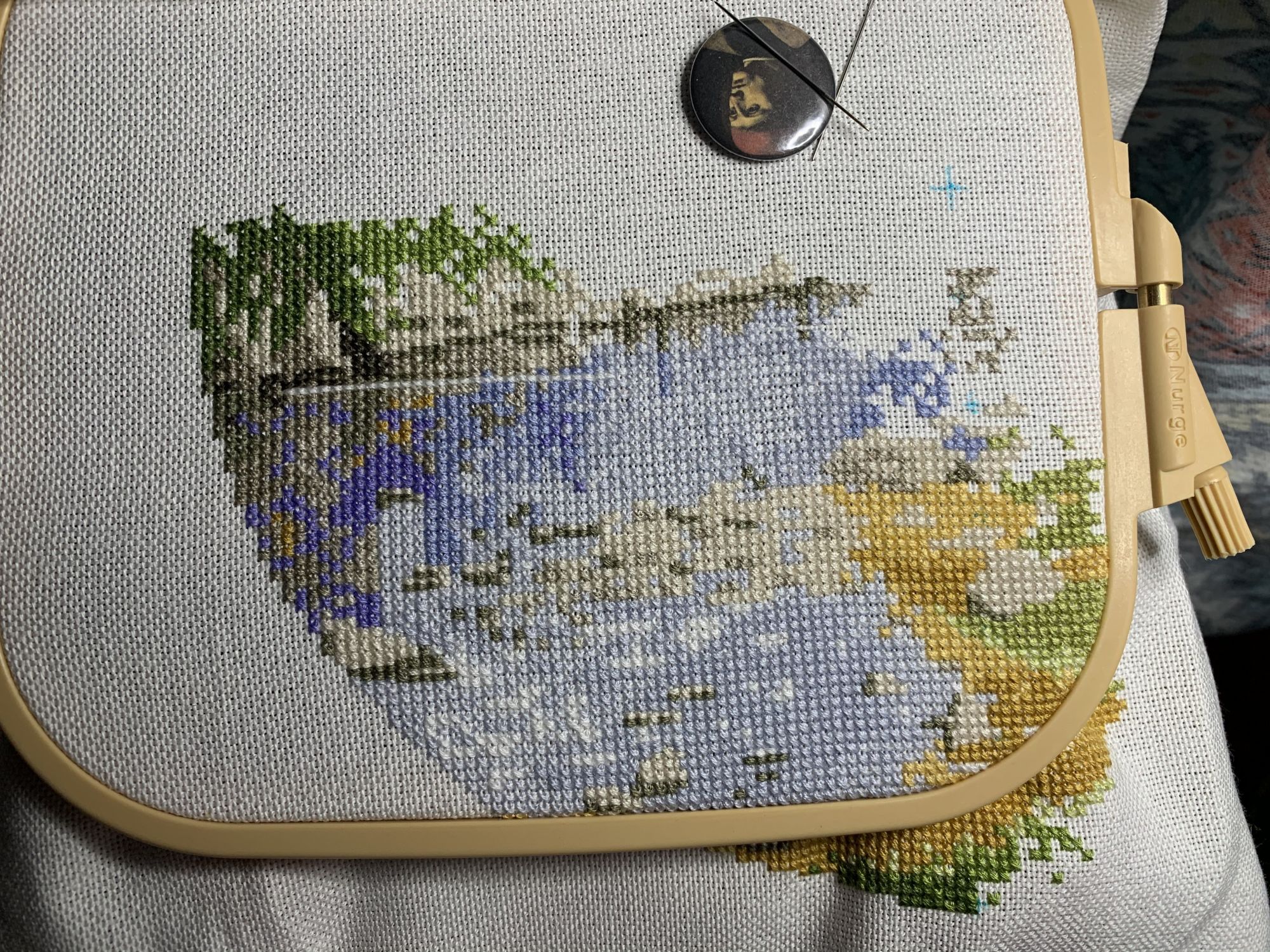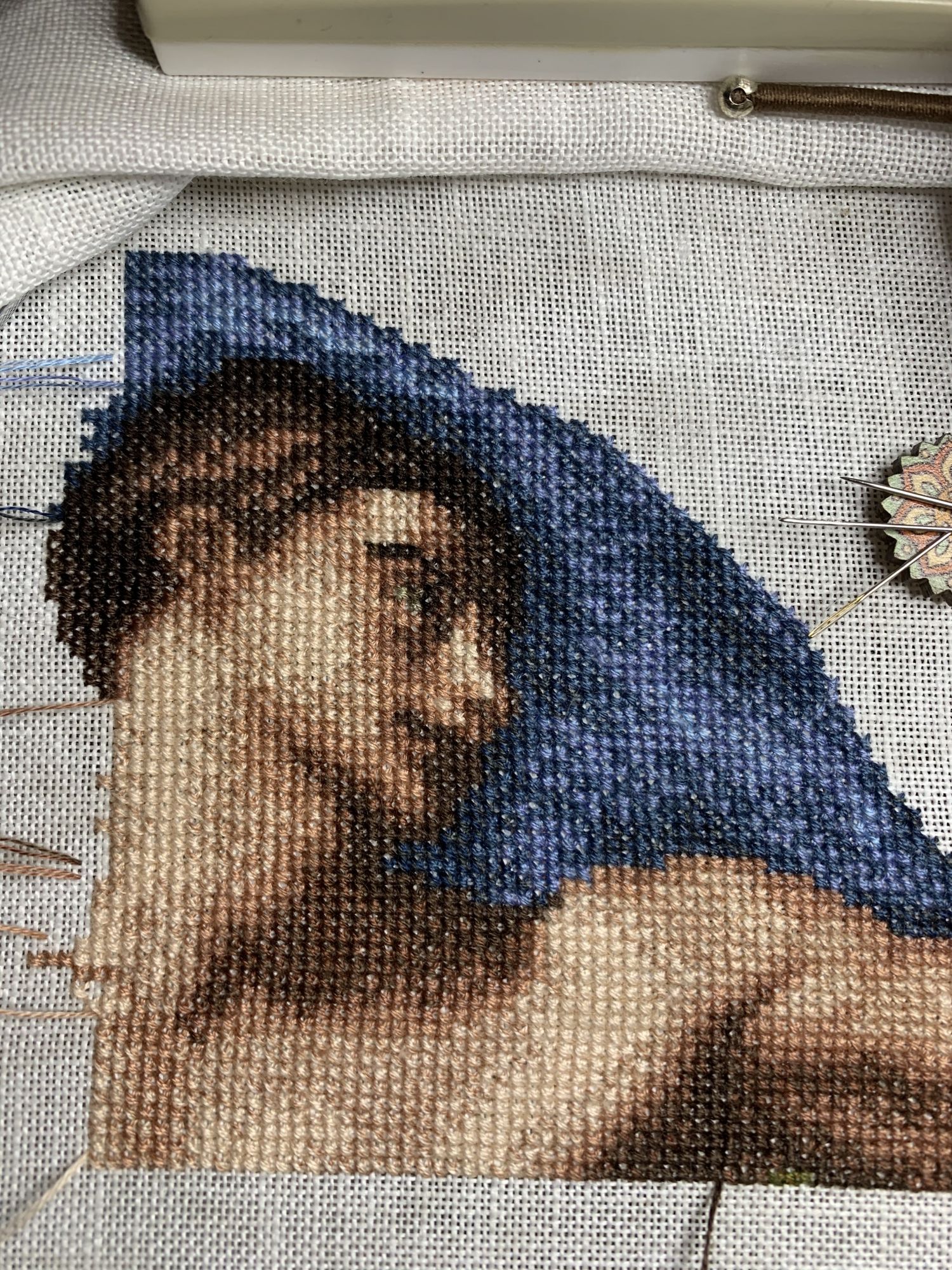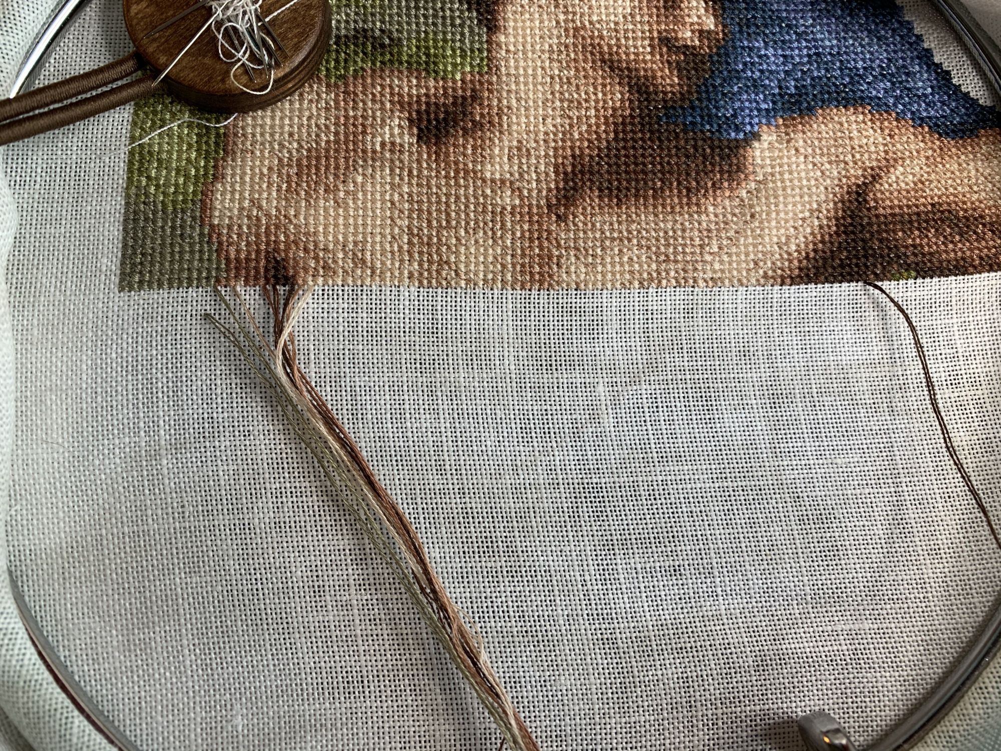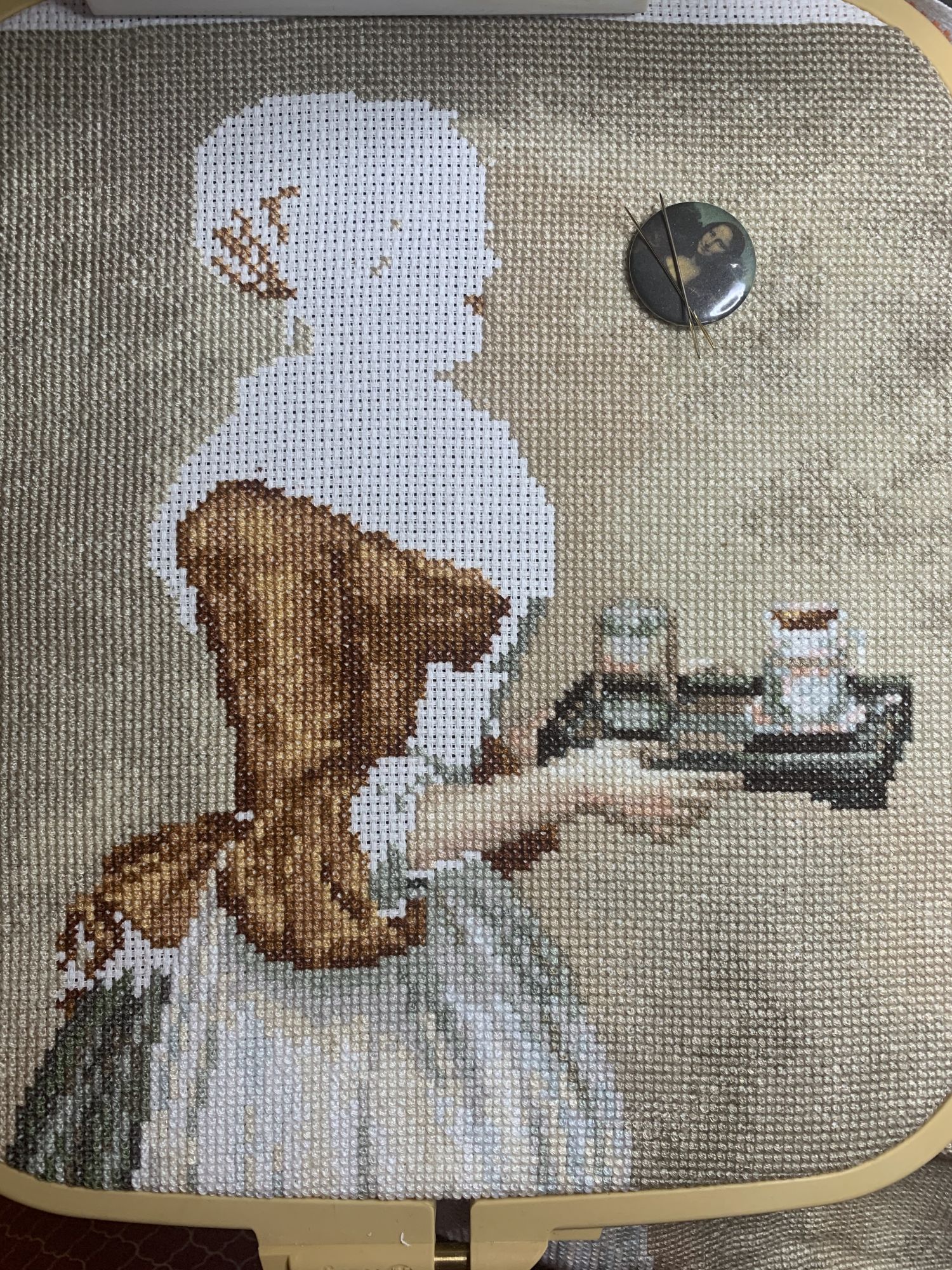 9 марта 2021 Приветствую! Часть 2. Продолжаю тащить накопившееся) 1. Давно уже хожу облизываюсь на разного рода сапоги, даже в закромах имею несколько представителей оных. Но вот начать и сделать – не доходили пока руки. Пока не столкнулась со спонтанной покупкой в виде сапога от Dimensions 8854 Enchanted Ornament Stocking. Благо шли активно новогодние праздники и было время залипнуть над вкусным димовским бэком)) Удовольствие испытываю от каждого подхода) коих за период случилось уже 2. Показываю с самого начала, т.к. нет еще гайки на него. Касательно комплектации китайской – чет возмущена я объемом канвы, что вложено было в набор. Видимо, запас минимальный и за пяльцы цепляться зубами предполагалось. 2. Ну, а этот процесс – битый и избитый, пожалуй. Кем? Да, нами с Цыпой. Помнится, купили мы с ней по этому набору в какую-то акции, на заре вышивальной жизни и так и подбивали начать его друг друга. В общем, мне в очередной раз напомнили о нем, но уже с фразой, что вряд ли мы уже начнем их вообще…и дальше сыграло «ах, таааак!» и я начала его) Набор от Dimensions 3243 Watering Cons или, как у нас его знают – «те самые лейки». Теперь понятно, чего откладывала. Да уж, случай с собакой еще не зарастил мои душевные раны от печатного креста и шилось тяжко. Но начало положено, пусть дальше теперь отлеживается, пока моя совесть не наберет очков по ней и не потянутся ручки. К красным гайкам я стала абсолютно спокойна)) 3. Спонтанный сюжет, который был таковым года 3-4 назад. Спонтанно нашелся, спонтанно купилась основа, а главное – повод нашла и одариваемого. Но все никак. А тут взяла и…очень быстро вышила этот милый сердцу сюжет в подарок мужу. Схема от Анастасии Малковой «Жил-был пес». (это не финальное оформление, а только прикидка). 4. В прошлом году было мое первое знакомство с кругами Клейтона и мне очень понравилось все, начиная от сюжета, и заканчивая разработкой от Heritage. Поэтому останавливаться не хотелось и были совсем уж косметические вопросы: какой выбрать сюжет из той вкусной массы, что есть; по схеме шить подбором или набором… в Лавке желаний приобрела тестово 2 кружка – уж больно цена аппетитна была. Ну и начала один из: Берег реки (Heritage HC310). Мое мнение: очень удобный органайзер представлен, но качество основы и некоторых нитей мне не зашли. Но дошивать буду, как и 2ой кружок. 5. Куда ж я без любимого Риолиса)) Иногда, украдкой, шью «Пейзаж с повозкой» - очень нравятся мне эти старенькие наборы у них, даже эта нарезка нитей пучками, в которой я нашла так много плюсов) 6. Ланарте Коллаж – закончила зимний сюжетик. За окном весна началась, а это значит, что пора уже и на весну переключаться. Надеюсь, скоро дойдут ручки до него. А пока немного фото процесса зимнего. 7. И снова Риолис! Но не шерсть) моя любовь-любовь в виде Шоколадницы! Многие думали, что шить я ее буду также, как и Моню или Даму с горностаем (коя также по уровень груди лежит в углу где то), но нет. Таки я ее вышила)) Когда выбирала набор, то сомнения меня гложили немного по поводу качества проработки. Казалось, что пиксельно слишком и нет той загадачной красоты в отражении чашек. Но по окончании взглянула на работу со стороны и сомнения развеялись - работа нравится во всем! А что «плохо» видно, то воображение само дорисовало)) Как и многие, добавляла ряды сверху, чтобы расширить границы. Впереди еще 1 старый процесс из прошлого года уже и новинка