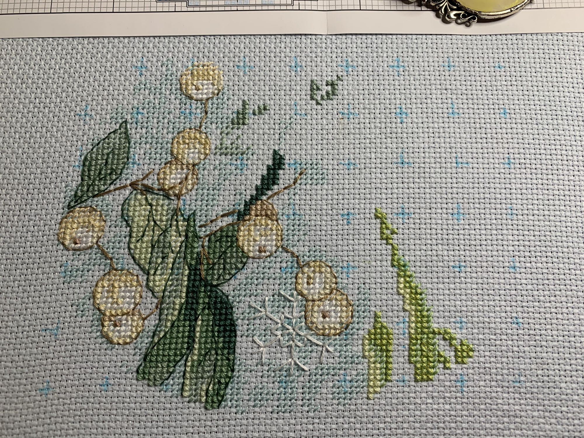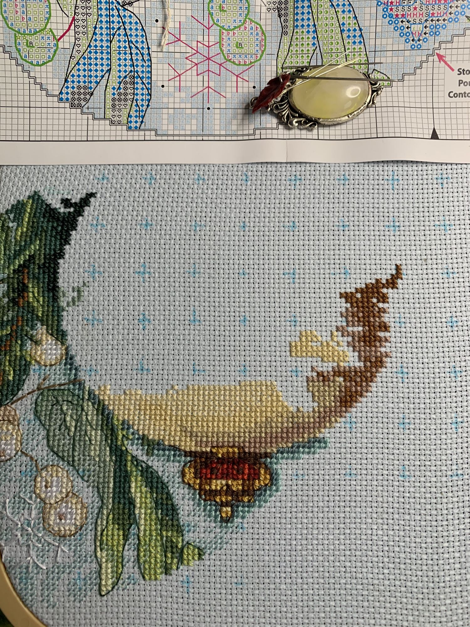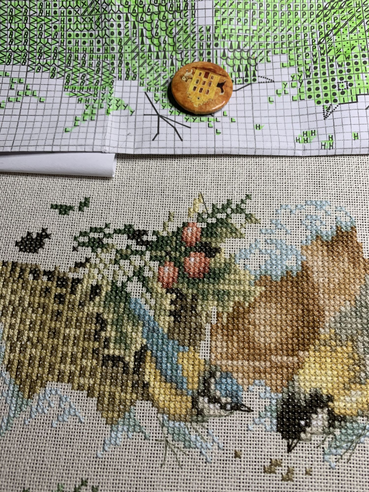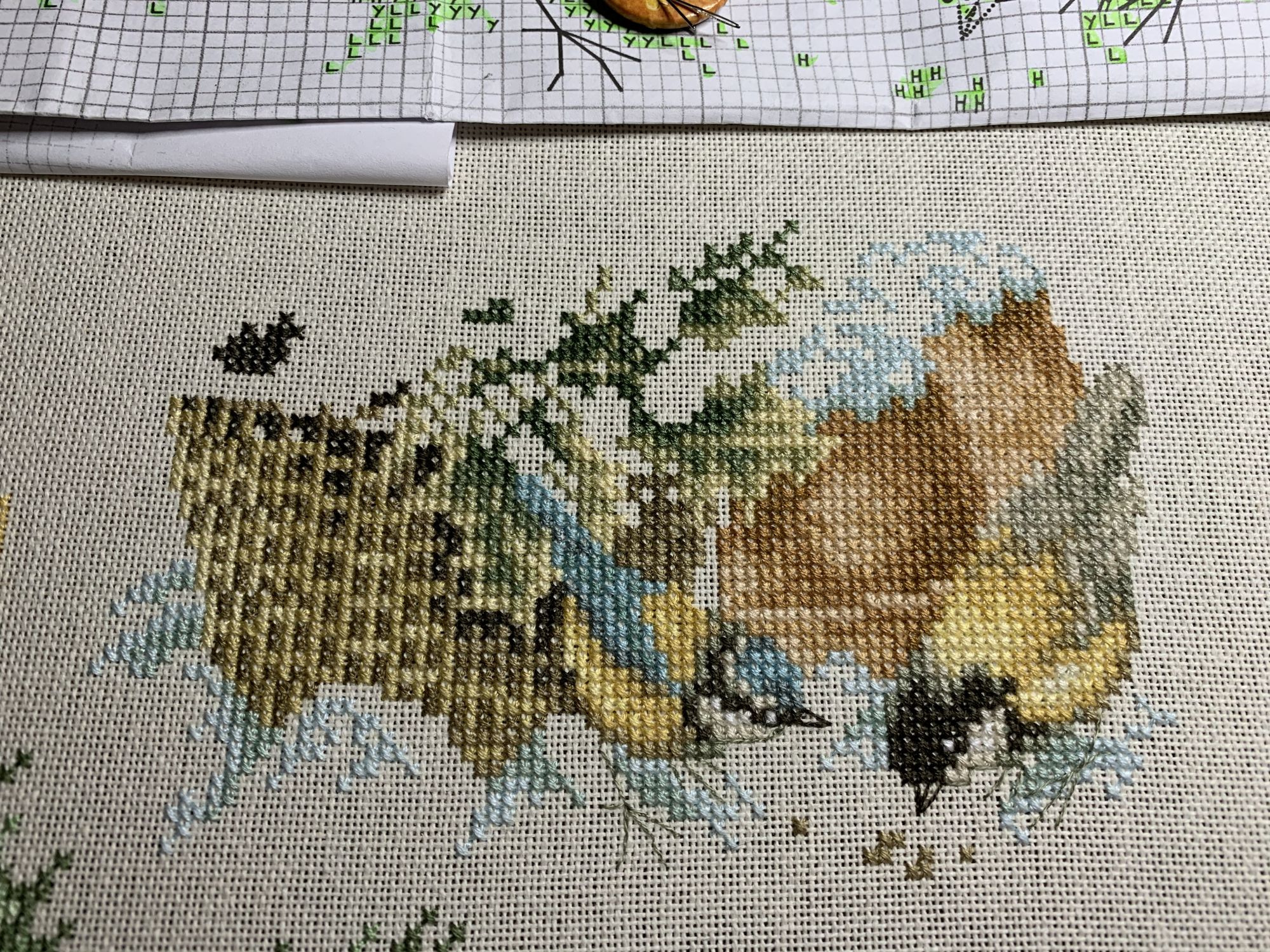 28 октября 2021 Привет! Что-то никак не получается себя дисциплинировать и начать систематически делиться своими продвижениями и финишами. Пойдем от обратного и покажем, что начала вышивать из последнего и продолжаю сейчас. - LetiStitch 8005 Jolly Saint Nick, 22х29, аида 16, счетный крест Поскольку сюжет с неполной зашивкой, то как-то рука сама дернулась поискать альтернативу какую-то равномерную. Выбор в этом цвете не богат, да и плюслм пошлО то, что не было еще опыта работы с Monika 28ct. В общем, сравнение основ: Сверху/слева -Моника, снизу/справа - родная: искусственное освещение - А-ля "естественное" - Далее пошло начало процесса: а тут снова эксперимент. Если посмотреть на картинку набора, то тень от венка предлагается шить полукрестом в темно-синим цвете. Вот попробовала кусочек(слева): . Но поскольку основа у меня светлее на тон-два, чем родная, то решила и в этом месте светлее вышить: смешала предлагаемый синий цвет с зеленым (из набора же). Результат мне больше нравится. Поскольку я ленивая, то шью бэк и пришиваю бисер сразу: Прикольный яркий дядька вырисовывается! А все самое вкусное - впереди оленек, татьяна0674, Nyurka-86 и 17 других сказали спасибо Поделиться сообщением Ссылка на сообщение