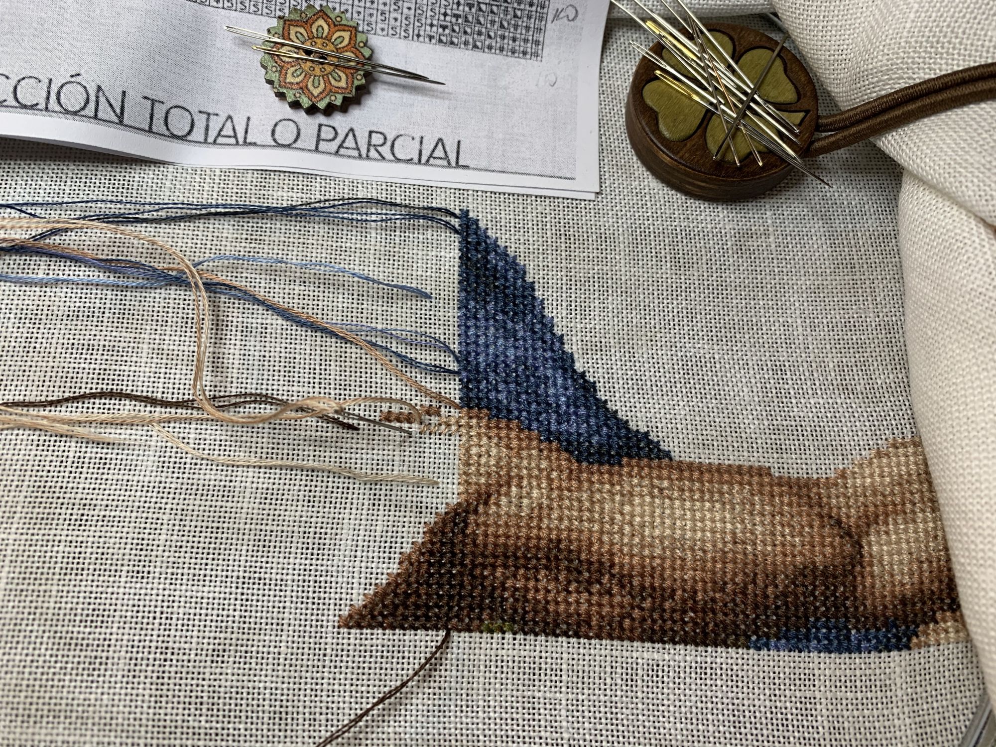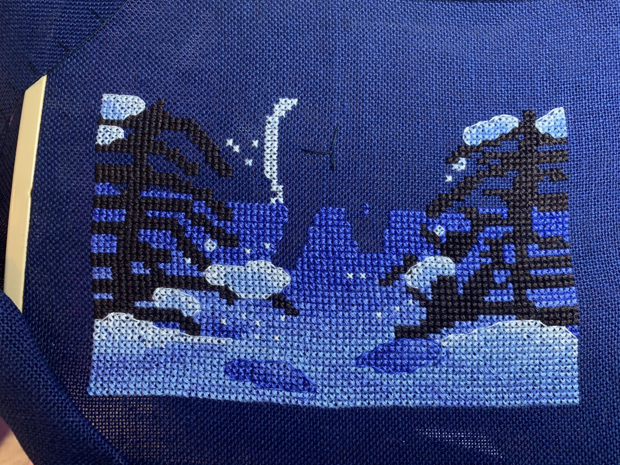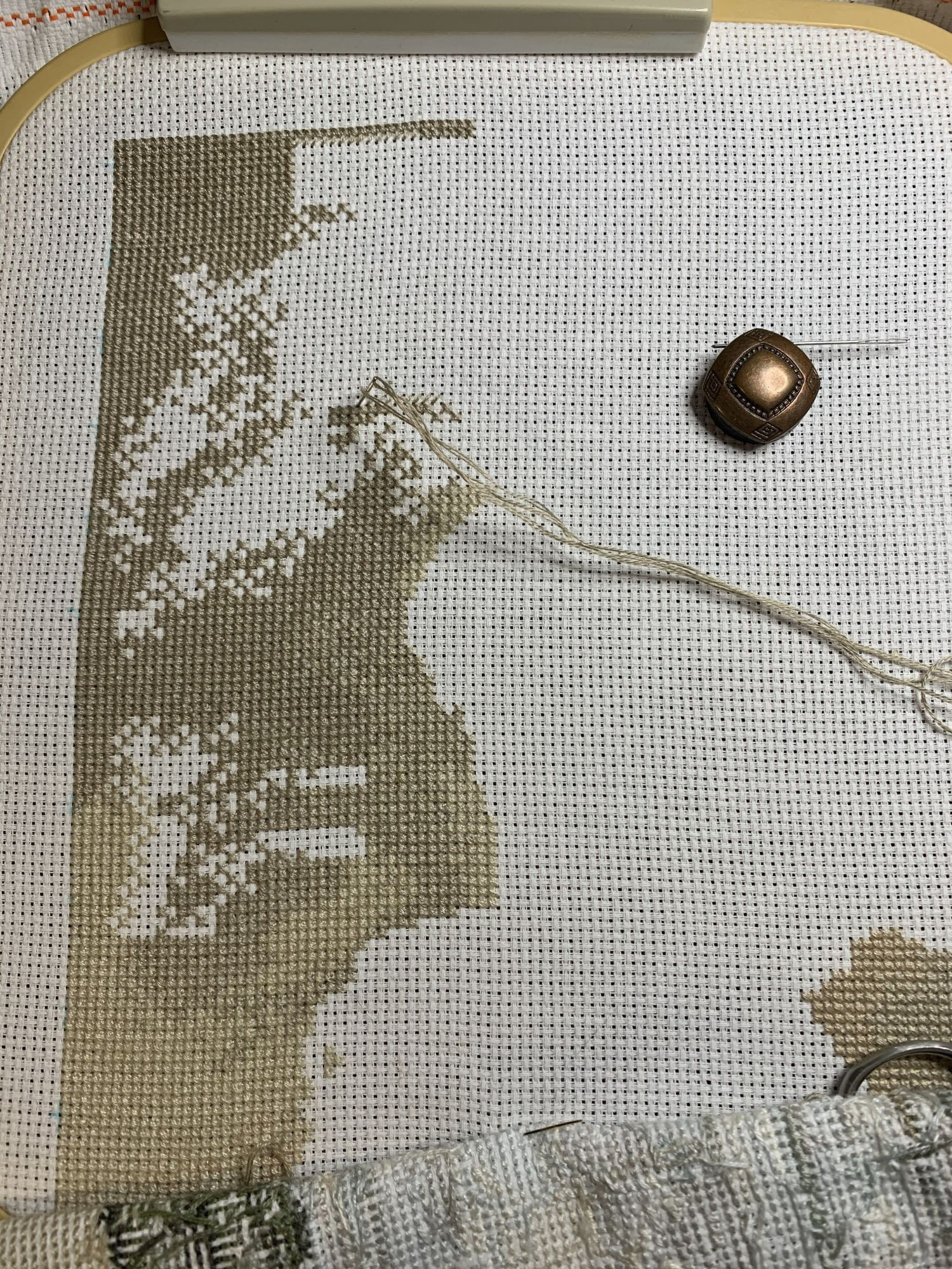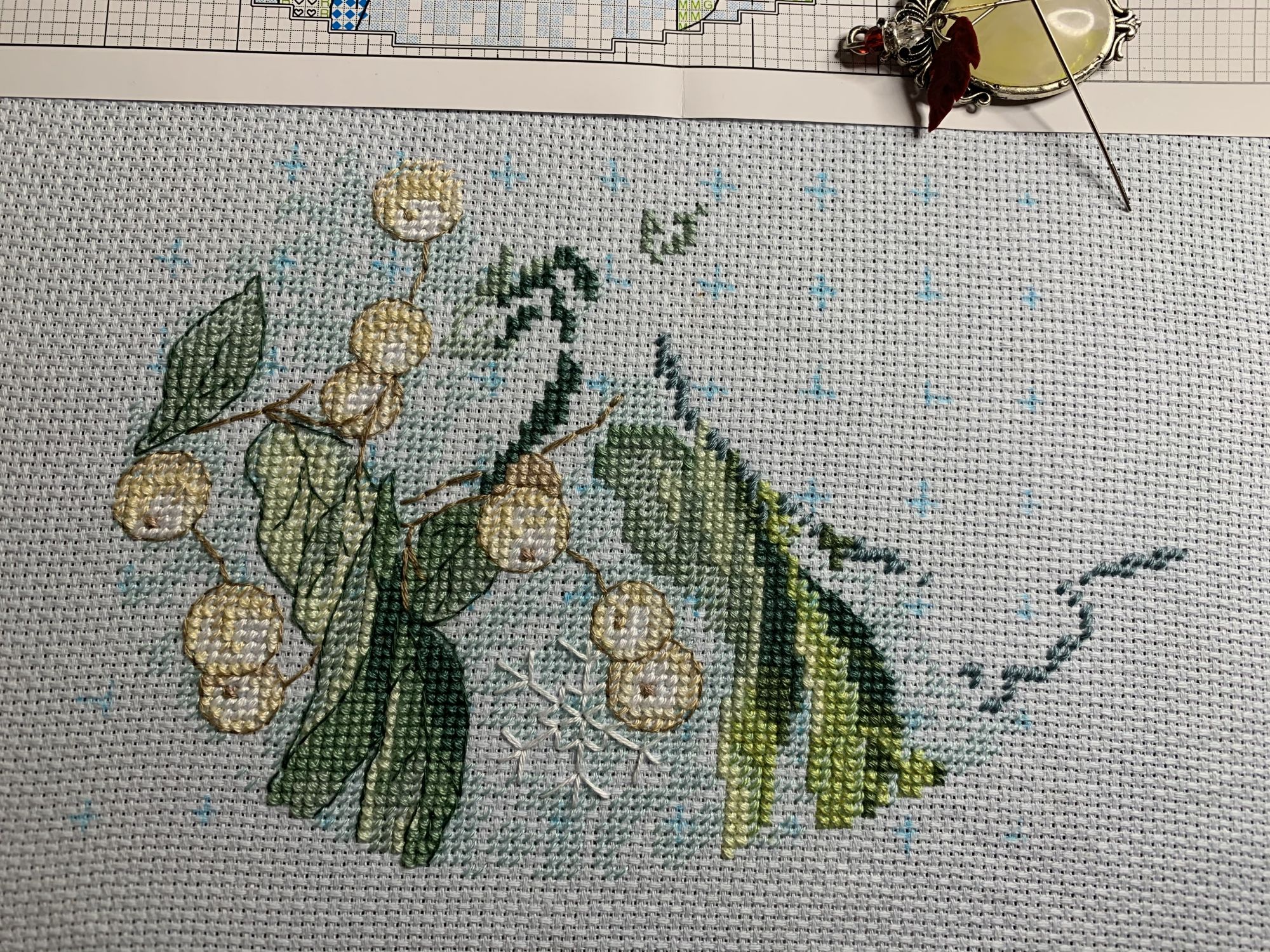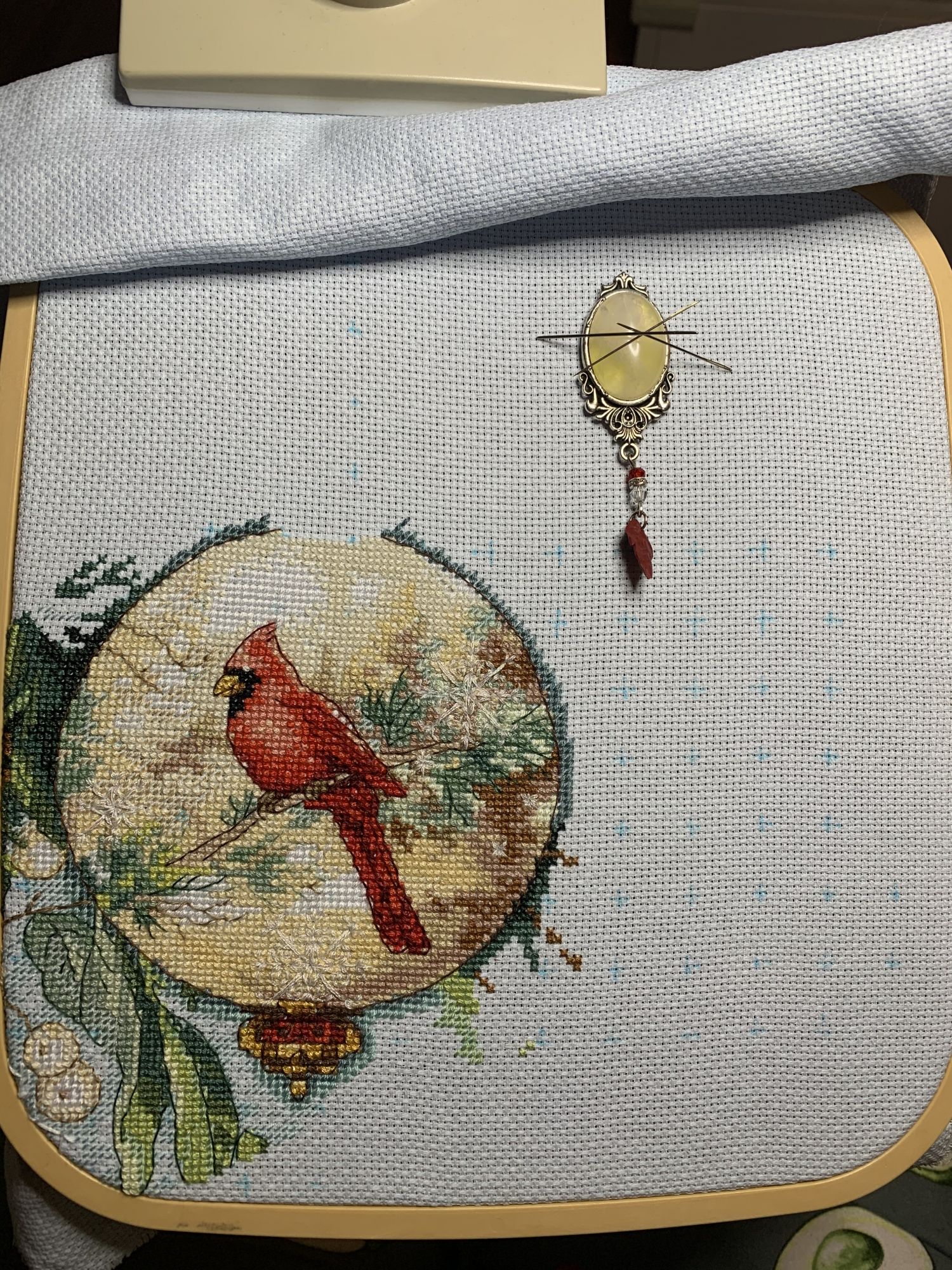 28 октября 2021 Привет! Что-то никак не получается себя дисциплинировать и начать систематически делиться своими продвижениями и финишами. Пойдем от обратного и покажем, что начала вышивать из последнего и продолжаю сейчас. - LetiStitch 8005 Jolly Saint Nick, 22х29, аида 16, счетный крест Поскольку сюжет с неполной зашивкой, то как-то рука сама дернулась поискать альтернативу какую-то равномерную. Выбор в этом цвете не богат, да и плюслм пошлО то, что не было еще опыта работы с Monika 28ct. В общем, сравнение основ: Сверху/слева -Моника, снизу/справа - родная: искусственное освещение - А-ля "естественное" - Далее пошло начало процесса: а тут снова эксперимент. Если посмотреть на картинку набора, то тень от венка предлагается шить полукрестом в темно-синим цвете. Вот попробовала кусочек(слева): . Но поскольку основа у меня светлее на тон-два, чем родная, то решила и в этом месте светлее вышить: смешала предлагаемый синий цвет с зеленым (из набора же). Результат мне больше нравится. Поскольку я ленивая, то шью бэк и пришиваю бисер сразу: Прикольный яркий дядька вырисовывается! А все самое вкусное - впереди оленек, татьяна0674, Nyurka-86 и 17 других сказали спасибо Поделиться сообщением Ссылка на сообщение