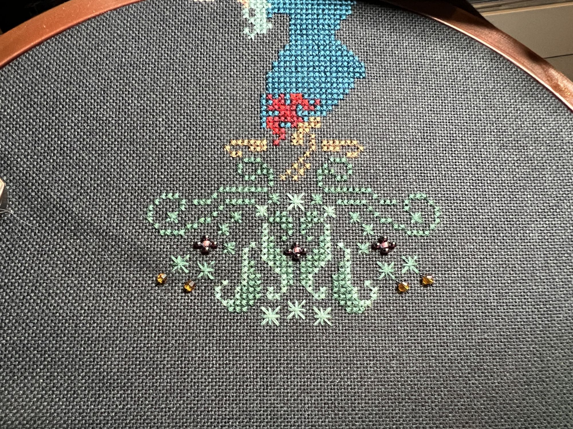 15 декабря 2022 7 минут назад, Juliay сказал(а): Мне почему-то больше всего нравятся еловые веточки по уголкам, особенно снизу, с красными ягодками и "шишечками"! Спасибо, Юля) Соглашусь с тобой)) мне тоже очень понравилось шить веточки) оч понравился предложенный цвет от Anchor - такой припорошенный зеленый и тактильные ощущения были оч приятны от него, хотя я и не особый любитель ниток этого производителя. Juliay сказал(а) спасибо Поделиться сообщением Ссылка на сообщение