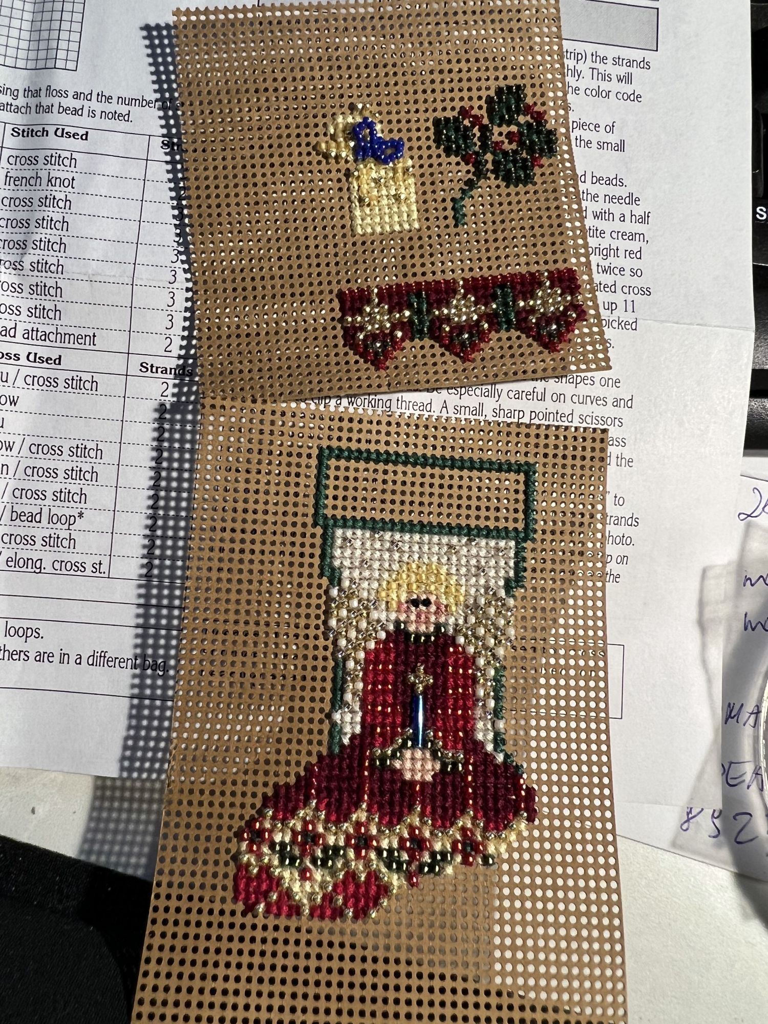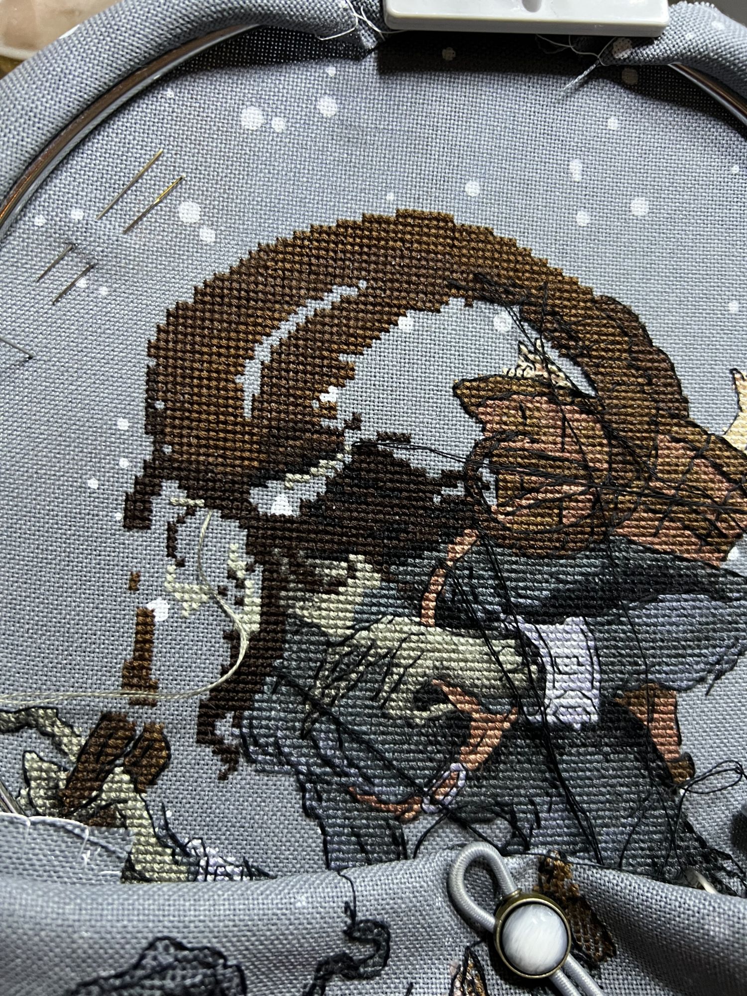 4 мая 2023 Привет-привет! Пока хотела одно принести, уже и другое подоспело 1. Отдыхалочка от МХ Christmas Morning Santa - мне этот брутальный парень на чиле сразу понравился и как удалось приобрести набор, сразу и запустила свои ручки в него))) Поигралась с его усами и результатом оч довольна! Барбер-шоу в действии: думала было вырезать парочку, как обычно, но мне почему-то нравится именно такой вариант Не как "игрушка", а как сюжет на холсте "вышел на веранду утром, кофейку попить") 2. Отвлекаясь на отдыхалочку, шила фею от Numie La Reine des Fees - довела ее до 50% и переключилась на другую работу, чтобы разбавить накал страстей наш с ней а страсти были еще те: 1. сначала привыкала к стебельчатому шву и первые образцы были особенно извращенские - через предварительную наметку....а потом уже шилось на живую)) 2. бумажная схема несколько неудобна в использовании, нашелся перенабор в саге, который при первоначальном обзоре показался "бьющимся" со схемой.... на практике столкнулась с несколькими явными ляпами, которые не сразу бросились в глаза, но потом нашлись.... теперь вынуждена пытаться смотреть во все места. вот честно, кажется, что должно быть больше 50%, но сага не врет 3. Люблю этих авантюристок @Путешественница, @Каори, которые лихо умеют меня вовлекать во все тяжкие)) Итогом Оля и Ася уже успели поделиться в своих темах, а я в отстающих, как всегда)) В общем, шалость 1: Зайка от vetlanka подумалось, что если есть материалы, то начну...глянула - все есть) а бисер подбирала на глаз из того, что было под рукой. Результатом довольна) хотела оформить в готовую рамка, но из того, что в наличии, показалось маловато. Отложила) шалость 2: Мохнатая овечка от Оксаны Ершовой снова барбер-шоу в действии : тут тоже был больше экспромт, в котором ориентировалась на схему автора, а наполнение было моих рук. Удивительно, но итогом снова довольна и она теперь меня радует каждый день с товарищем усатым 4. Очередная отдыхалочка - Северный мишка от Двое из ларца Скажете, что тема нового года уже проехала как бы, но не у нас) В целом, задумка классная, реализация - тоже, но лично мне нитки не зашли. Возможно, надо было в кондиционере их того-самое, но мне лень было) 5. Продолжение МП Студия Р-462, Царевна-лягушка, что шью иногда на даче. 6. Ну и, с пылу - с жару, финал по Сервалу от @Molly21 Признаюсь, для меня эта работа была из серии "мыши кололись, но продолжали есть кактус", т.к. очень понравился этот малыш, с его живым взглядом, но бэк заставлял глазам и рукам держаться все время в тонусе, хотя я и отношусь больше к его любителям. Сами крестики шились легко и непринужденно) Любуюсь результатом и кажется, что это уже смесь крестика и глади PrimaN, irinaol, Цыпа и 21 других сказали спасибо Поделиться сообщением Ссылка на сообщение