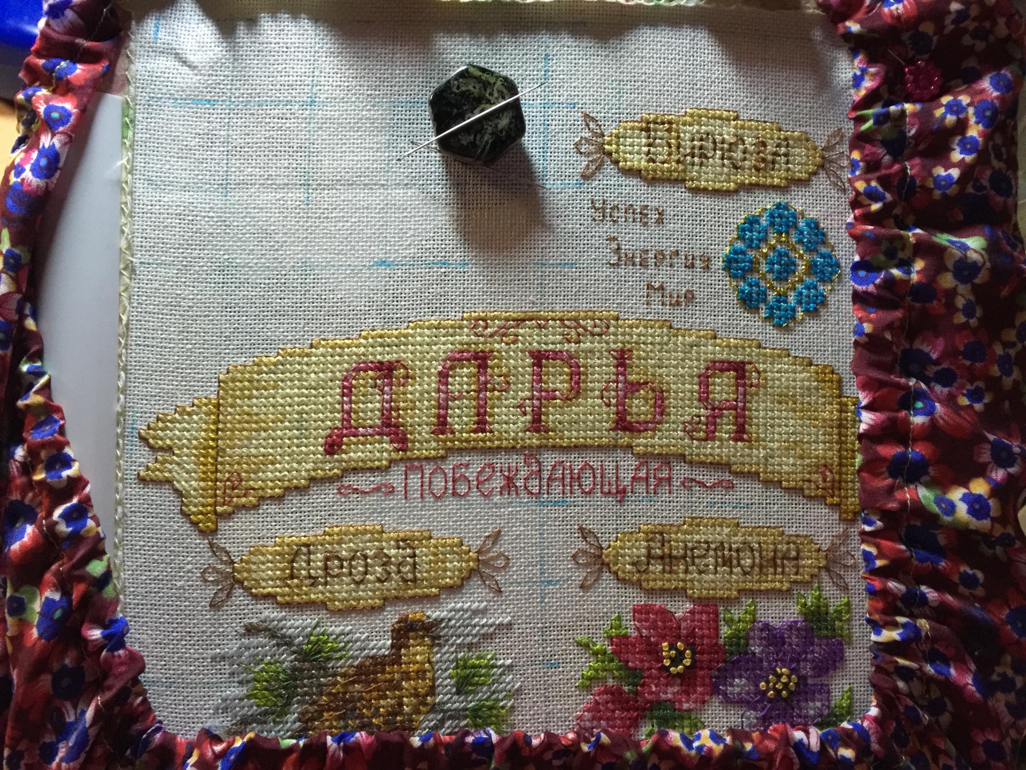 1 декабря 2015 Та-дам! Набралась новостей, отсортировала фотки и вот пришла отчитываться) Начну, пожалуй, с игр) В рамках игры Лавка желаний готовила вот такой сюрприз для Bellatrix - книга записи рецептов. Для сюжета был выбран мною горячо любимый мопсо-повар от Катерины Бесперстовой. Сюжет небольшой, процесс был также быстр, как и подготовка, но удовольствия было с лихвой! Собственно, сам процесс: И оформленный вариант - съемная мягкая обложка: В конце года присоединилась к игре по Праздничным открыткам. За пару месяцев подготовила и подарила следующие открытки: - для Olili (Ольга); - для 1963630м (Марина); - для dolli7 (Лена). Хотела и 3ю открытку для Лены с птичками в общую тему, но мне поздно сказали про дату следующего одариваемого и времени было впритык. Тем не менее, мне очень понравилось - третья открытка получилась (на мой взгляд) - самой оригинальной) Сердечко вышито на пластиковой канве и нитками и бисером; сзади прикрыт кожей, а края задекорированы блестками. Да и открытки я никогда так не собирала) В целом же, мне очень понравилось и получать открытки и готовить, дарить их самой! Надеюсь, что всем все понравилось Такс-м...что там у меня еще на повестке дня планировалось? хмм... Думала я думала - что же подарить человеку (мужу), у которого есть я (все)?...и ничего путного не придумала, да и сам он ничего не хочет будто. Поэтому решила сделать то, что ему точно понравится. Он любит рукоделки мои и с радостью заполняет ими свой рабочий кабинет. Поэтому на прошлой неделе я начала процесс-сюрприз, который вчера уже и закончила. Более того - уже отдала на оформление сегодня с утра Закончила бы и раньше, только в выходные не было возможности - это ж сюрприз, который одариваемому показывать низя ж еще) А сюжет - Знак зодиака Стрелец от Золотого руна. Собственно, сам процесс и итог: Даже сфотографировать толком не успела, так как процесс был таким быстрым) Забавный такой персонаж вышел)) При вышивке нитки как то не понравились в этом наборе. К короткой длине от ЗР я уже привыкла, а вот к тому, что пушатся и путаются - чего то не привыкла ( Едем дальше) Продолжаю ваять подуху под присмотром нашей Наташи (Мышани). На сегодняшний момент одна половина уже отшита (без внешнего канта) и заканчиваю вторую. Наташа, скоро кажу результат, надеюсь) Чуть было не забыла - я же закончила и отправила уже Оберег для нашей Даши (Elvica) Кстати, Даша, заметила - я вчера попереписывалась с почтой, а сегодня отправление сразу сдвинулось с места Ну и вот он процессик - Panna Оберег Дарья: Вышивался он не спеша, так как это оберег все-таки и тут торопиться - не годится) только под хорошее настроение и с соответствующей музой! Надеюсь, я его зарядила как надо Ну и на десертики уже. Оформилась моя Фея цветов: Без вспышки: Со вспышкой: На фото со вспышкой цвет багета и паспарту более точный. В этот раз оформление было не быстрым, но я и не торопила никого. Зато творец вдоволь поигрался)) и паспарту резное сделал, еще и со стразами) Сказал, что раз в работе стразы есть, то и в оформление тоже надо. Теперь у меня дилемма дома - куда ж вешать эту красоту?))) и еще чуууть-чуууть из мира моих закрамов: чего то хомяк никак утихомириться не может и все глазками своими зырькает и ищет...ищет... Вот и в этот раз не обошлось без жертв) Попался мне в руки вот этот наборчик от Риолис: Естественно, теперь задача собрать все остальные элементы 