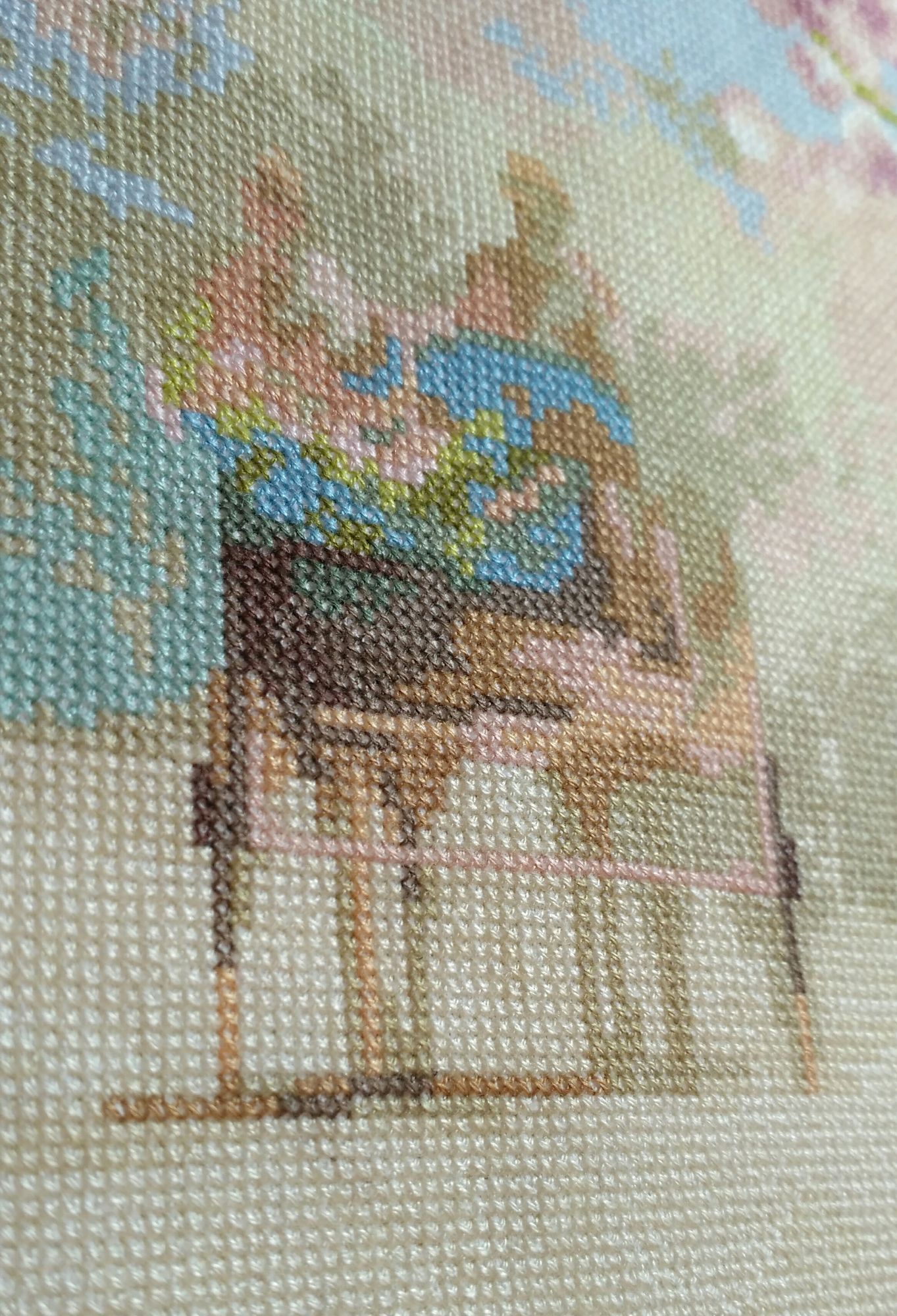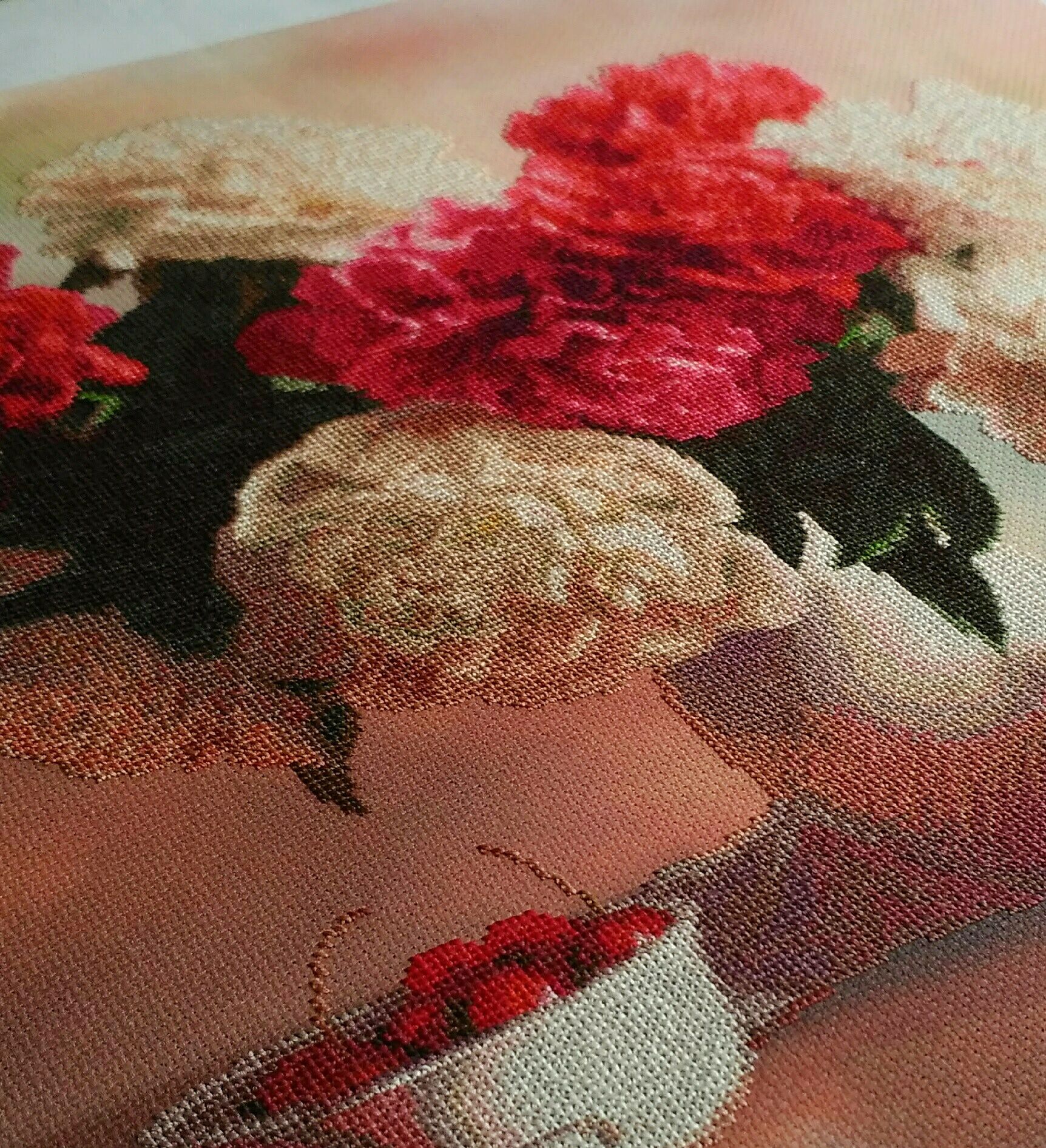 23 апреля 2017 Добавлю красок в свой процесс! И зелёненький появился и чуть вишневых пионов. Ох, как мне нравится дизайн. Какой же он фотореалистичный! На тонированной канве вышиваю впервые, оказывается, она легко повреждается...Поцарапала в одном месте случайно иголочкой, и краска отошла от канвы. Буду аккуратнее.. ЛАДОМИРА, Yulik, maui и 1 другой сказали спасибо Поделиться сообщением Ссылка на сообщение