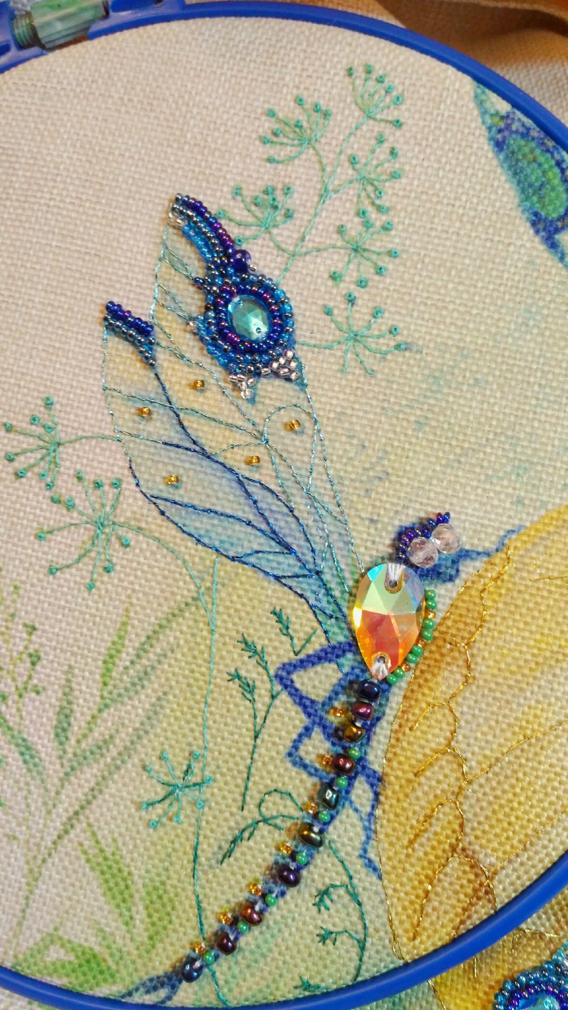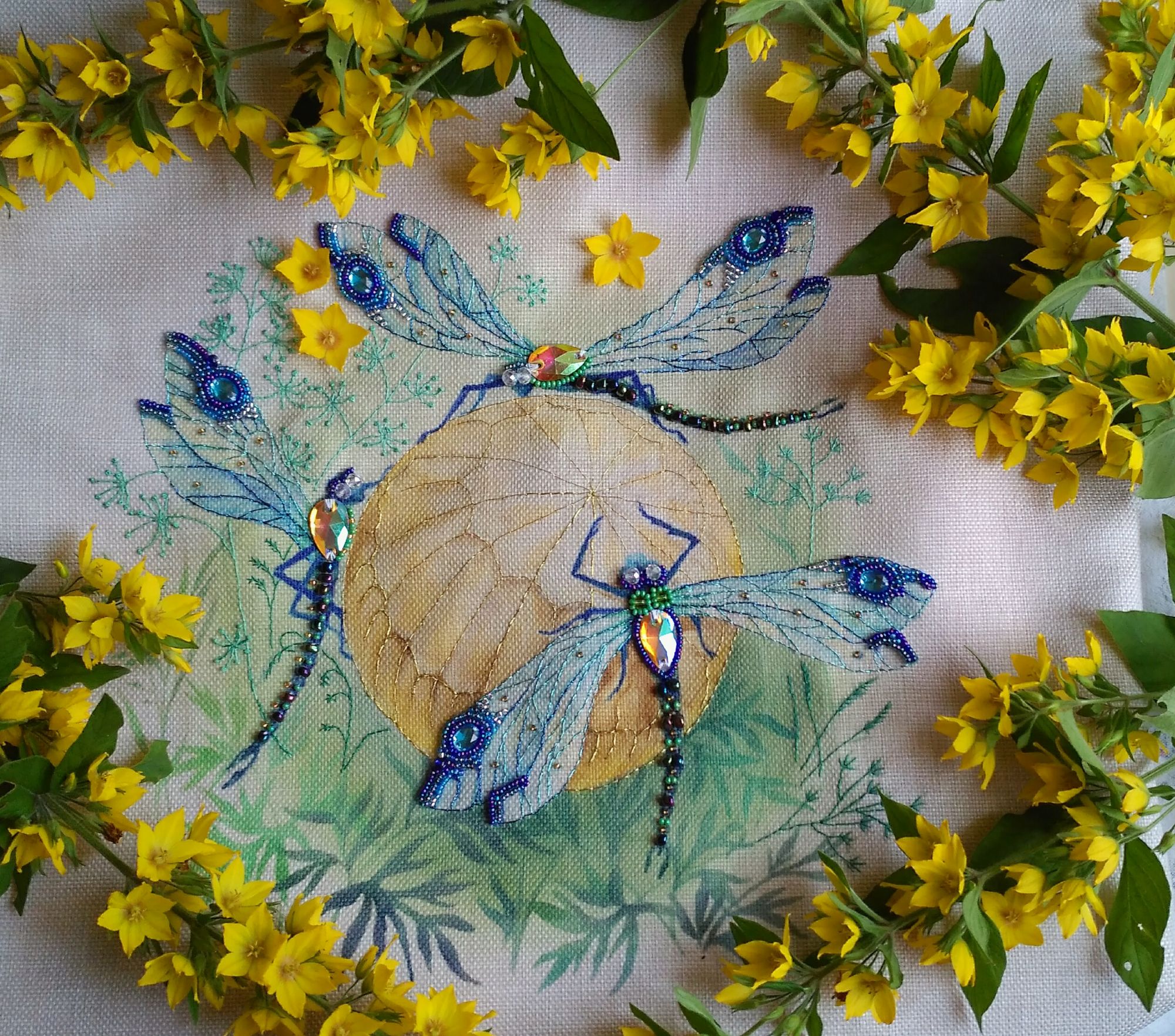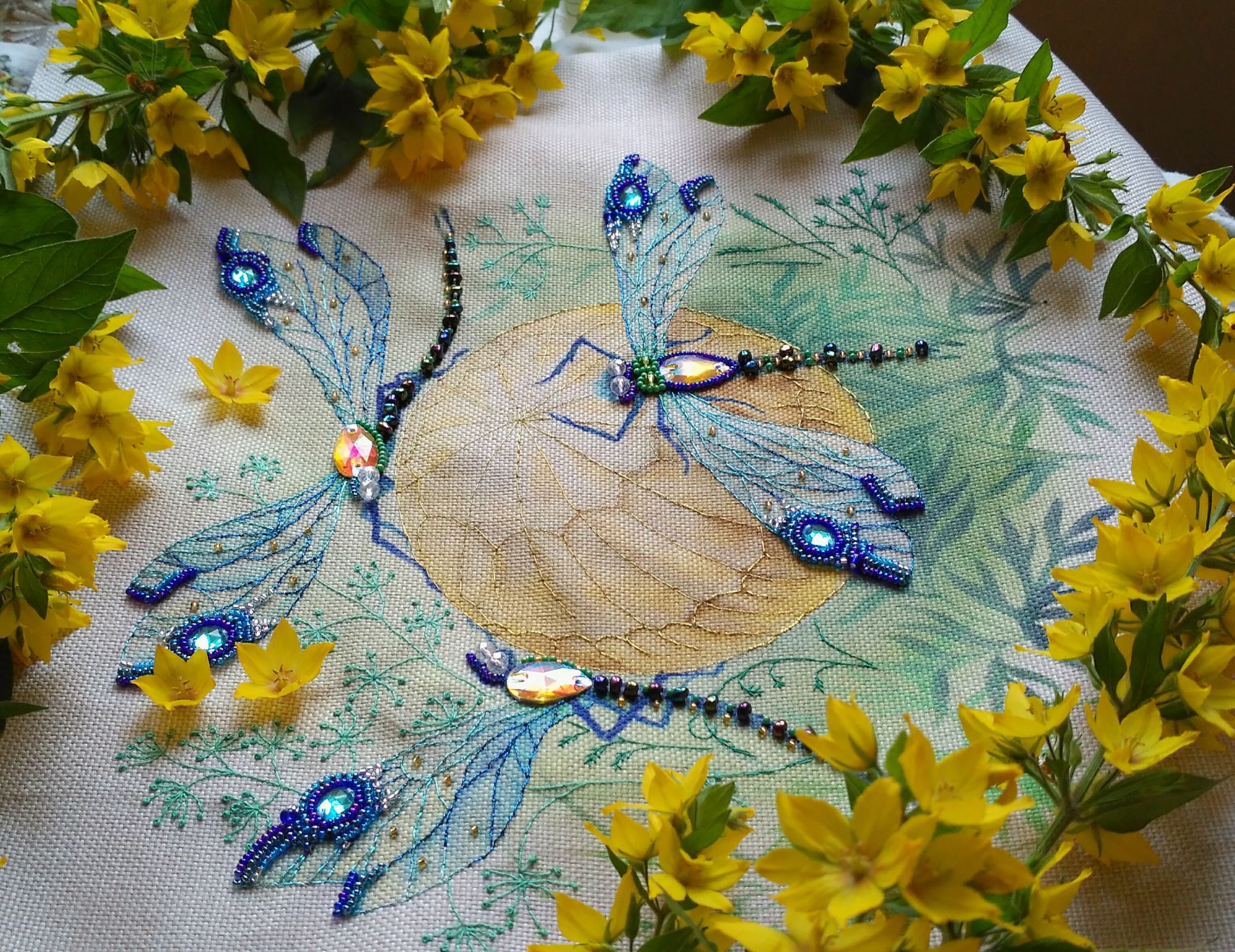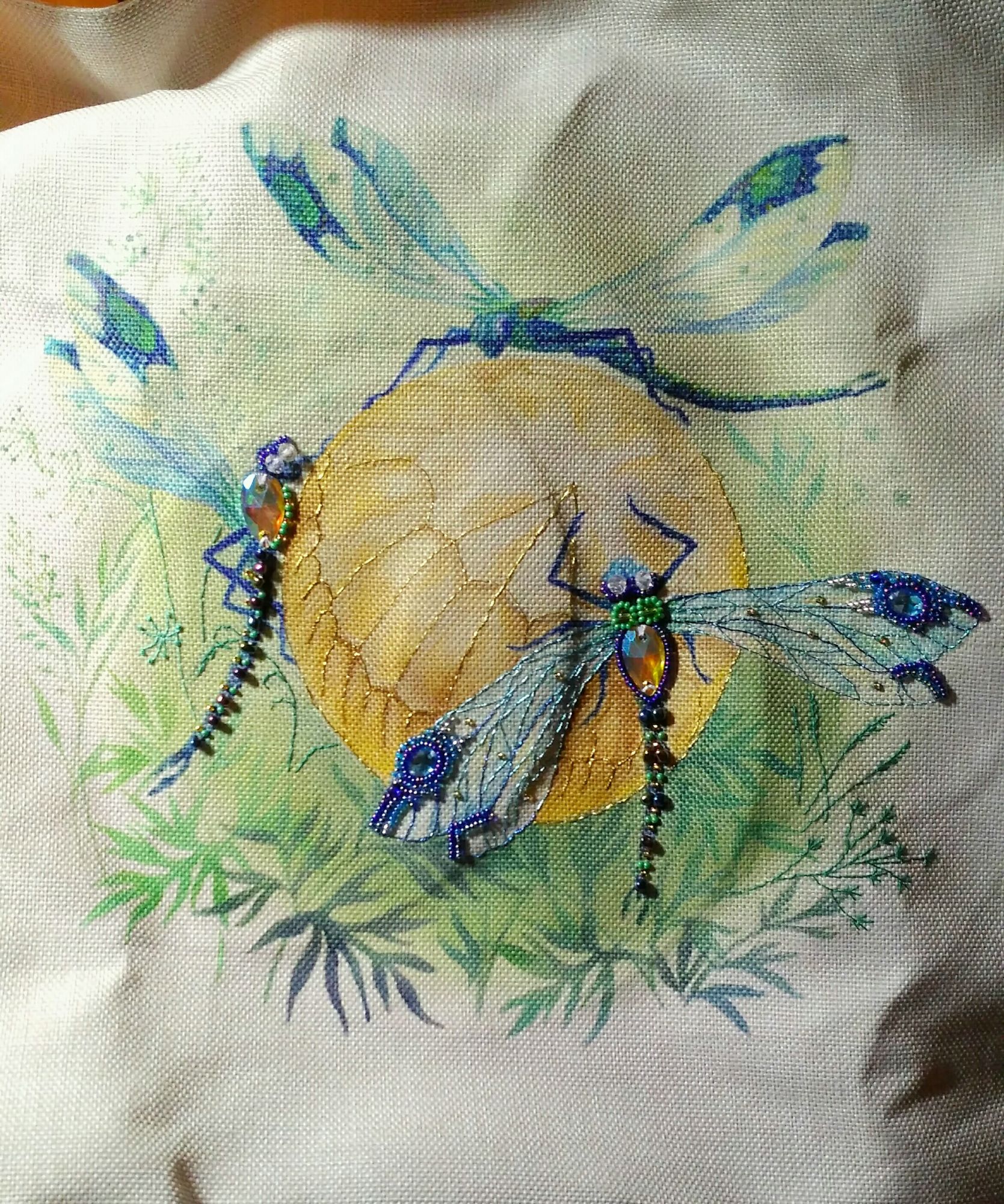 23 июля 2017 Для летнего отдыха прикупила себе сумочку Танец стрекоз от Матренина пассада. Комплектующие хорошего качества, сама сумка полность готова, что мне очень понравилось. Только вышить и застрочить внутри подкладку. И ручки пришиты, и молния вставлена, и карман внутри имеется. Скажу сразу: фанатом вышивки бисером и металликом я не стала. Вроде быстро, вроде красиво, но без удовольствия! Каждый раз ну просто заставляла себя приступить к процессу и жалобно смотрела в сторону отложенного набора с вышивкой крестом. Ещё мне попался набор с камнями жёлтого цвета. Во всех ранее показанных наборах камушки на брюшке стрекоз были синего цвета. У меня же жёлтого! Вроде красиво, но как-то не так. Мне даже показалось, что и размер у них побольше... В целом, результатом я довольна, сумка получилась красивая, летняя! К отдыху я готова! С собой на море решила взять отдыхалочку, Золотую рыбку Овен. Достала наборчик, и ручки зачесались начать до поездки! Ну хоть чуть-чуть! Схема отличная, канва мне тоже понравилась, хоть здесь ее ругали. Особенное спасибо Овну за большой запас по краям. При размере работы 14*23 канва почти 30*40. Немного расстроила цветовая палитра. Уж больно не сочетаемые цвета жёлтого, оранжевого и красного оттенков, одни холодные, другие тёплые... Но, отшив небольшой кусочек, картинка получилась очень даже ничего. На этом решила прерваться, чтобы было, что на море шить(а может там и некогда будет, если только в дороге). Следующий мой процесс Сиреневый натюрморт собираюсь пойти шить в тему Цветы, чтобы было веселее. Уже начала, вот отошью немножко, чтобы было что показывать. Если, кто то будет это читать, Спасибо, что зашли и прочитали! А то я сама себе пишу! Аленка-2, Гало4ка, smarko75 и 4 других сказали спасибо Поделиться сообщением Ссылка на сообщение