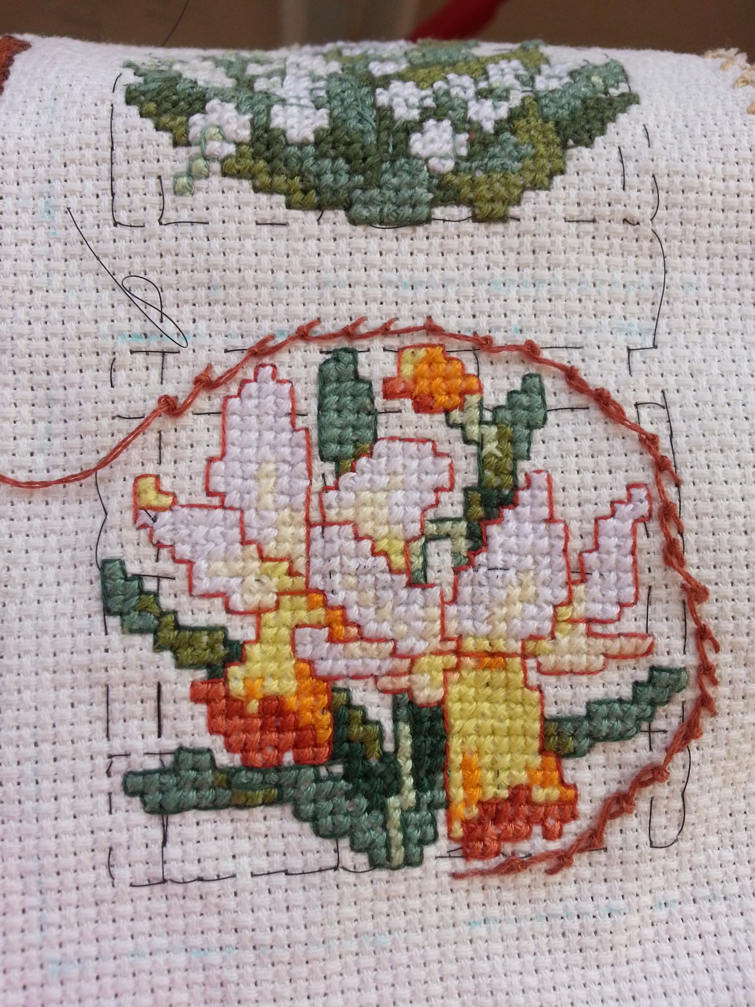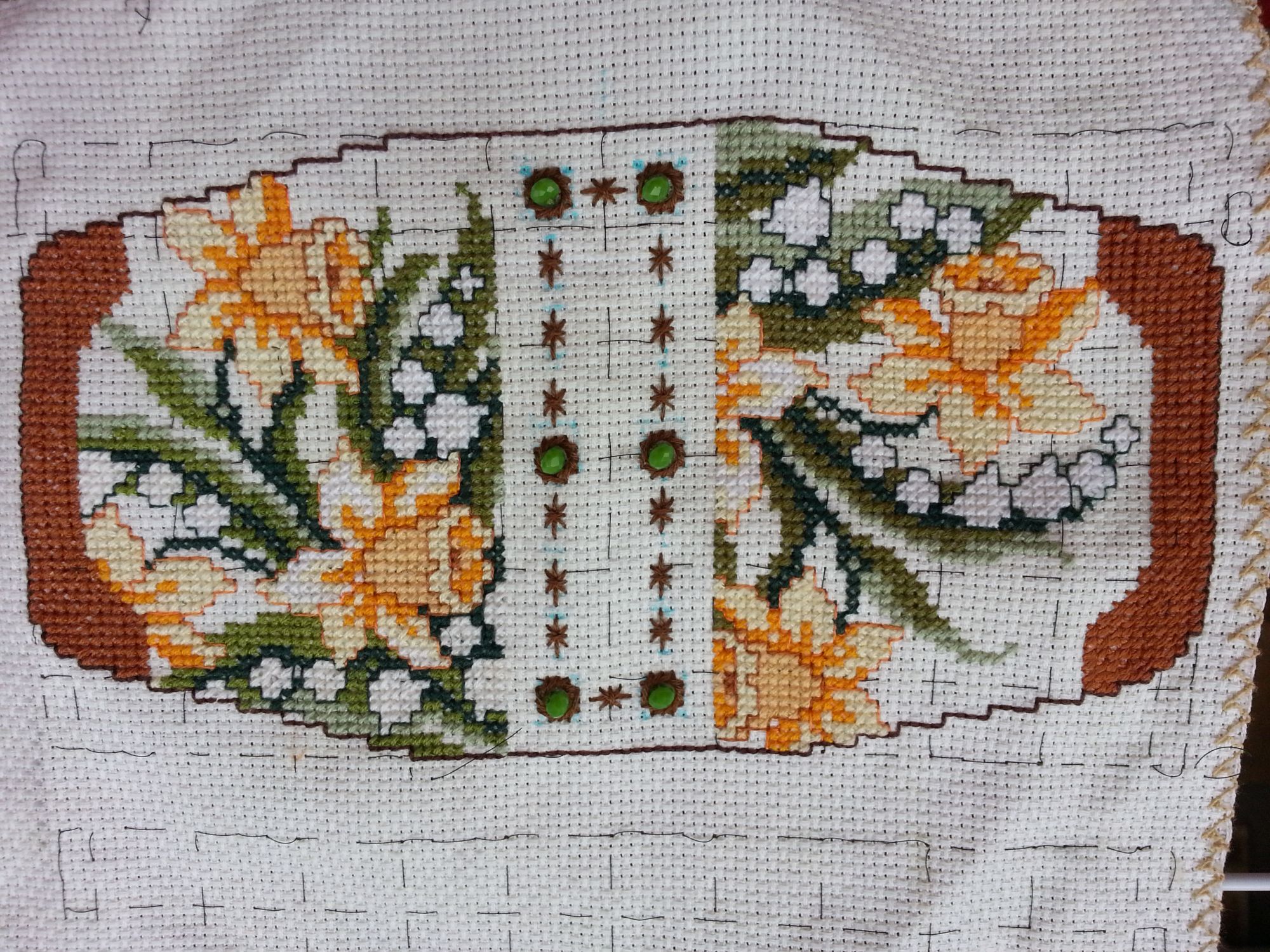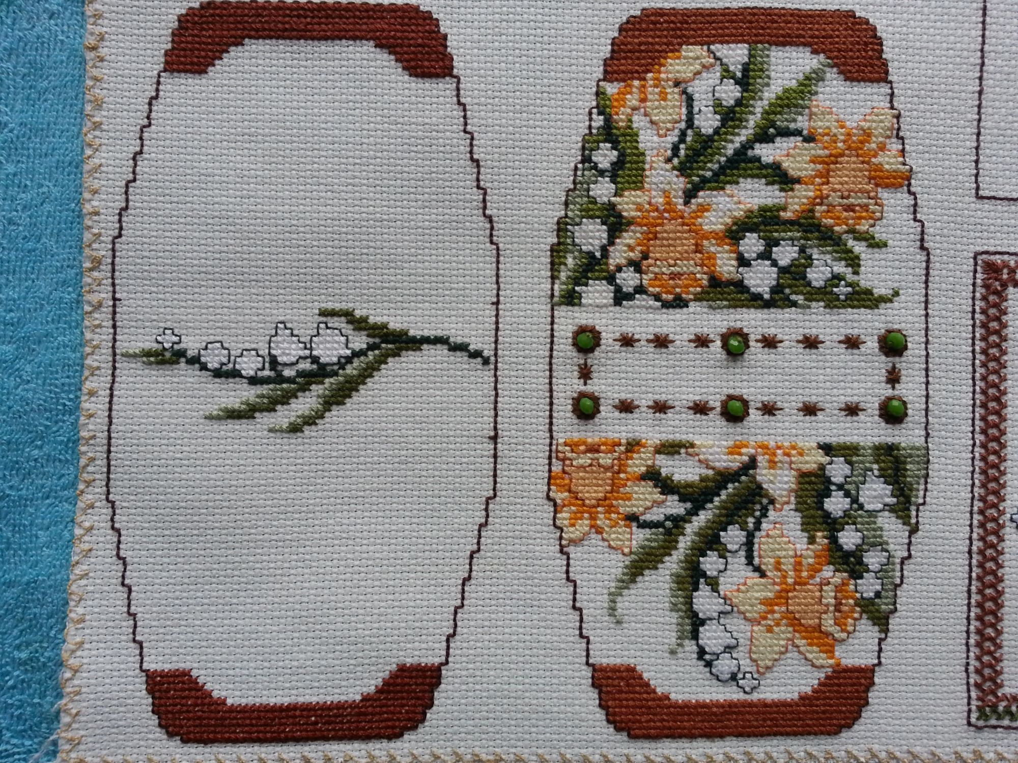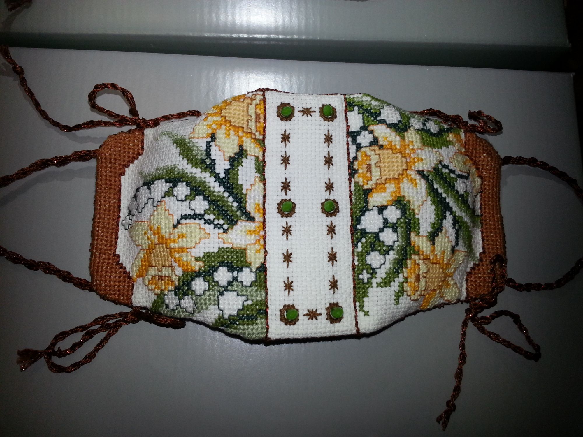 3 декабря 2017 Маячок . Задуман был двусторонний маячок - на одной стороне ландыши, на второй - нарциссы. Когда вышила, поняла, что бедные ножнички, уж очень большой размер маячка, на мой взгляд, выходит. Первоначально была идея вышить нитками круговой контр и таким образом уменьшить размер. Сделала, мне не понравилось. Распустила. В конечном итоге, придала форму цилиндра и у меня вместо одного получились 2 симпатичных маячка! Нарциссы: Ландыши: Так они выглядят вместе: Lenara, Хозяйка смешных зверей, Океан и 6 других сказали спасибо Поделиться сообщением Ссылка на сообщение