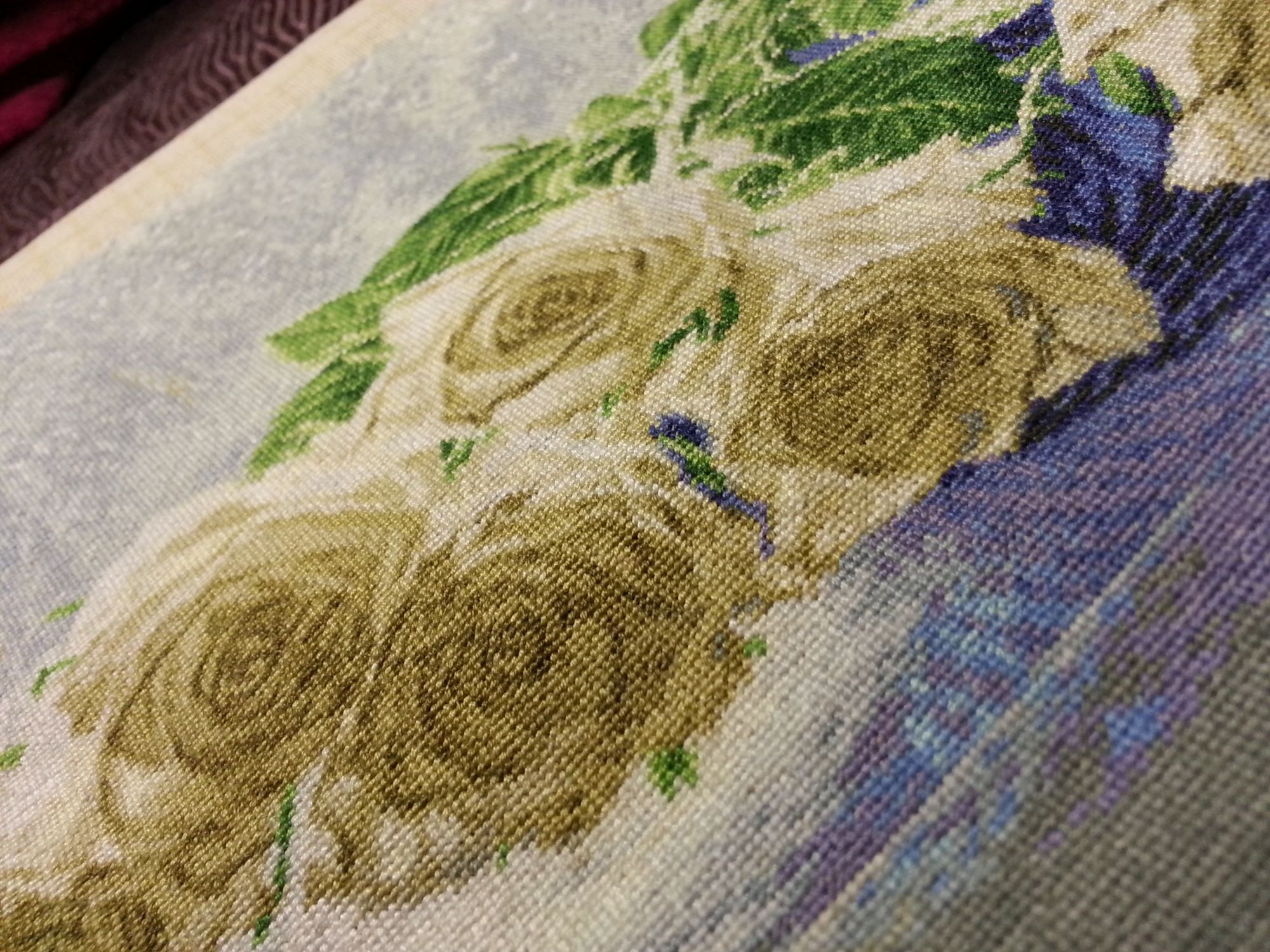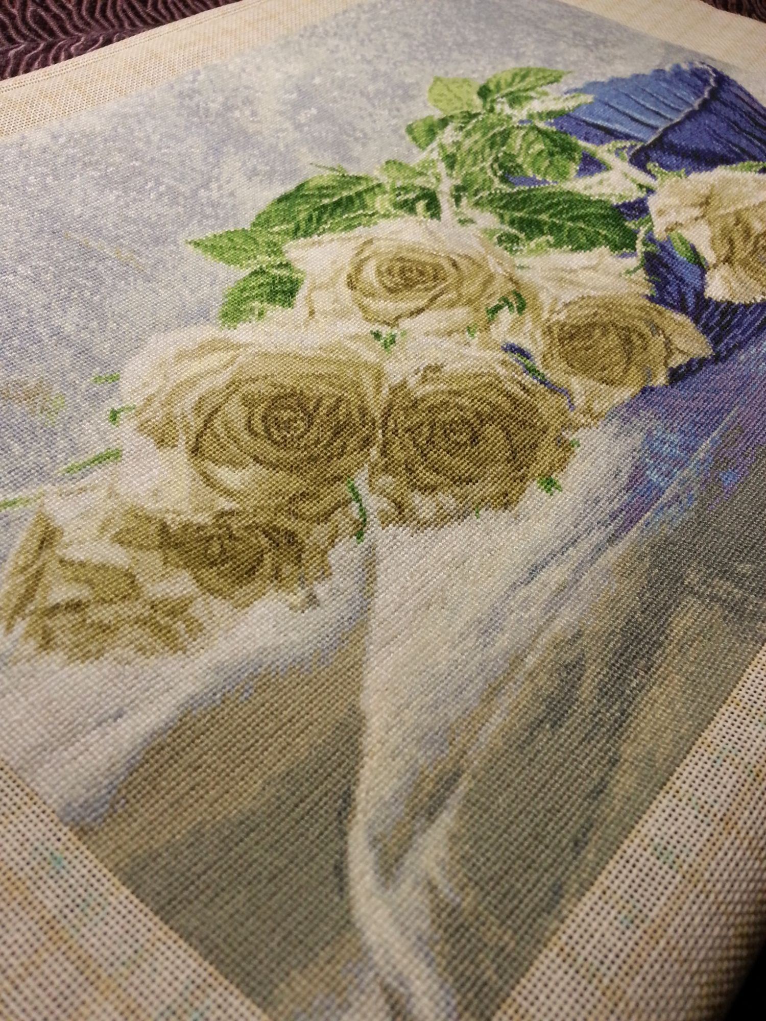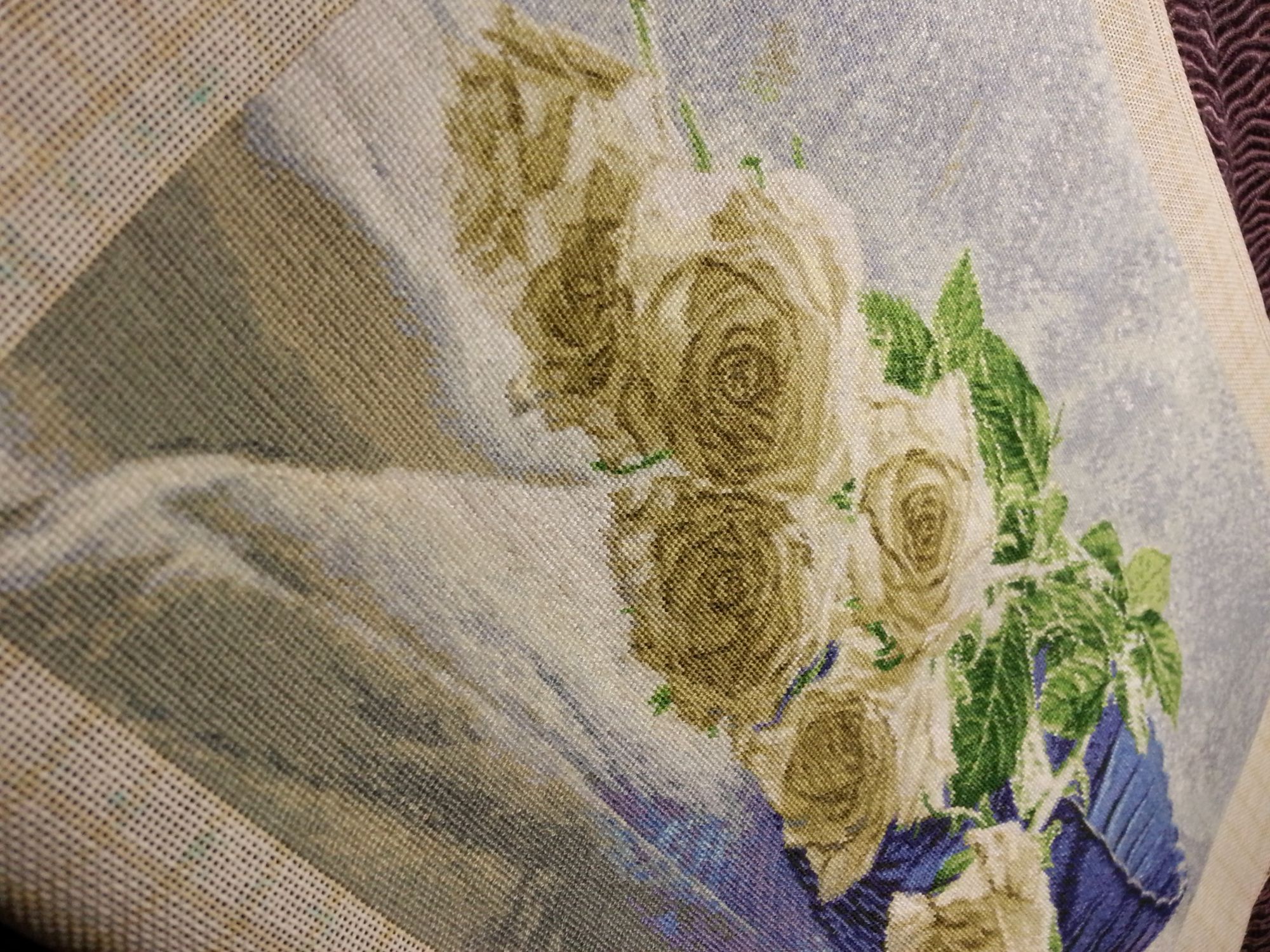 24 декабря 2017 Всем привет! С наступающим Новым годом! Я закончила подушечку. На мой взгляд, она у меня быстро вышилась. Как и в собачке сильно перекосилась основа. Боялась, что подушка выйдет кривой. Скорее всего это из-за направления узелков. По инструкции они должны смотреть в одну сторону. Под конец работы узелки делала без изменения направления, но затягивала не вперед, а назад. На Алиэкспресс есть наборы размером 70 см и выше, типа ковриков. Думала заказать, но из-за перекоса сомневаюсь, т.к. подушка скрадывает его, а как выравнивать коврик я не придумала. Розы. Цветы роз вышила все. Остались одиночные стежки. Далее идет зелень и фон (примерно 2 листа осталось). Еще один процесс это "Изобилие жизни". Не хочет четко фотографироваться. Вышиваю по сюжету Сюжеты знакомые, но их названия я не знала. Посмотрела на сайте Панны. Вот что получилось Я бы поменяла расположение некоторых картинок (если читать по часовой стрелке). Anicha, pepita, Galina* и 6 других сказали спасибо Поделиться сообщением Ссылка на сообщение