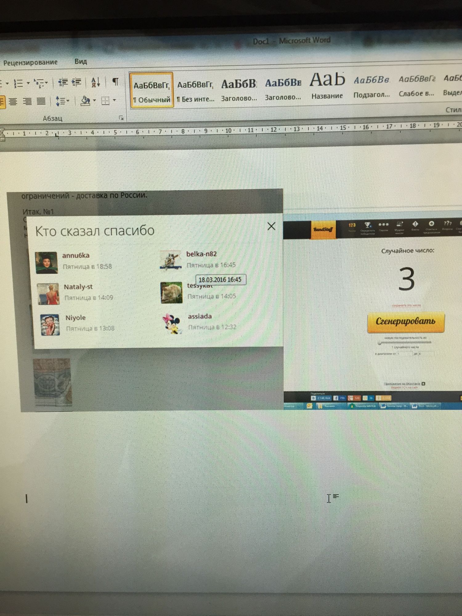 21 марта 2016 Только что, *Marusya* сказал: Разыграю первую свою конфетку. Участвовало 18 человек. Итог: Поздравляю Anicha! Жду координаты от Вас! Спасибо огромнейшее!!! Совсем не ожидала что выиграю!!!!адрес написала!!! Жду с нетерпением!!!! Ура !!!!!ура!!!!! Ксен40, Valvariella и kreolka сказали спасибо Поделиться сообщением Ссылка на сообщение