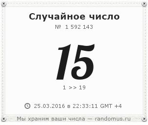 26 марта 2016 итак, 26-е уже наступило, желающих не прибавляетсяначинаю розыгрыш набора от Дивной вишни Нумеруем по времени спасибо, начиная с раннего: Пошла в генератор ssavvina, Ан4оус, Ponochka и 5 других сказали спасибо Поделиться сообщением Ссылка на сообщение