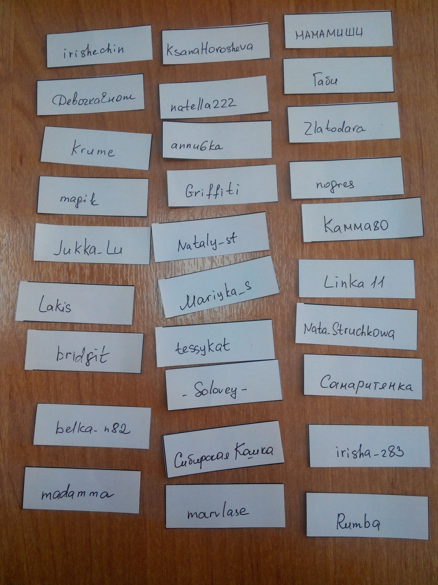 29 марта 2016 Итак, начнём розыгрыш конфеток-котяток!)))) На первую конфетку (висящий котенок) успела последняя желающая попасть)))) дописала ещё бумажку))) На вторую конфетку (спящий котенок) списки собраны, бумажки скручены и готовы, пойду к другу и коллеге Артурику вершить судьбу)))) Бондаренко, Ан4оус, Nata_Struchkowa и 12 других сказали спасибо Поделиться сообщением Ссылка на сообщение