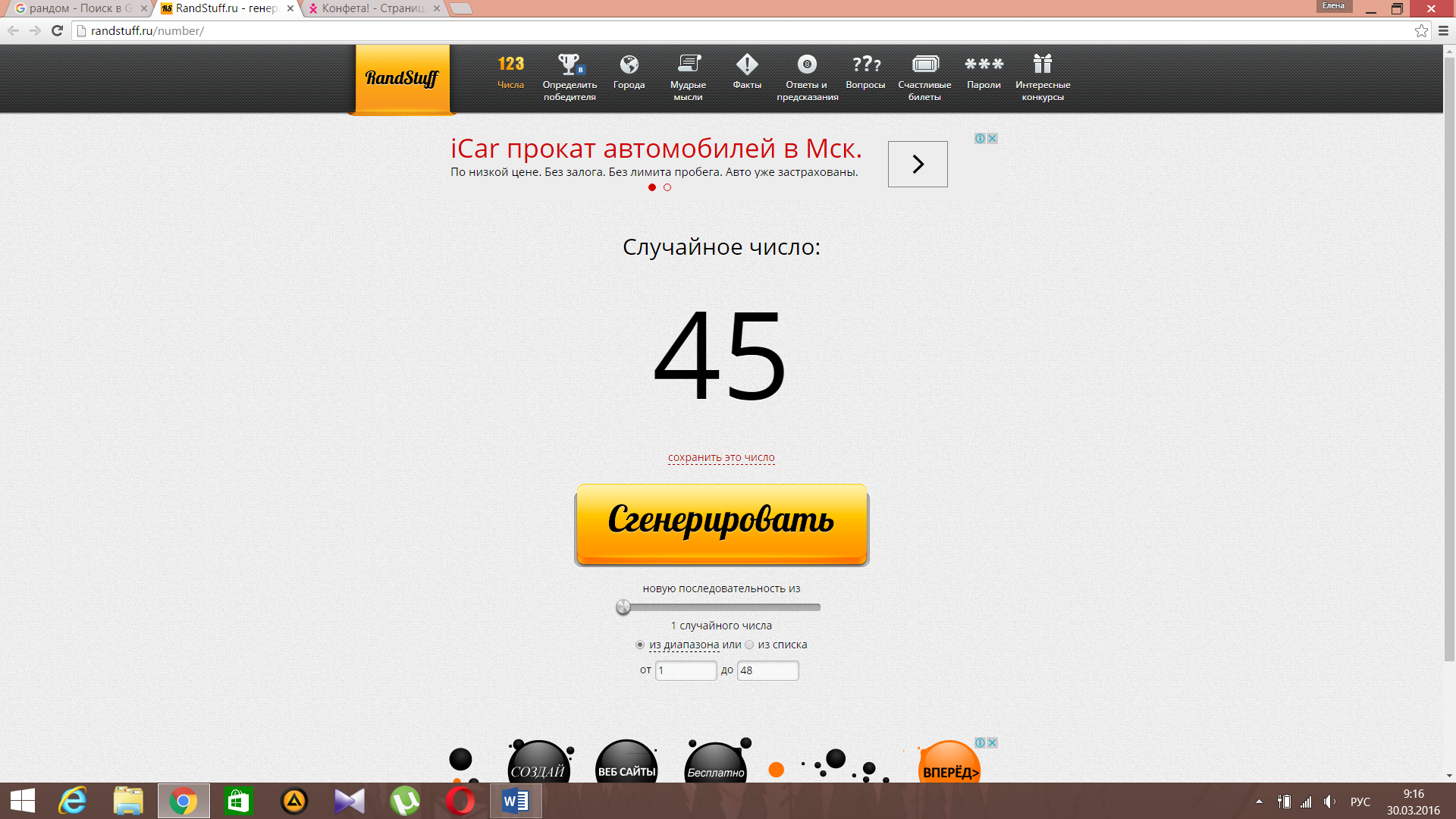 30 марта 2016 В 27.03.2016 at 08:49, aleksaA сказал: Вы подумали все?? Нееет... Я же не могу так.. Еще одна новая новогодне-вкусная Конфетка от Овна: Условия те же.. Конфета от Овна. Участников было многоооо 1 OLGA R 2 ГАЛИНА_С 3 Jukka_Lu 4 Niyole 5 Marismi77 6 Krume 7 Egelia 8 Maricha 9 ivk_ 10 tessykat 11 Платиновый Еж 12 Lanusyk 13 Дафна 14 belka-n82 15 Zlatodara 16 Alina1989 17 Nadinka-Blondinka 18 Apanjul 19 Лена1973 20 Mariyka_s 21 Маргоша 22 Marvlase 23 Nogres 24 Цветик-семицветик 25 оленек74 26 natella222 27 kolpluna 28 annu6ka 29 lenning 30 Nataly-st 31 Vodonika 32 Гало4ка 33 Shetka 34 BlueeYeS 35 olkot79 36 МАМАМИШИ 37 Bellatrix 38 B.unny 39 Verochka2307 40 Linden 41 Antarktida 42 Дикая белочка 43 Solovey- 44 Ponochka 45 МарСанна 46 Rumba 47 Niksi 48 Molly21 И выигрывает номер... 45 МарСанна, поздравляю и жду адрес! apanjul, Veta, Anicha и 43 других сказали спасибо Поделиться сообщением Ссылка на сообщение