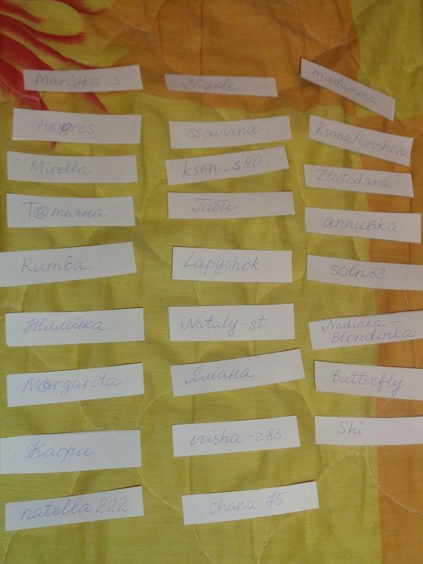 31 марта 2016 В 30.03.2016 at 19:14, Габи сказал: Девочки, так как спасибок уже очень много, а точнее , 80, розыгрыш проведу сегодня. Две участницы, Cheeky и Sunbeam, не подходят под условия. Остаётся 78 человек. Скрытый текст 1.АнФрол 2.Turu 3.Иннусик 4.Ирочка1904 5.татьяна0674 6.Lelja 7.tessykat 8.Сметанка 9.bukina88 10.Зимний эльф 11.Whiskers 12.VitaVivien 13.elena_kostar 14.Nyurka-86 15.Даруля 16.PrimaN 17.Ан4оус 18.Анютка-незабудка 19.OlkaY 20.Anabriel 21.musya 22.call_me_daria 23.Tora_s 24.Лена1973 25.Zheneva 26.Дафна 27.vikkovesh 28.юлия07 29.ivk_ 30.rramil 31.Nata_Struchkowa 32.Alina1989 33.Pirani@ 34.marvlase 35.Сибирская Кошка 36.Galina* 37.Verochka2307 38.Rina 39.Griffiti 40.Ленара 41.Звезда в шоке 42.Mariyka_s 43.monstrochka 44.Ямана 45.ГАЛИНА_С 46.IDEN 47.Маргоша 48.letka 49.Jukka_Lu 50.Птица 51.Yulika 52.Ponochka 53.Tris 54.ssavvina 55.Gala83 56.irisheckin 57.Nadinka-Blondinka 58.Molly21 59.Bellatrix 60.Rumba 61.Маняша 62.chana75 63.оленек74 64.natella222 65.Valvariella 66.Т@тьяна 67.madamma 68.Egelia 69.Каори 70.linden 71.Dominoluiza 72.Mirella 73.МАМАМИШИ 74.Krelina 75.B.unny 76.Shetka 77.Shi 78.Lapyshok Пошла разыгрывать. татьяна0674, Бондаренко, Pirani@ и 13 других сказали спасибо Поделиться сообщением Ссылка на сообщение