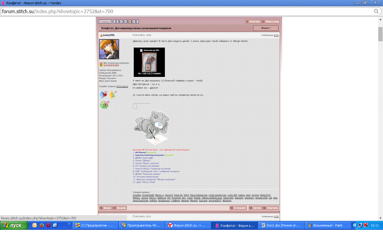 3 июня 2015 вторая конфета, вот такой наборчик в алмазной технике розыгрыш будет 9 июня и тут спасибо сказать не получается(( Поделиться сообщением Ссылка на сообщение