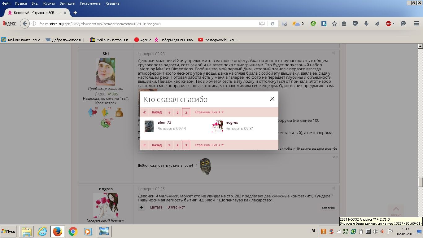 1 апреля 2016 tessykat, Кажется,из вышивальщицы я переквалифицируюсь в читальщицу)) эх где мои 17 лет и работа сутками, когда я книги читала запоем)) ssavvina, МАМАМИШИ, tessykat и 4 других сказали спасибо Поделиться сообщением Ссылка на сообщение