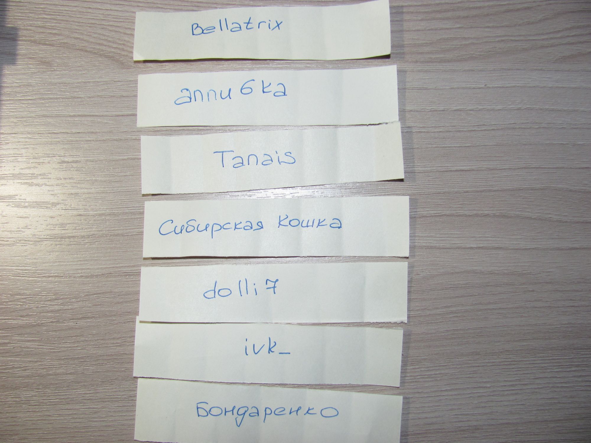 2 апреля 2016 Итак, конфета №1 - "турецкая гвоздика" от Риолис Кто сказал спасибо 1 titania 2 Дафна 3 Zlatodara 4 Лена1973 5 Габи 6 natella222 7 Cvett 8 Цветик-семицветик 9 ole4k@ 10 olkot79 11 Bellatrix 12 Маняша 13 Ленара Генератор случайных чисел выбрал номер Светлана, поздравляю и жду адрес в личку! Конфета №2 - книги Николая Козлова Татьяна, поздравляю! Надеюсь Вашему сыну книги понравятся! Жду Вас в личке. Конфета №3 - Книги "Техника рукоделия" Алёна, поздравляю! Жду в личке! Конфета №4 - книга "Веселый зоопарк" Люба, поздравляю! Жду в личке! Фуф! Вроде всё. Если что не так, то прошу пардону - это мой первый розыгрыш. п.с. А мне понравилооооось... Tanais, ЛАДОМИРА, ssavvina и 26 других сказали спасибо Поделиться сообщением Ссылка на сообщение