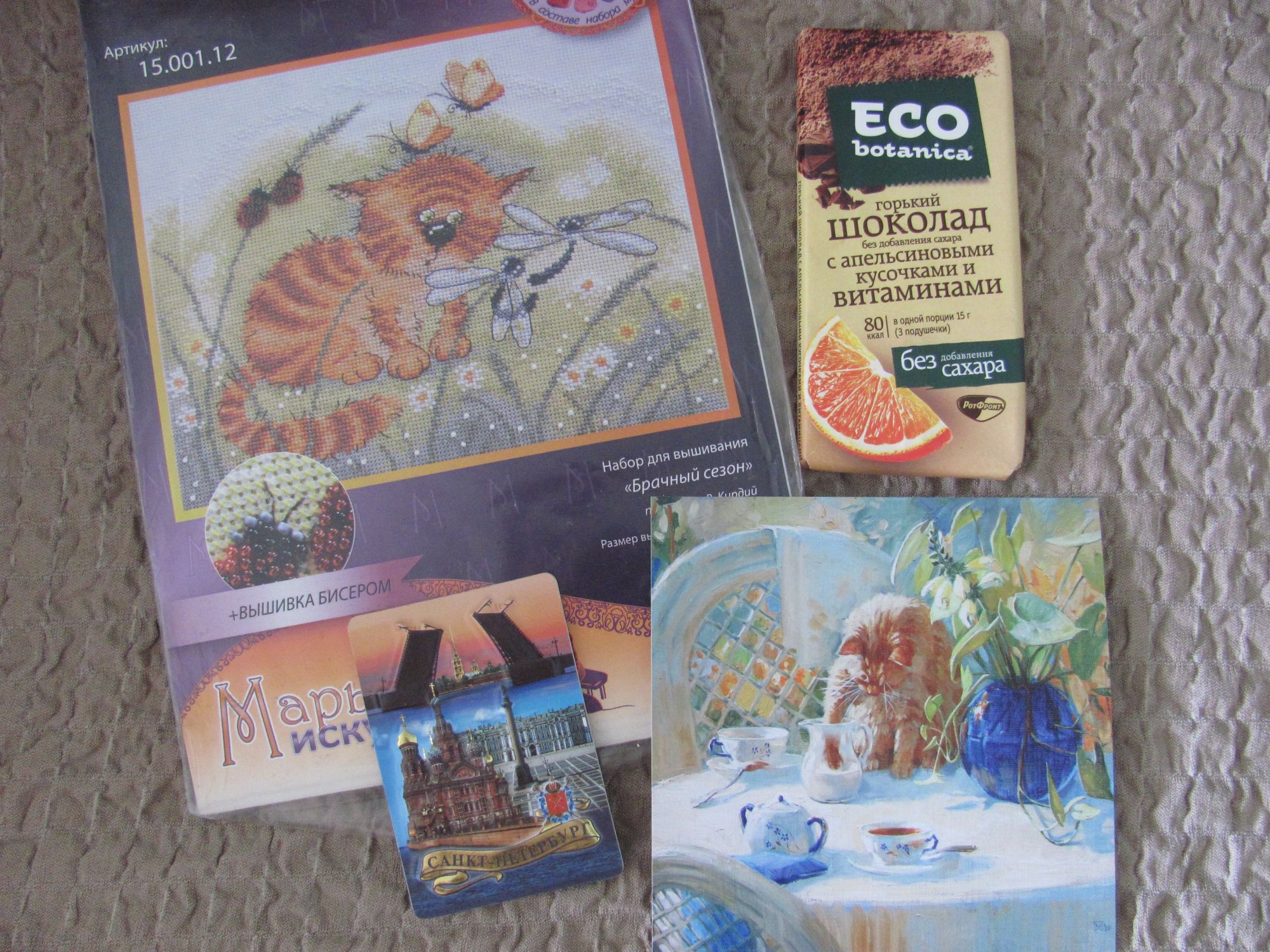 4 апреля 2016 Ааааа! Я с отчетом о полученной конфетке с кодовым названием "до чего ж на нашего Бунша Вениамина похож!" Прилетела она из Питера от Надежды chana75 Чудесный набор с котиком, шоколад, красивущщий магнит и невероятная открытка с рыжим (!) котом. Надя, как в воду глядела - рыжиков-то у меня два! И третья девчонка-трехцветка. Наденька, спасибо огромное! Только сегодня с утра маялась мыслями на тему: какой бы набор начать следующим, а то рама скоро освобождается и простаивать будет Радость от полученного подарка умножаем на 8, ибо это первая выигранная и полученная мной конфета irisheckin, ssavvina, kreolka и 51 других сказали спасибо Поделиться сообщением Ссылка на сообщение