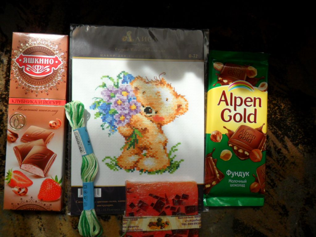 12 апреля 2016 Сегодня получила тортик от Оленьки bukina88!Помимо милейшего набора Оленька одарила меня двумя вкусняшками,невероятно душистым мылом и симпатичным меланжиком!!!!!!!!!!!!! Оля,спасибо огромное!!!!!!!!!!!!!!!!!!!!!!!!!!!!!!! Tris, marysolga, Anicha и 32 других сказали спасибо Поделиться сообщением Ссылка на сообщение