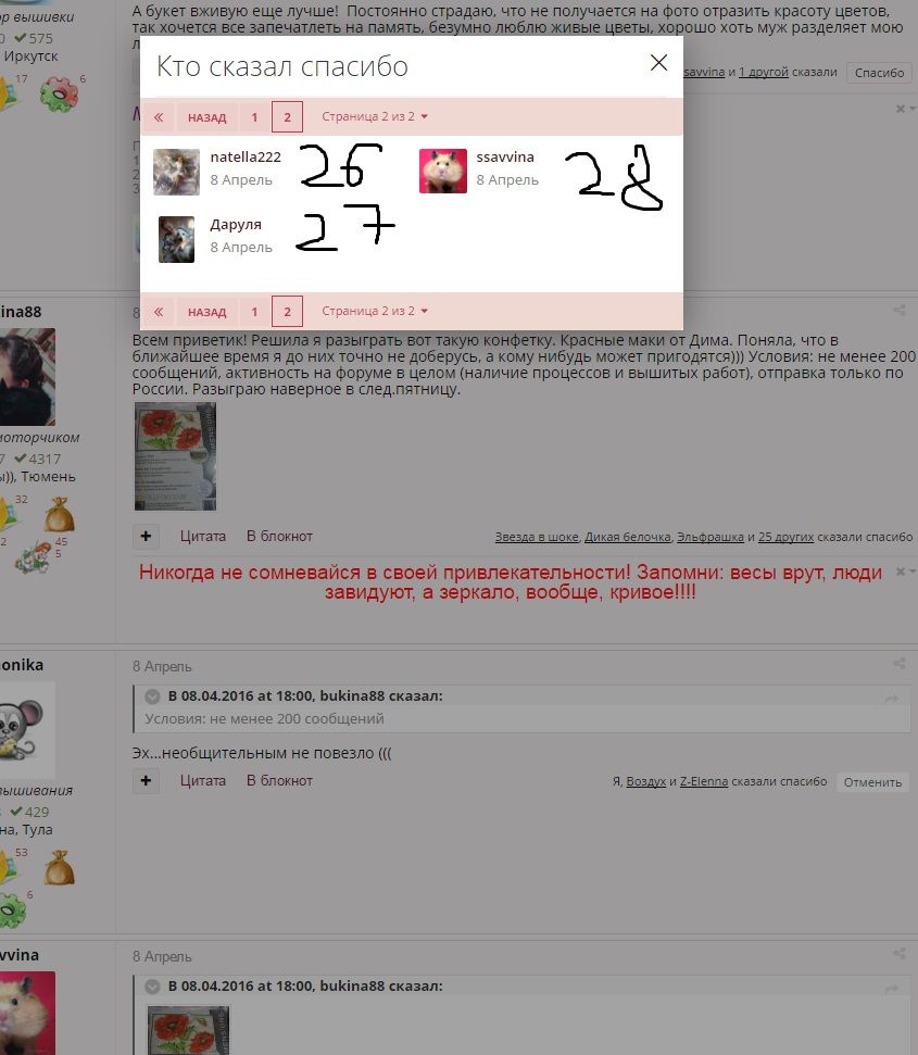 15 апреля 2016 Итак спасибки: и выбирать из этих Милах предстоит dolli7 Елена Прекрасная!!! Мои поздравления!!! Жду координаты!!! И название схемки ))) Egelia, bcmonika, Ан4оус и 31 других сказали спасибо Поделиться сообщением Ссылка на сообщение