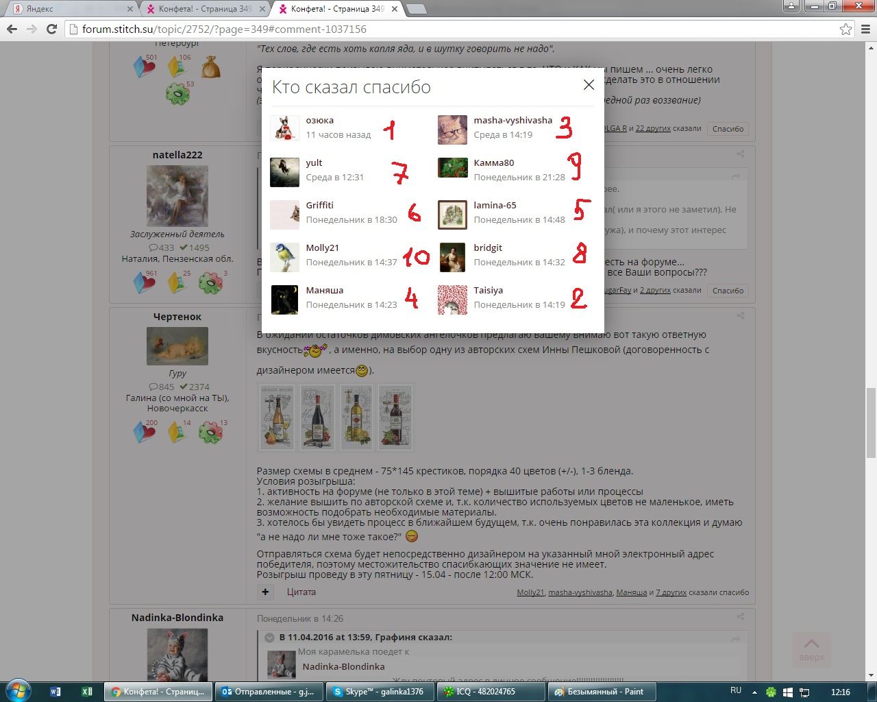 15 апреля 2016 1 минуту назад, МАМАМИШИ сказал: Итак спасибки: и выбирать из этих Милах предстоит dolli7 Елена Прекрасная!!! Мои поздравления!!! Жду координаты!!! И название схемки ))) Поздравляю!!! Поделиться сообщением Ссылка на сообщение