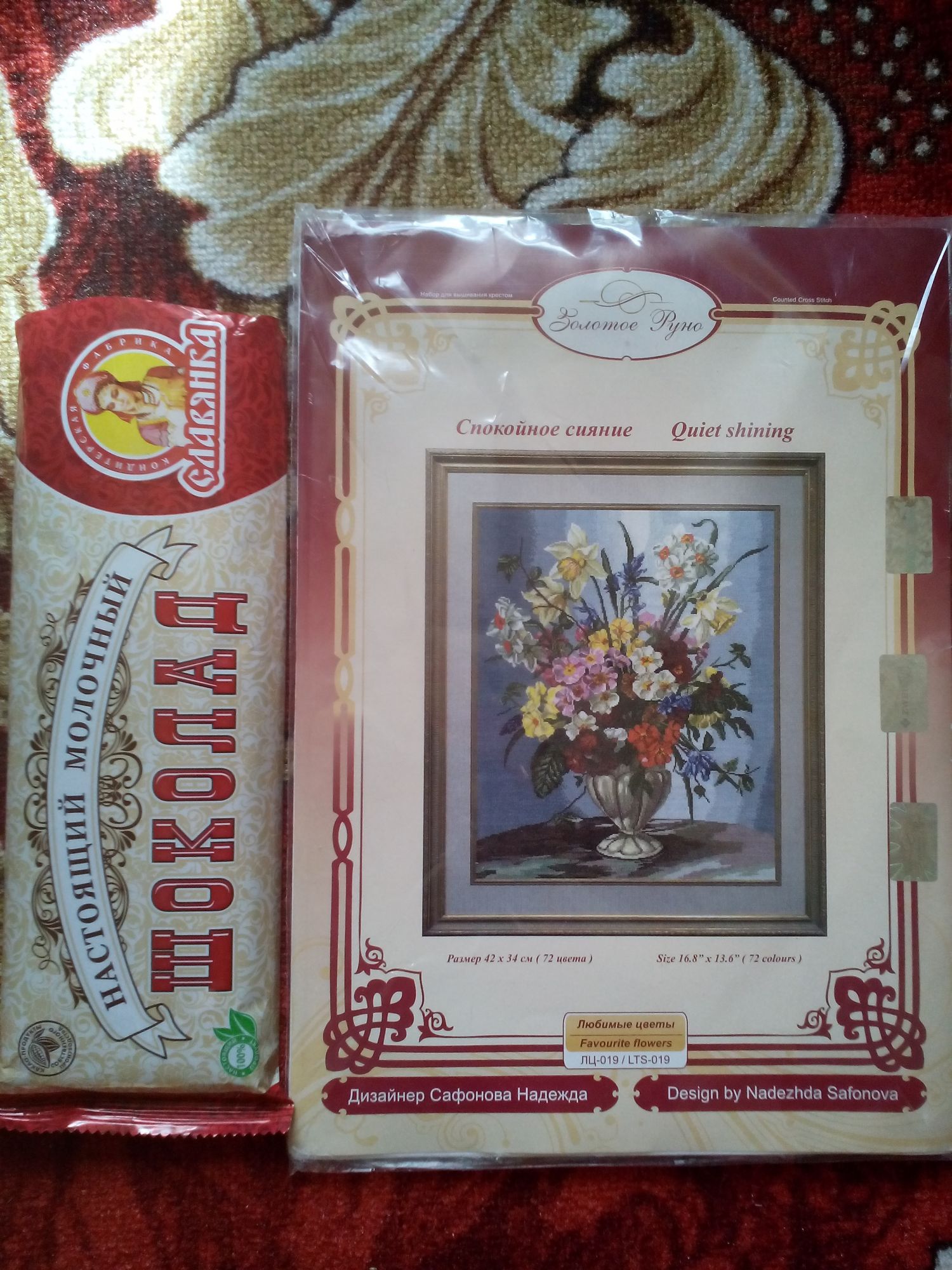 15 апреля 2016 Доброго дня, вчера получила от Ирины(Воздух) схему с образцами ниток. Надеюсь вышить после волков, в условиях было не задерживать в закромах. Еще большущая шоколадка, вкусная(на фото уже не целая ) kreolka, Ксен40, Z-Elenna и 36 других сказали спасибо Поделиться сообщением Ссылка на сообщение