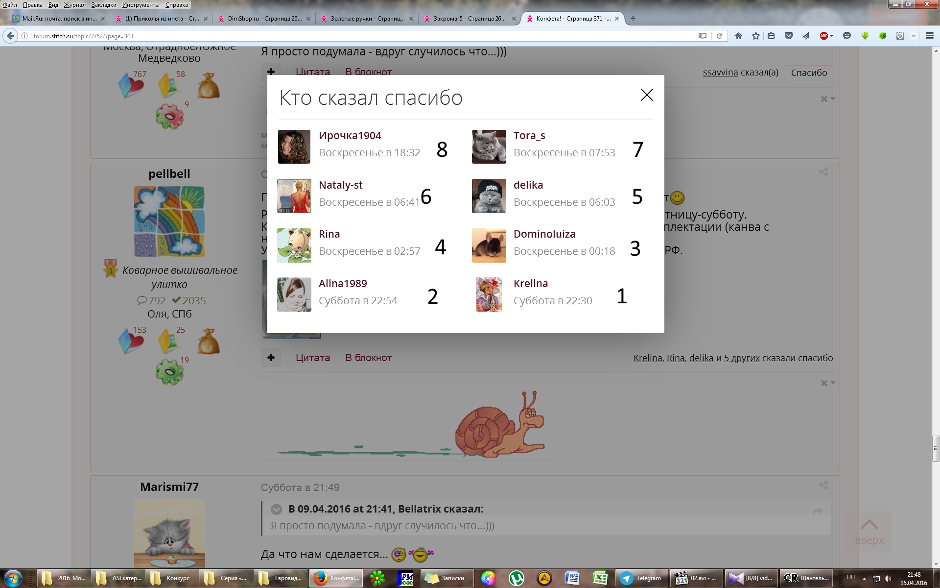 15 апреля 2016 Целый день не была на форуме, а тут столько выигрышей! Так рада за девочек,словами не передать! сама проиграла, но подхожу к этому философски- значит и не надо было) Но на тюльпаны Викины спасибкнула, что-то подсела на цветочки последнее время) Камма80, Taisiya, soln33 и 8 других сказали спасибо Поделиться сообщением Ссылка на сообщение