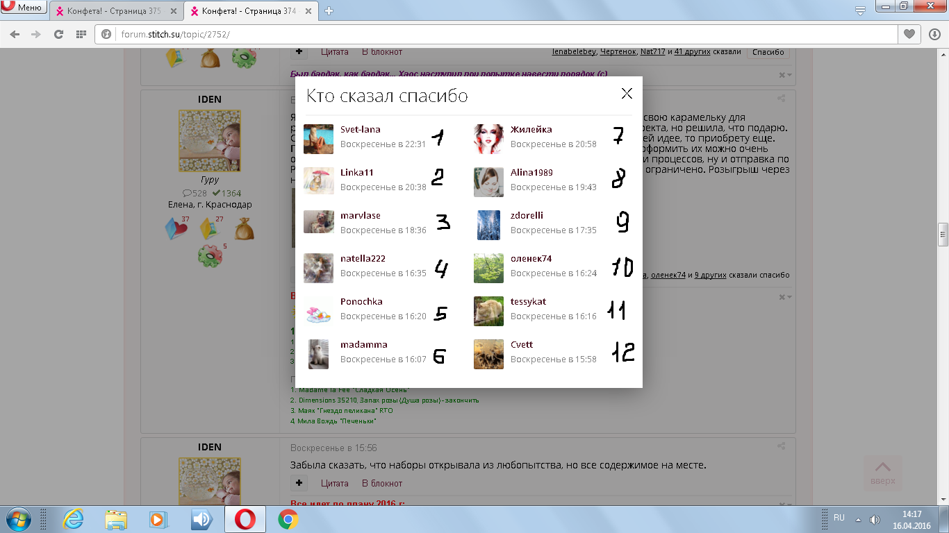 16 апреля 2016 Только что, Леший сказал: ... да вопрос собственно заключался только в том - зачем предлагать к розыгрышу конфетку , если выбор "выигравшего" не из списка спасибкнувшись. Но, как говорится хозяин-барин .... поэтому любое Ваше решение считаю правильным))))))) SugarFay, Хорошуля, Shetka и 3 других сказали спасибо Поделиться сообщением Ссылка на сообщение