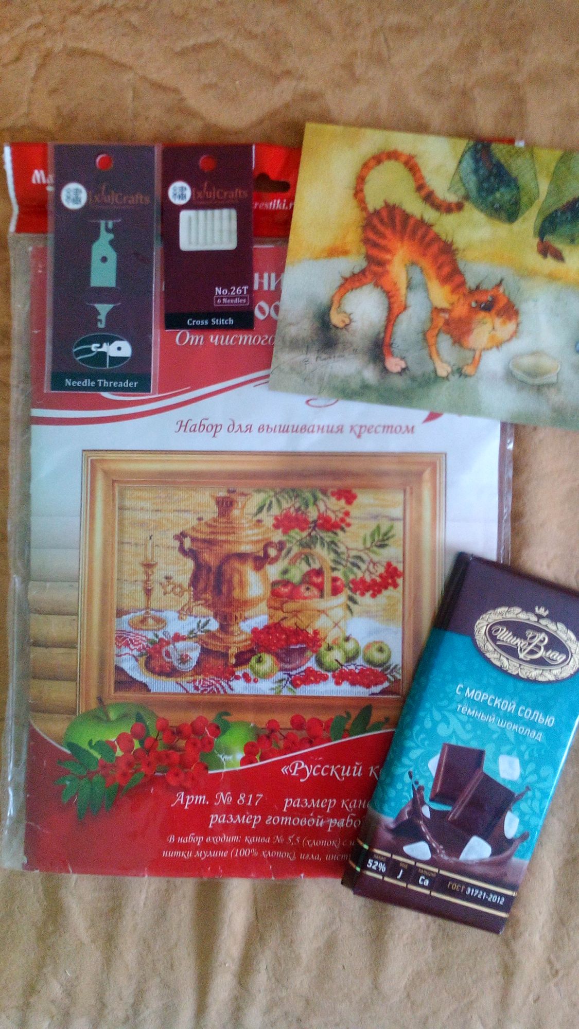 16 апреля 2016 Девочки, сегодня получила конфетку от Маняши - Марины из Хабаровска. Даже не ждала, что она так быстро до меня доберётся. Помимо набора, Марина мне ещё отправила иголочки, нитковдеватель, очень симпатичную открытку с пожеланиями и необычную шоколадку с морской солью (пока ещё не попробовала). Мариночка, большое спасибо! Stesha, dolli7, Маняша и 55 других сказали спасибо Поделиться сообщением Ссылка на сообщение